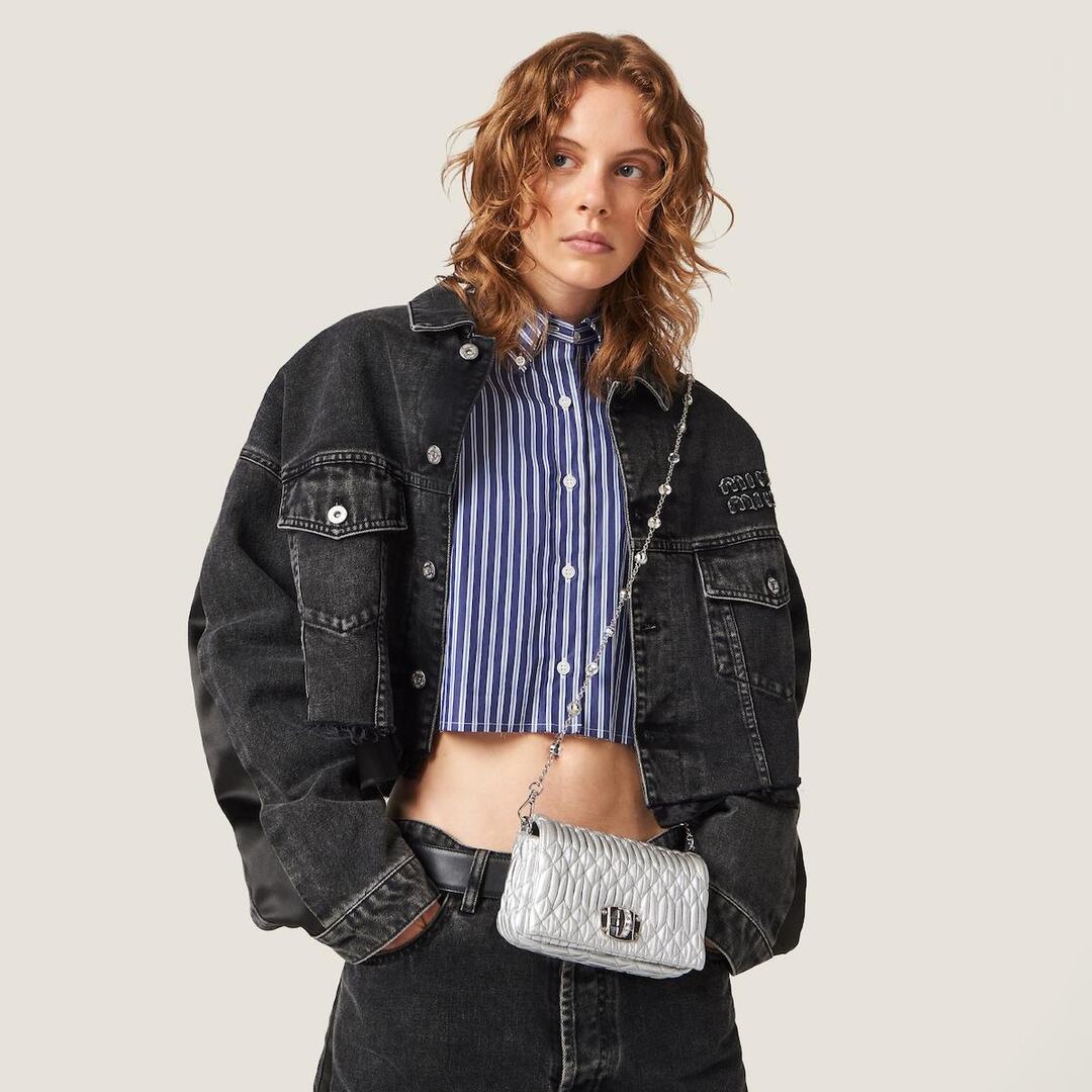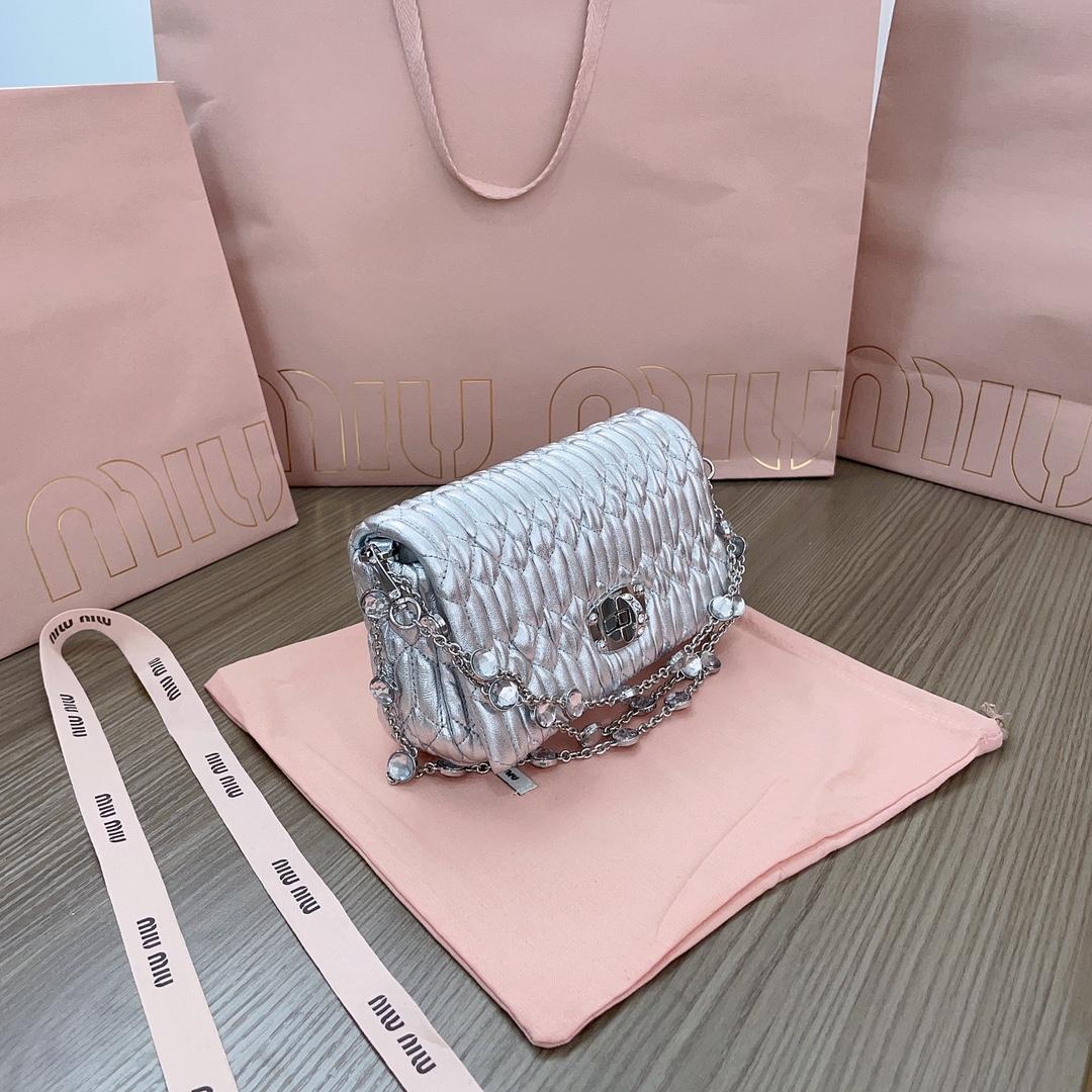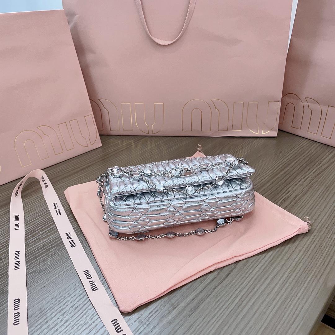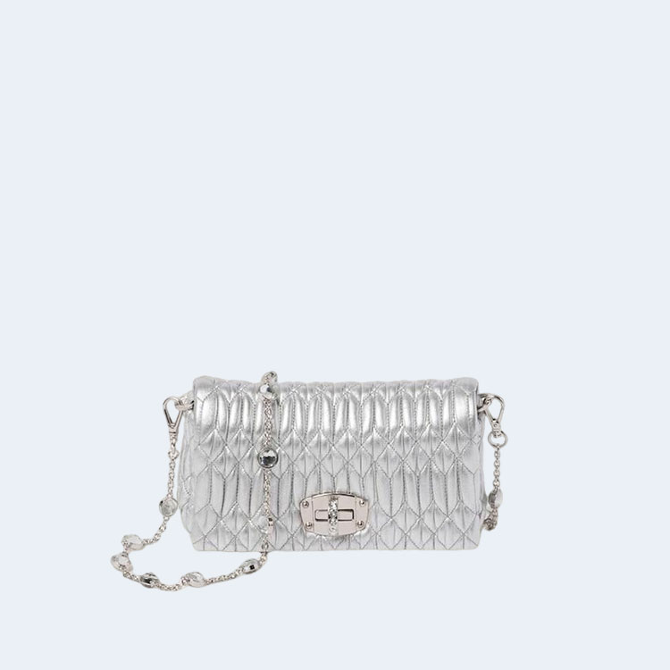 미우미우 마테라쎄 나파 가죽 크리스탈 미니백 실버