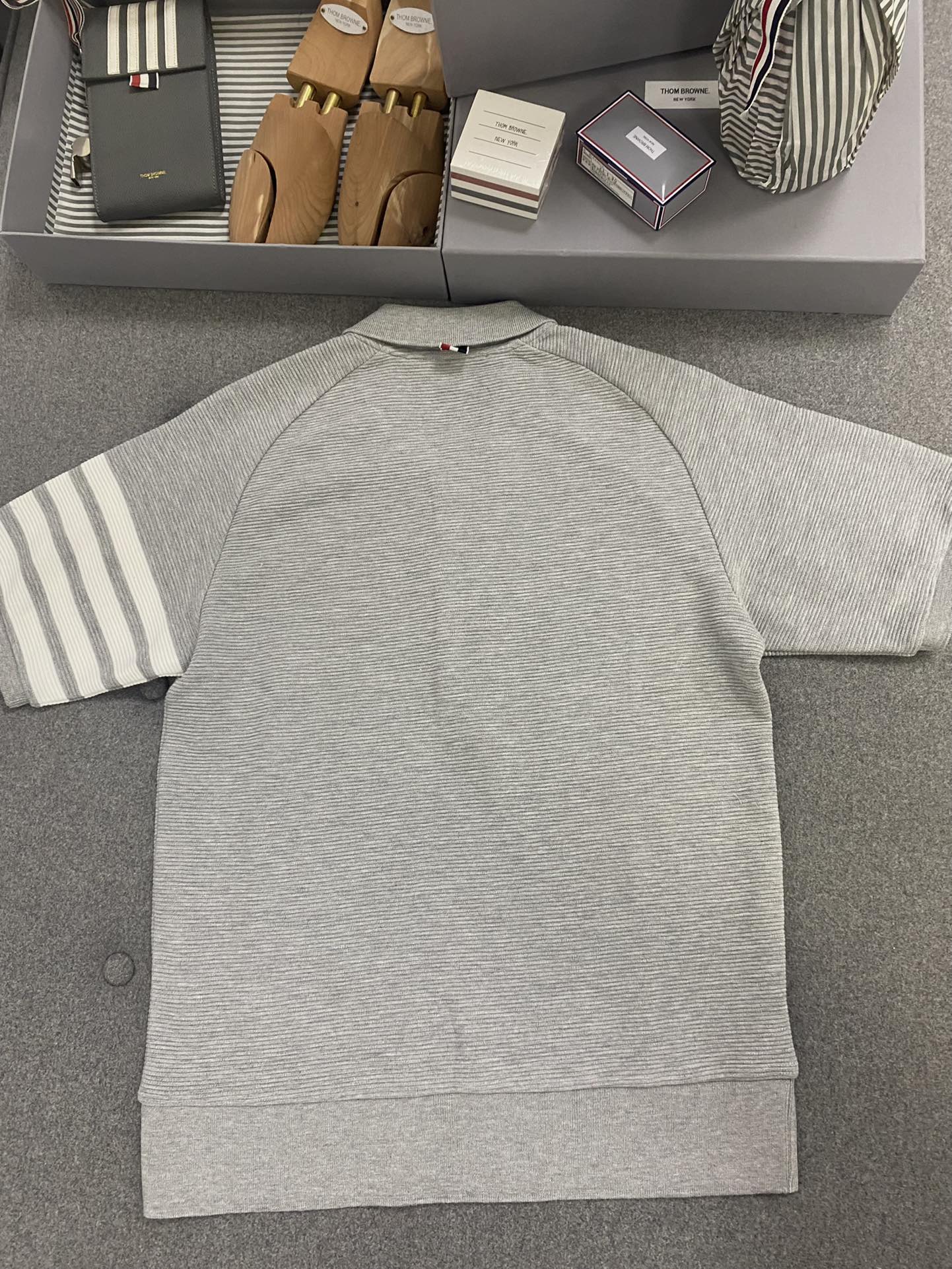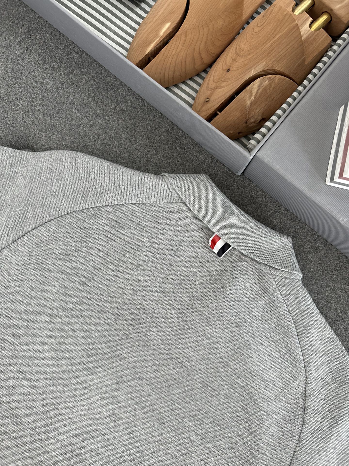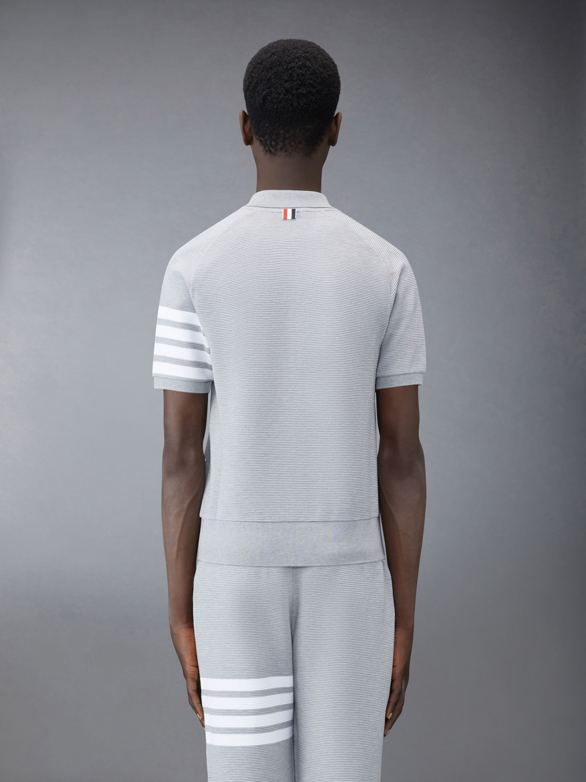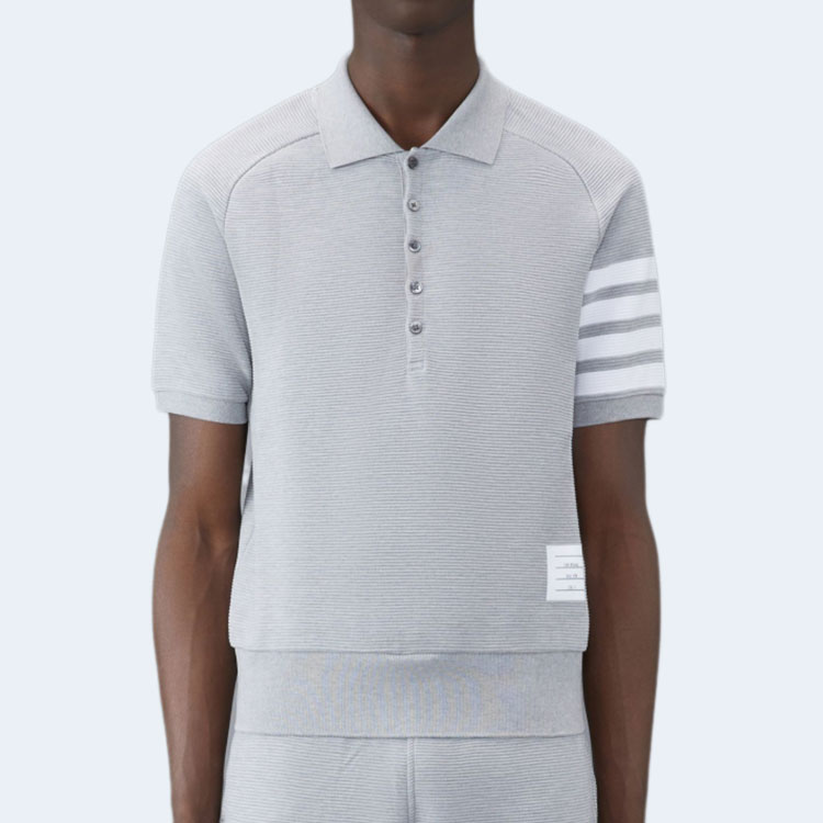 톰브라운 라이트 그레이 코튼 오토맨 립 4-바 폴로 셔츠
