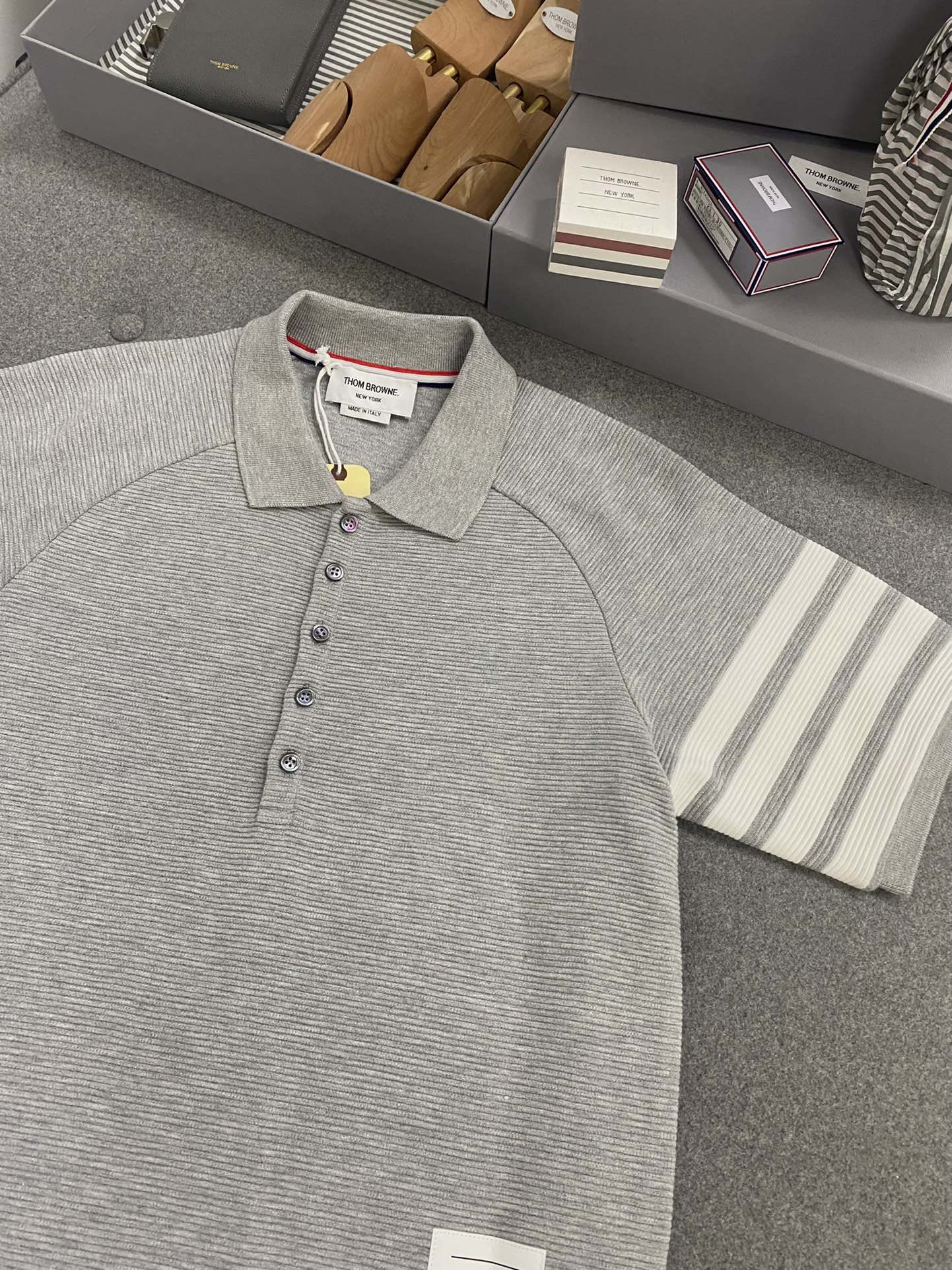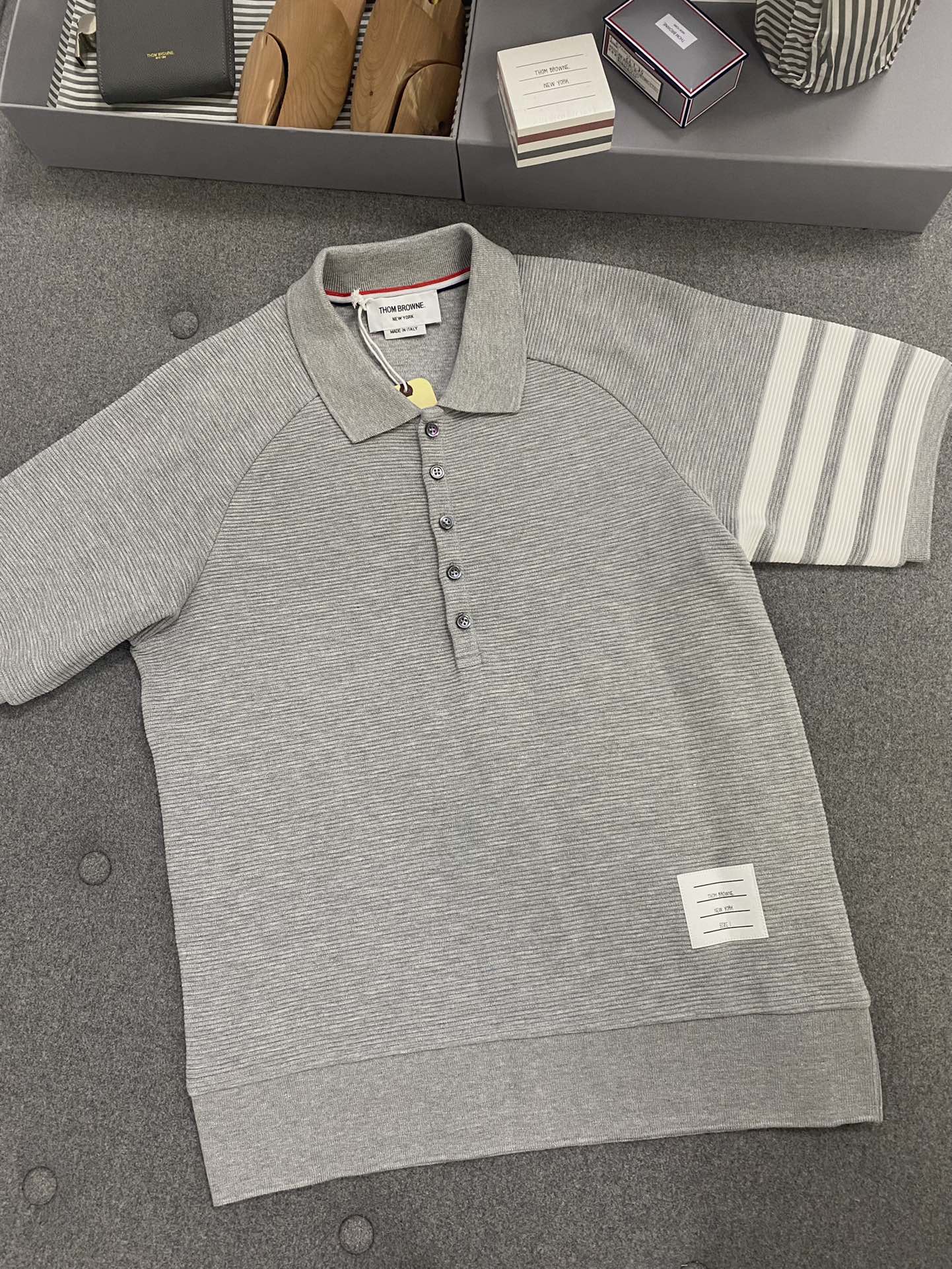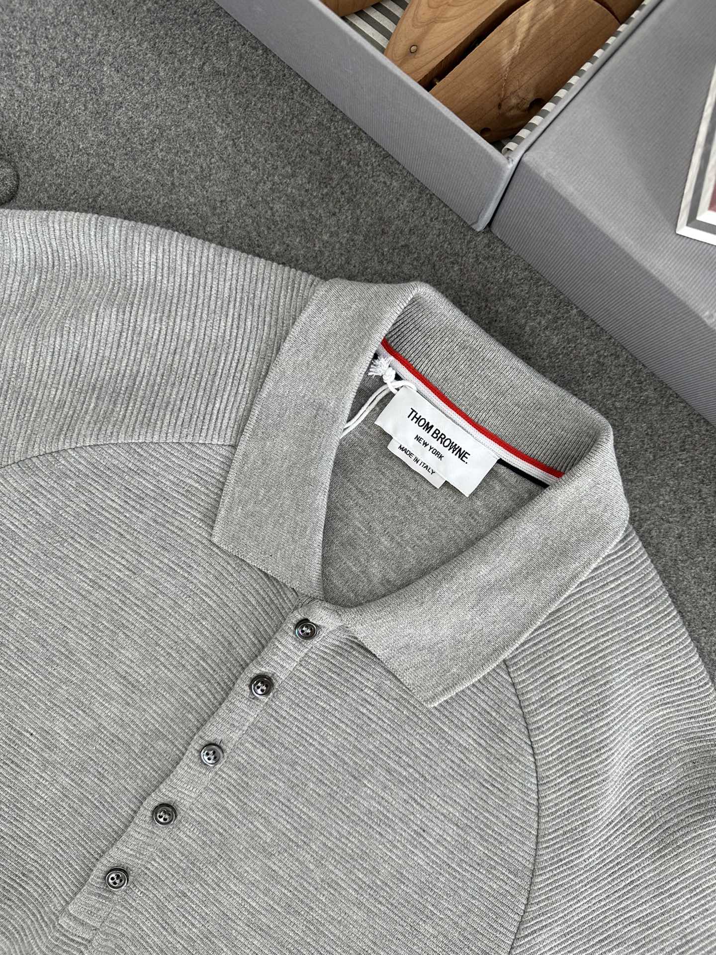 톰브라운 라이트 그레이 코튼 오토맨 립 4-바 폴로 셔츠