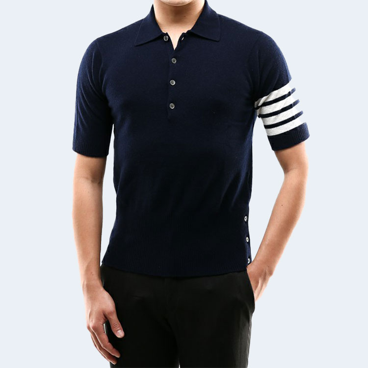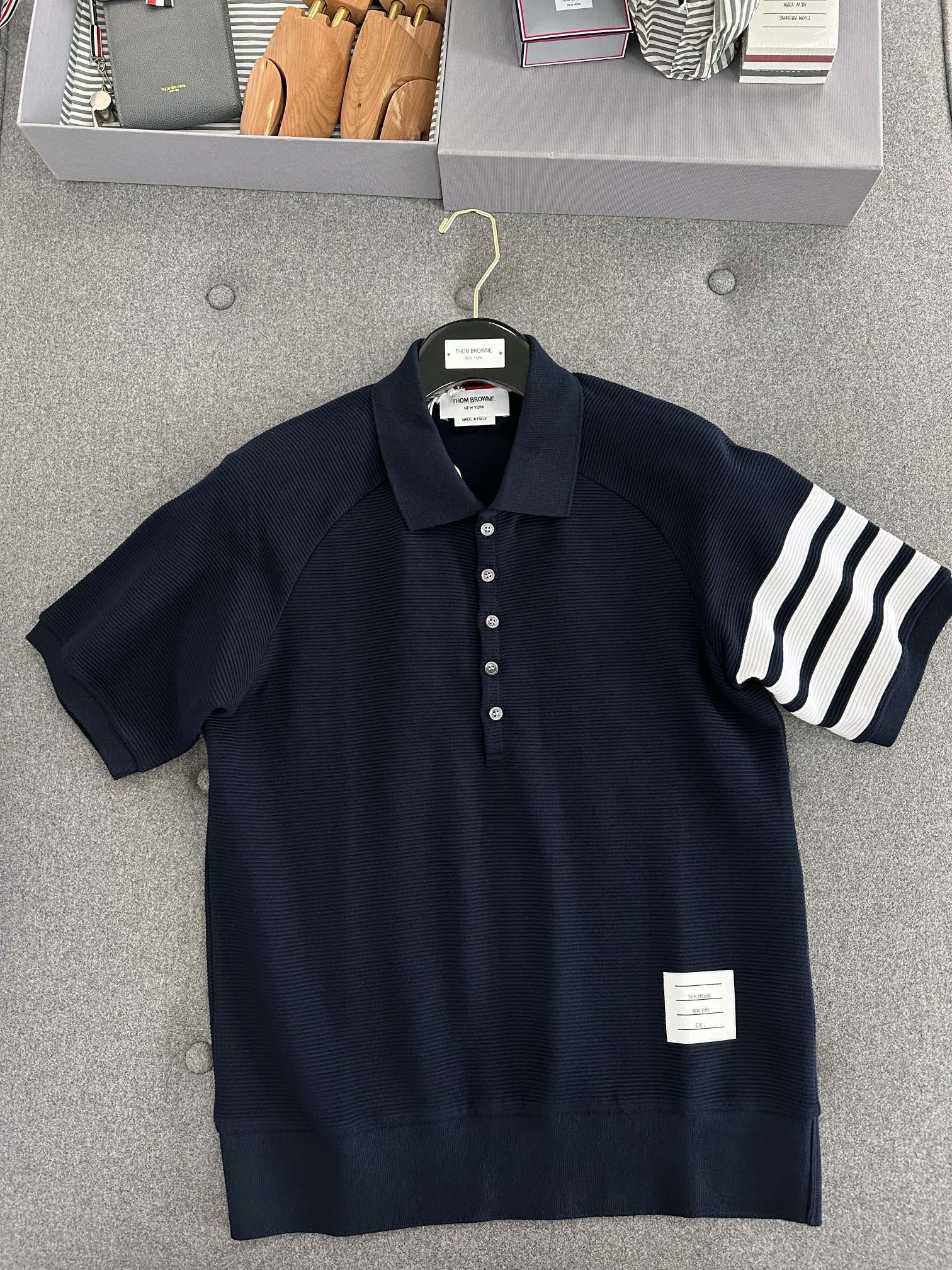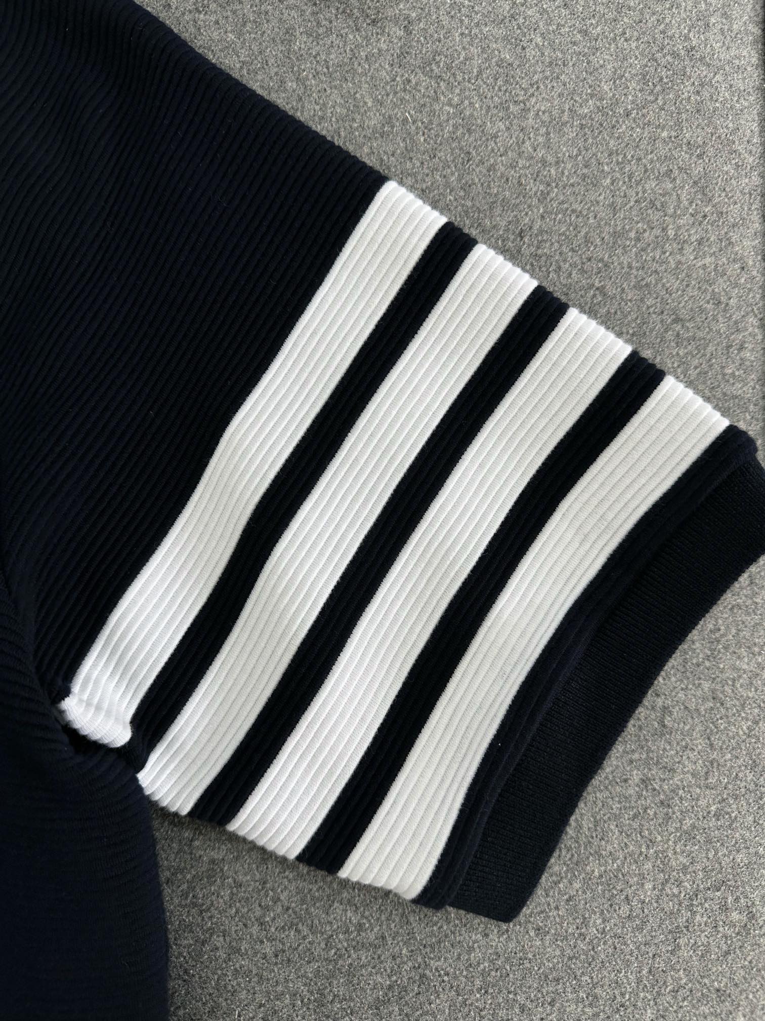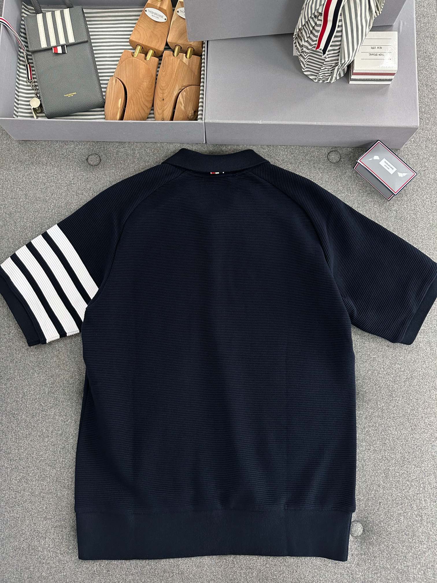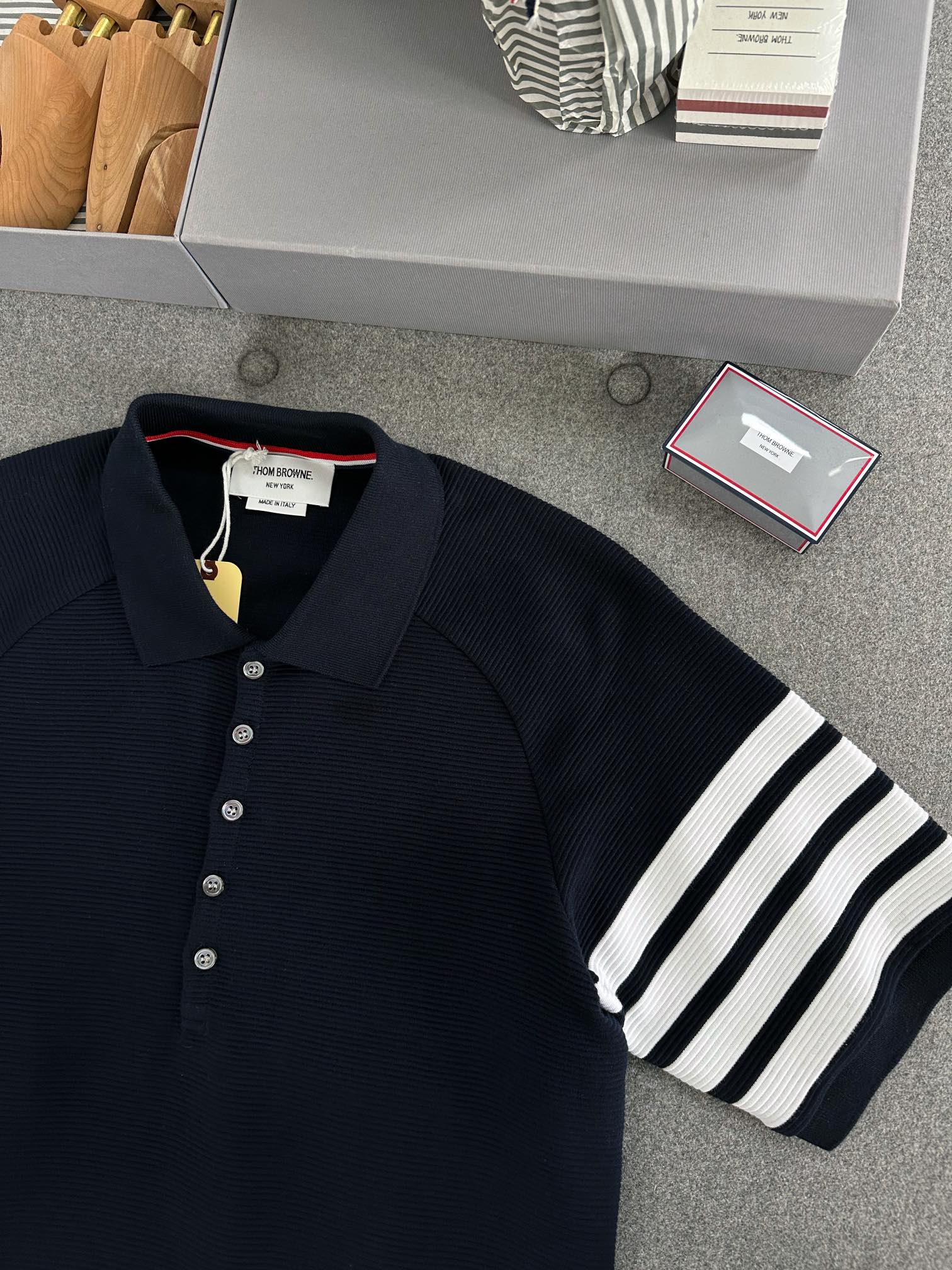 톰브라운 네이비 코튼 오토맨 립 4-바 폴로 셔츠