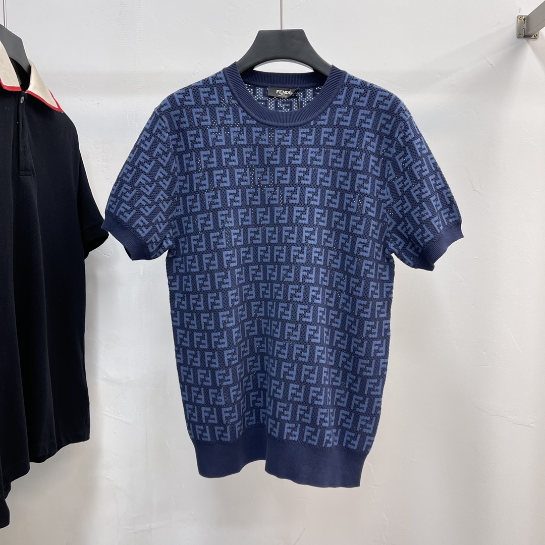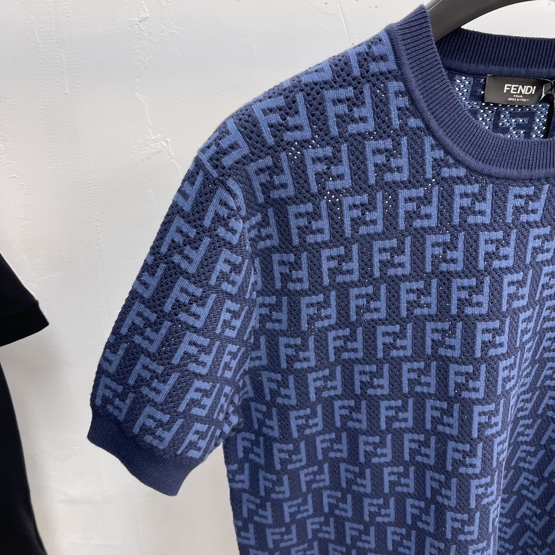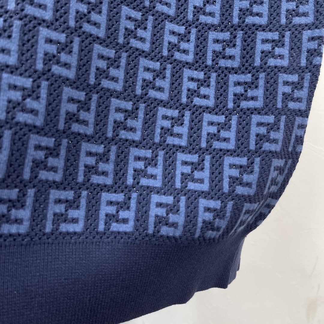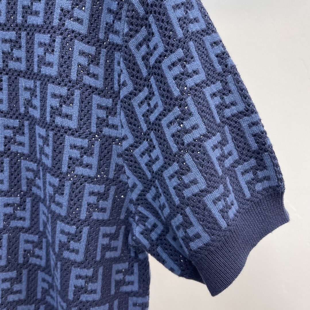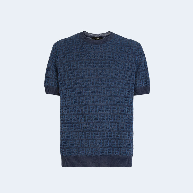 펜디 블루 FF 코튼 리넨 반팔 스웨터