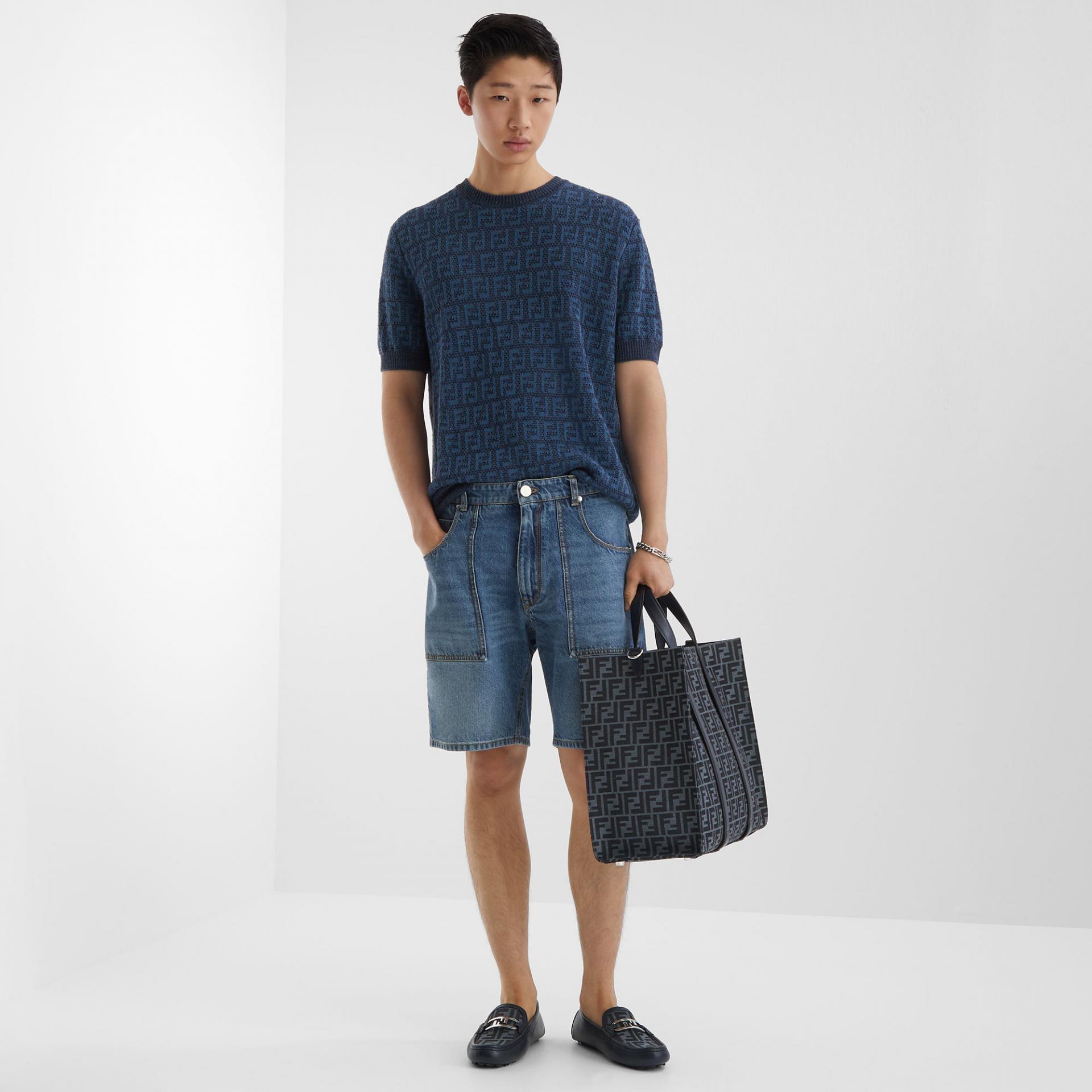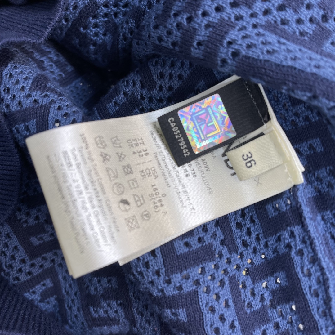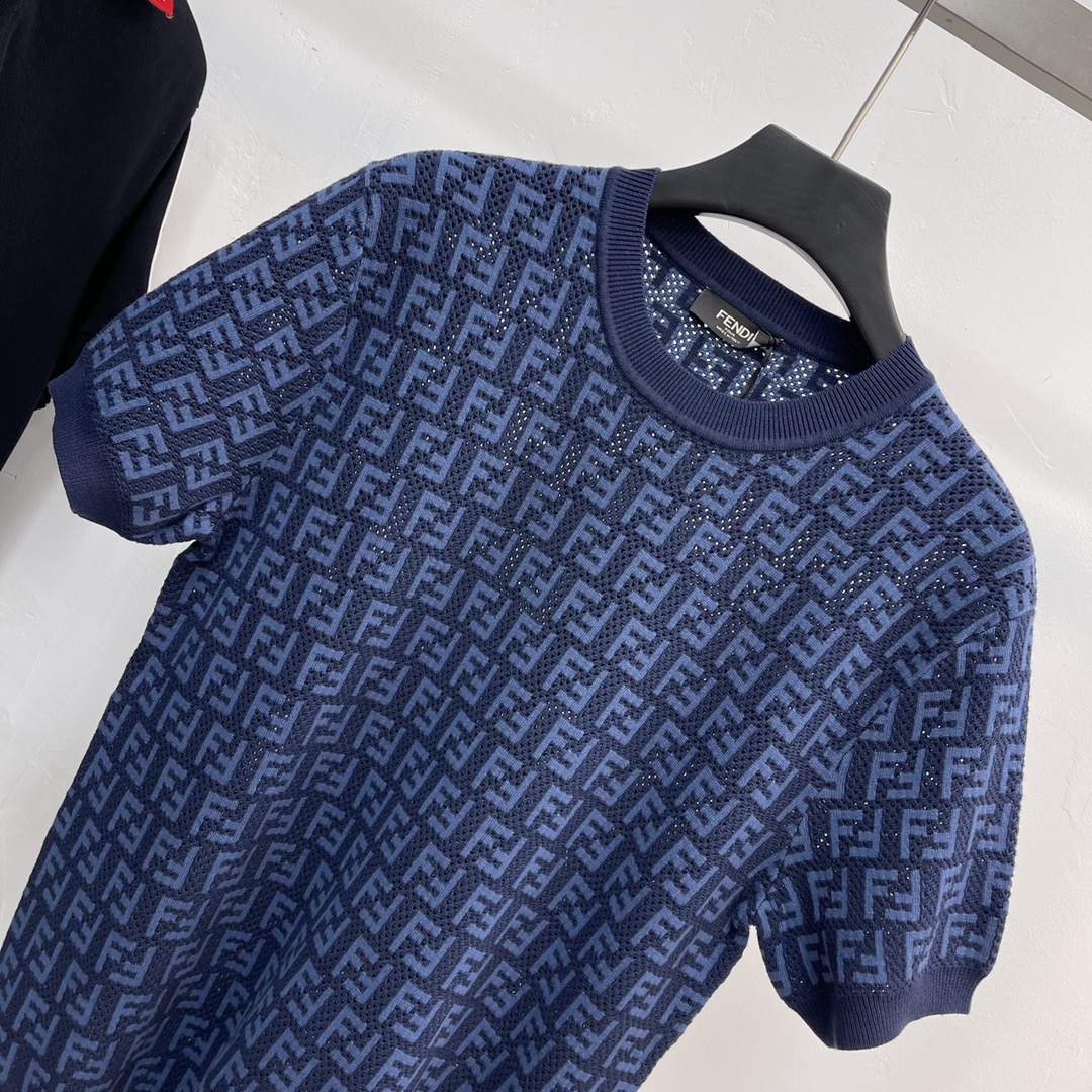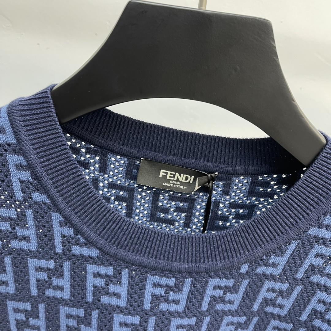 펜디 블루 FF 코튼 리넨 반팔 스웨터