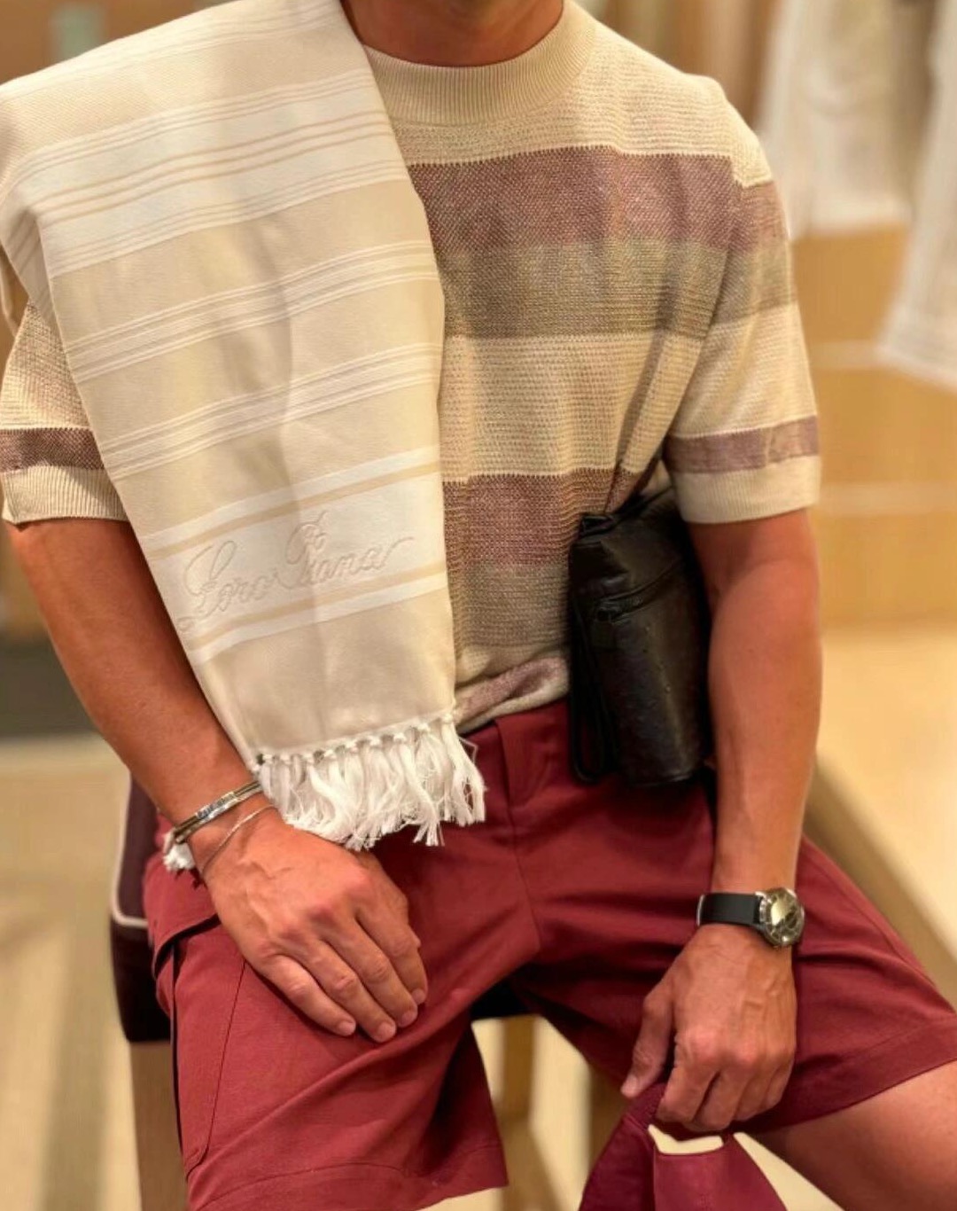 로로피아나 타케다 크루넥 슬림 니트 반팔