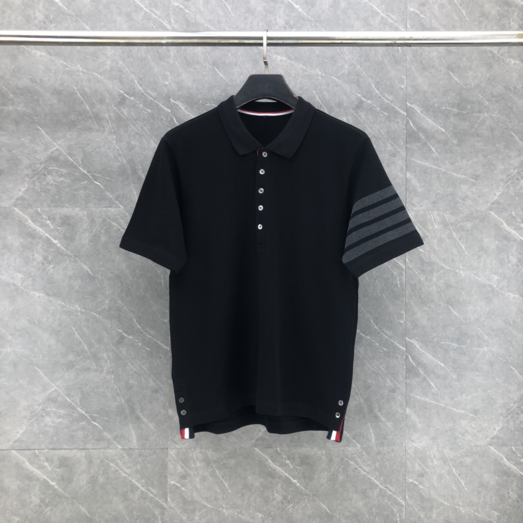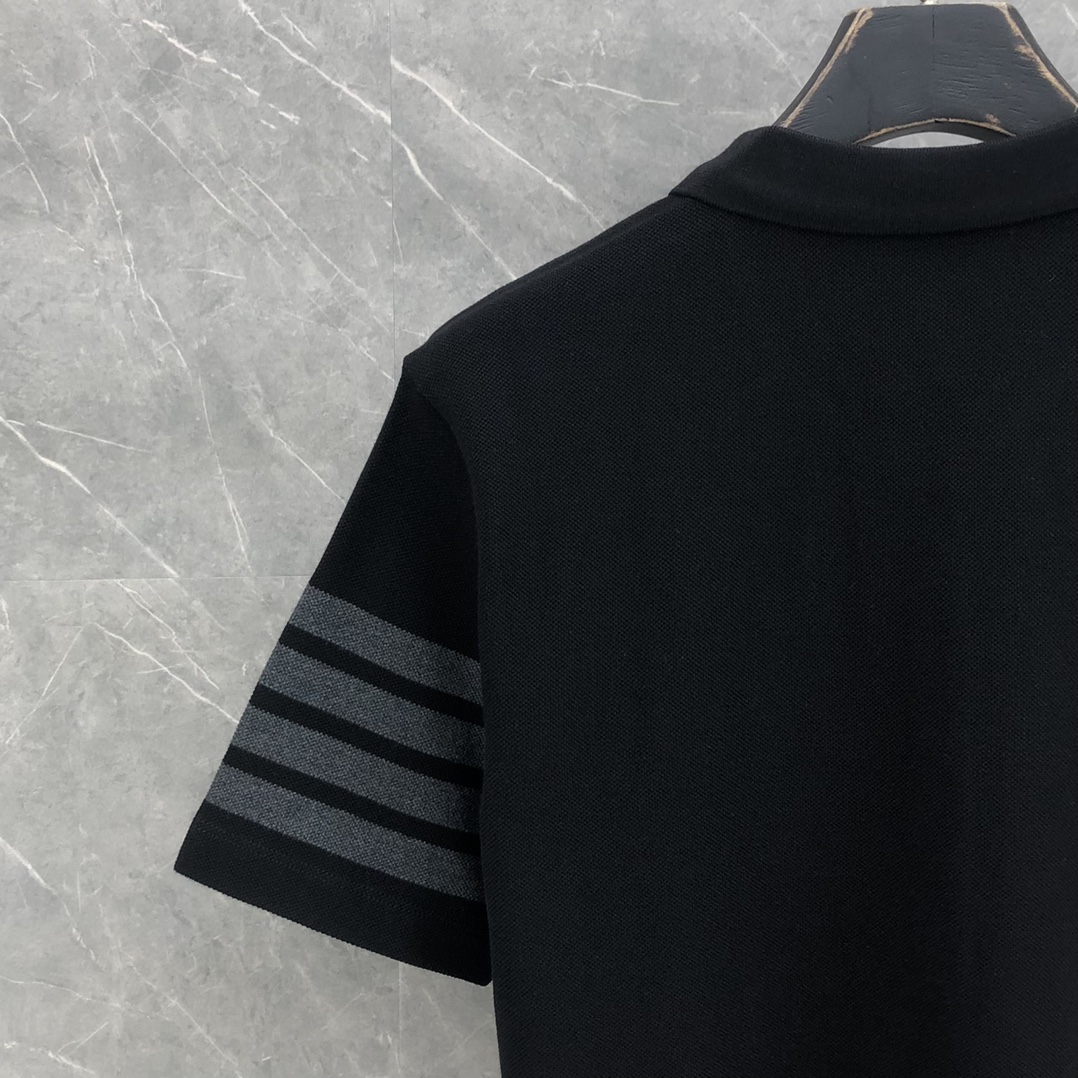 톰브라운 바이컬러 비대칭 헴 폴로 셔츠