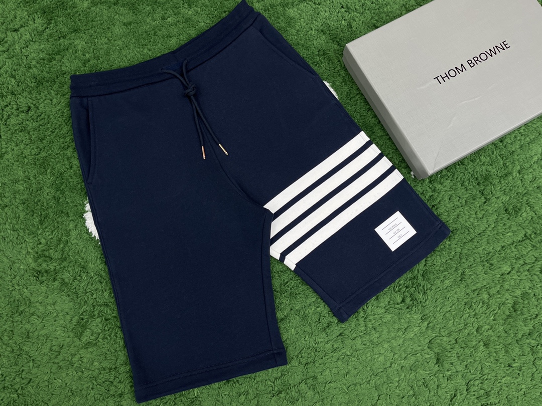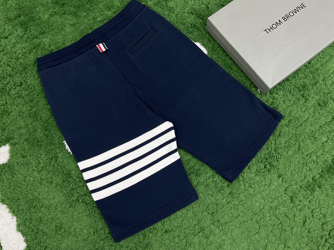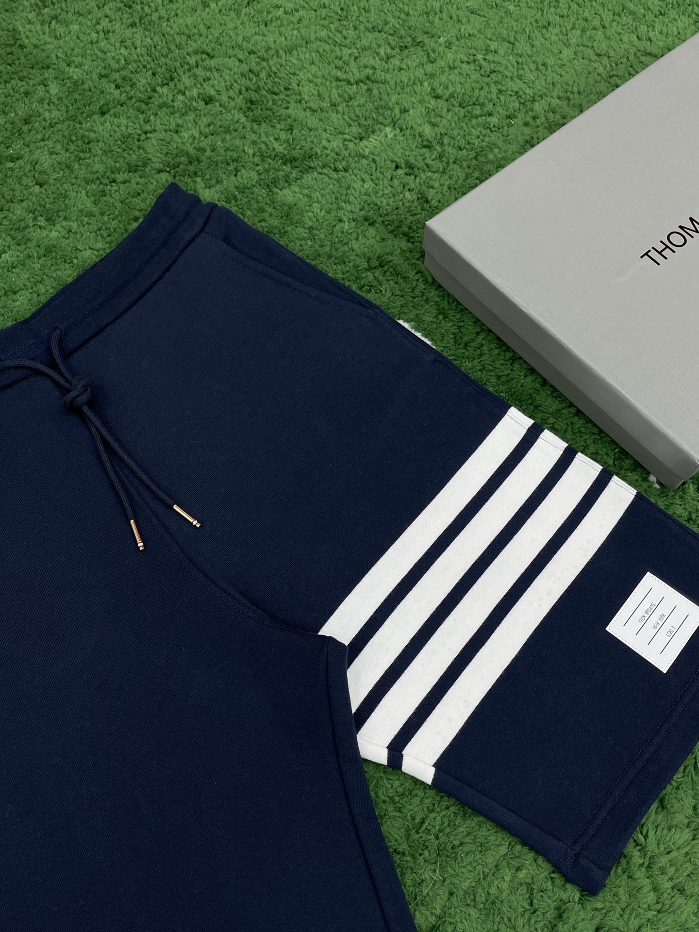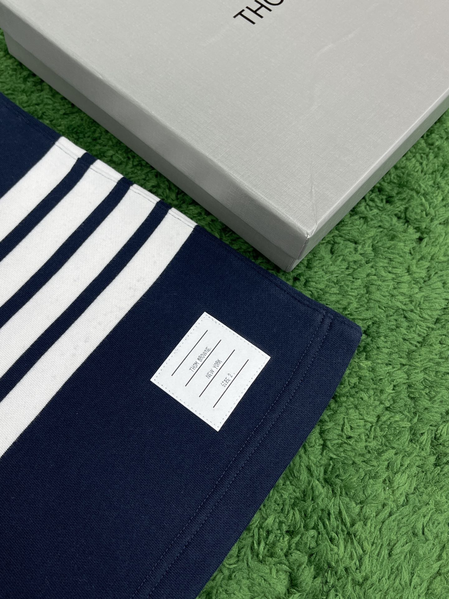 톰브라운 네이비 코튼 루프백 니트 엔지니어 4-바 스트라이프 쇼츠