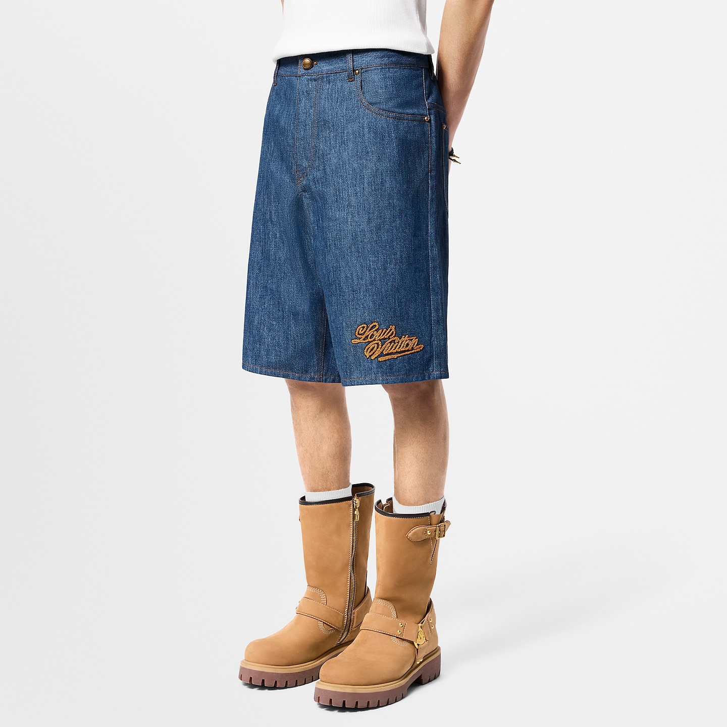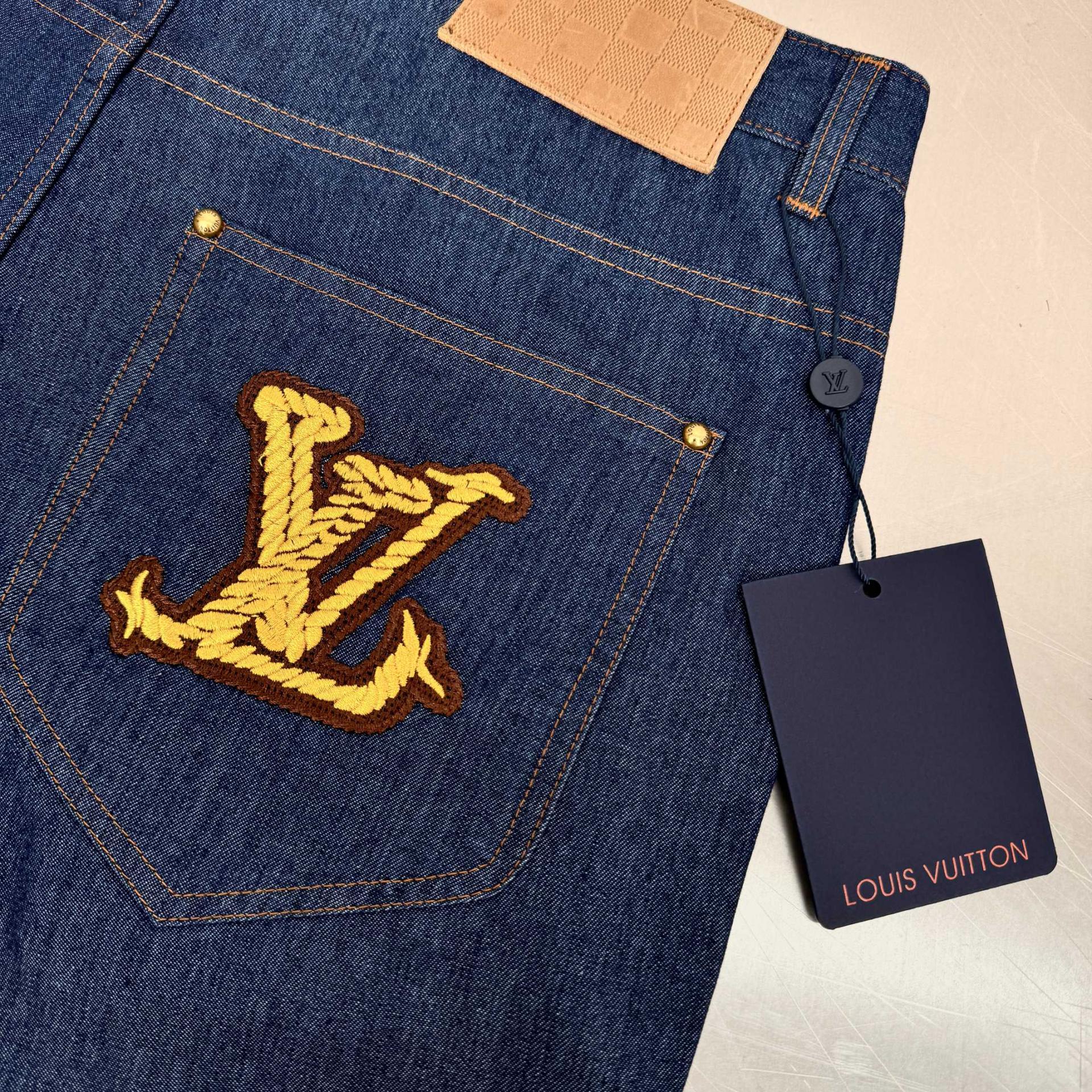 루이비통 스트라이프드 패치워크 데님 쇼츠 1AFQG3