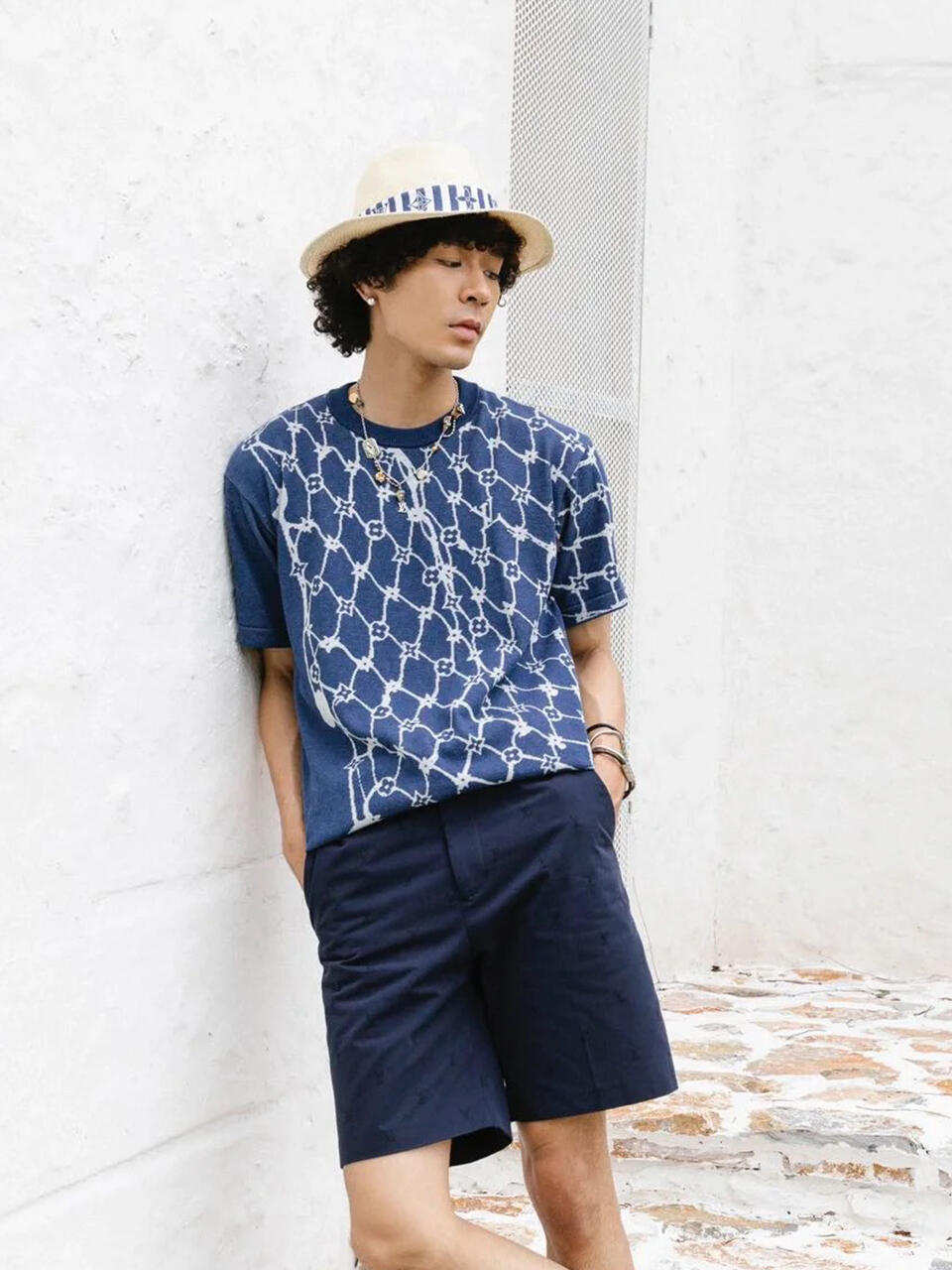 디올 오블리크 스카이블루 실크코튼 자카드 쇼츠
