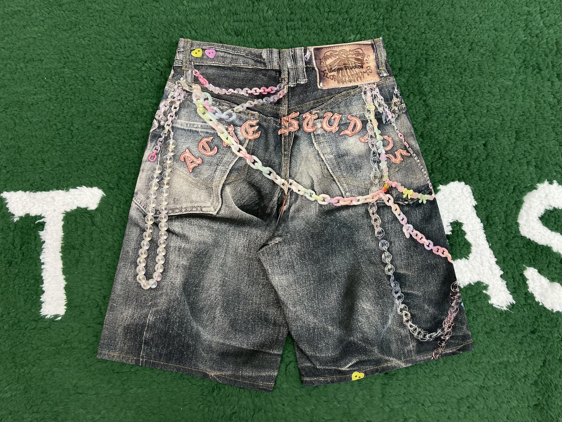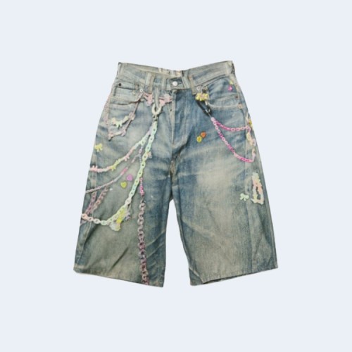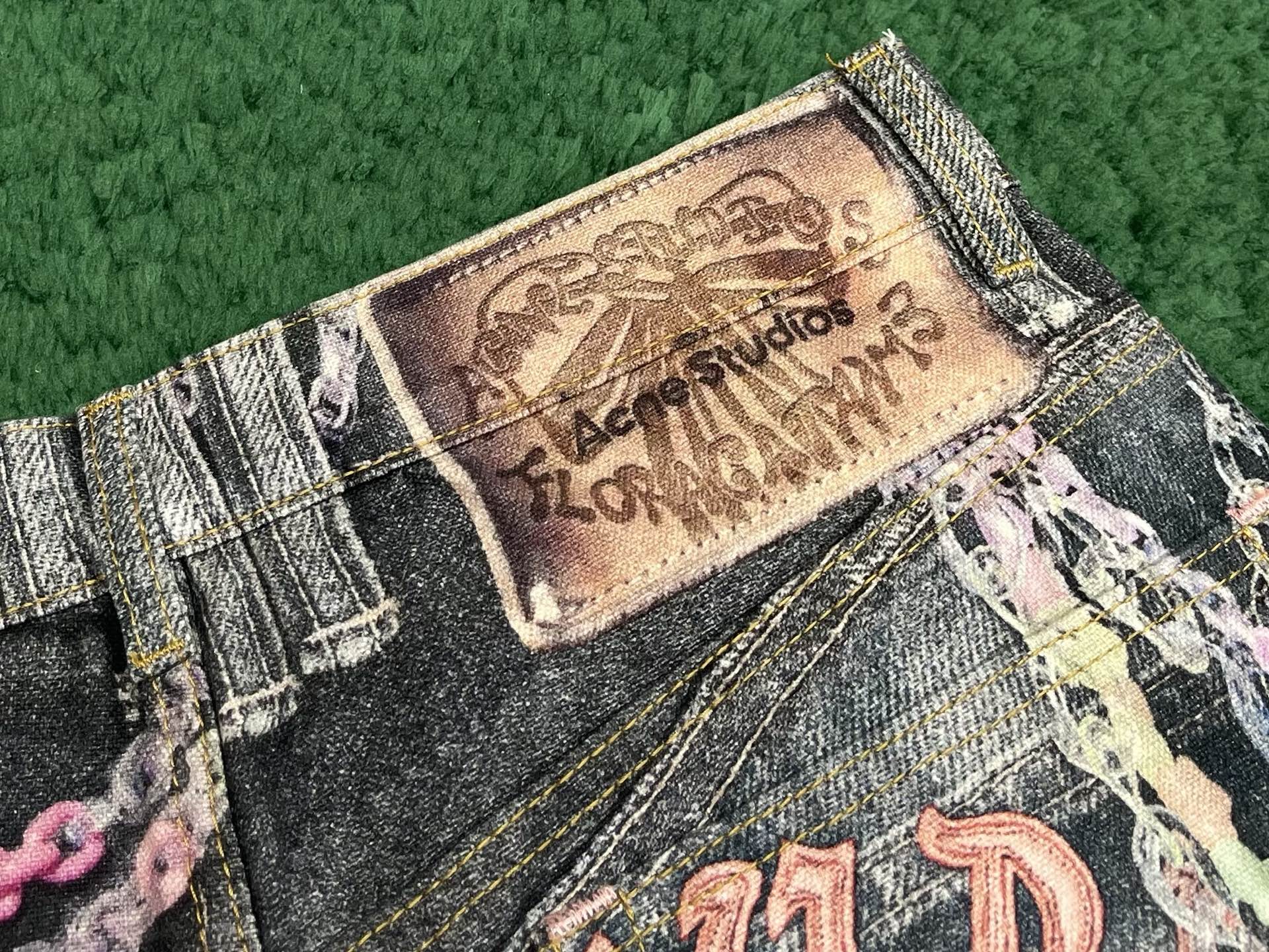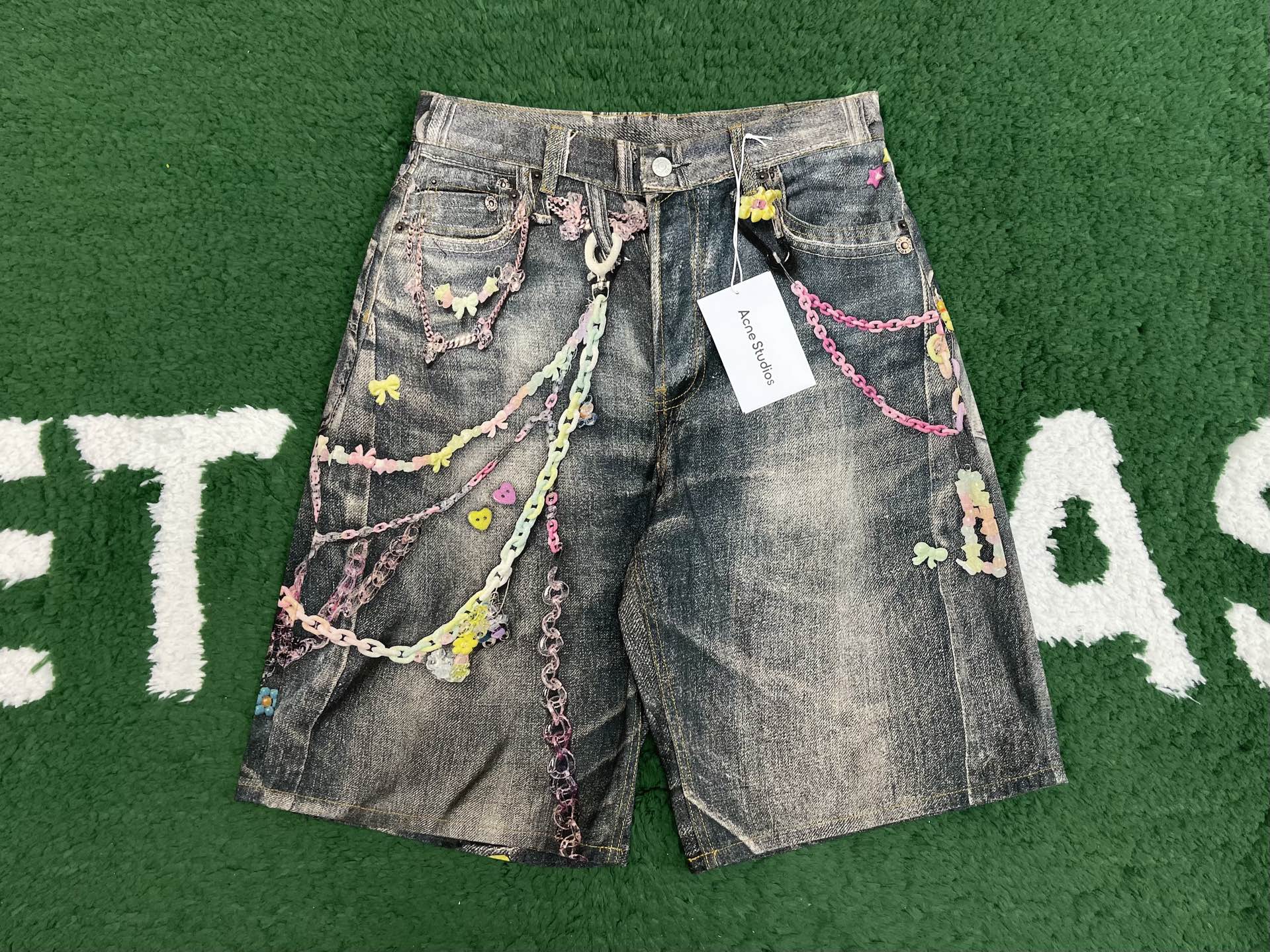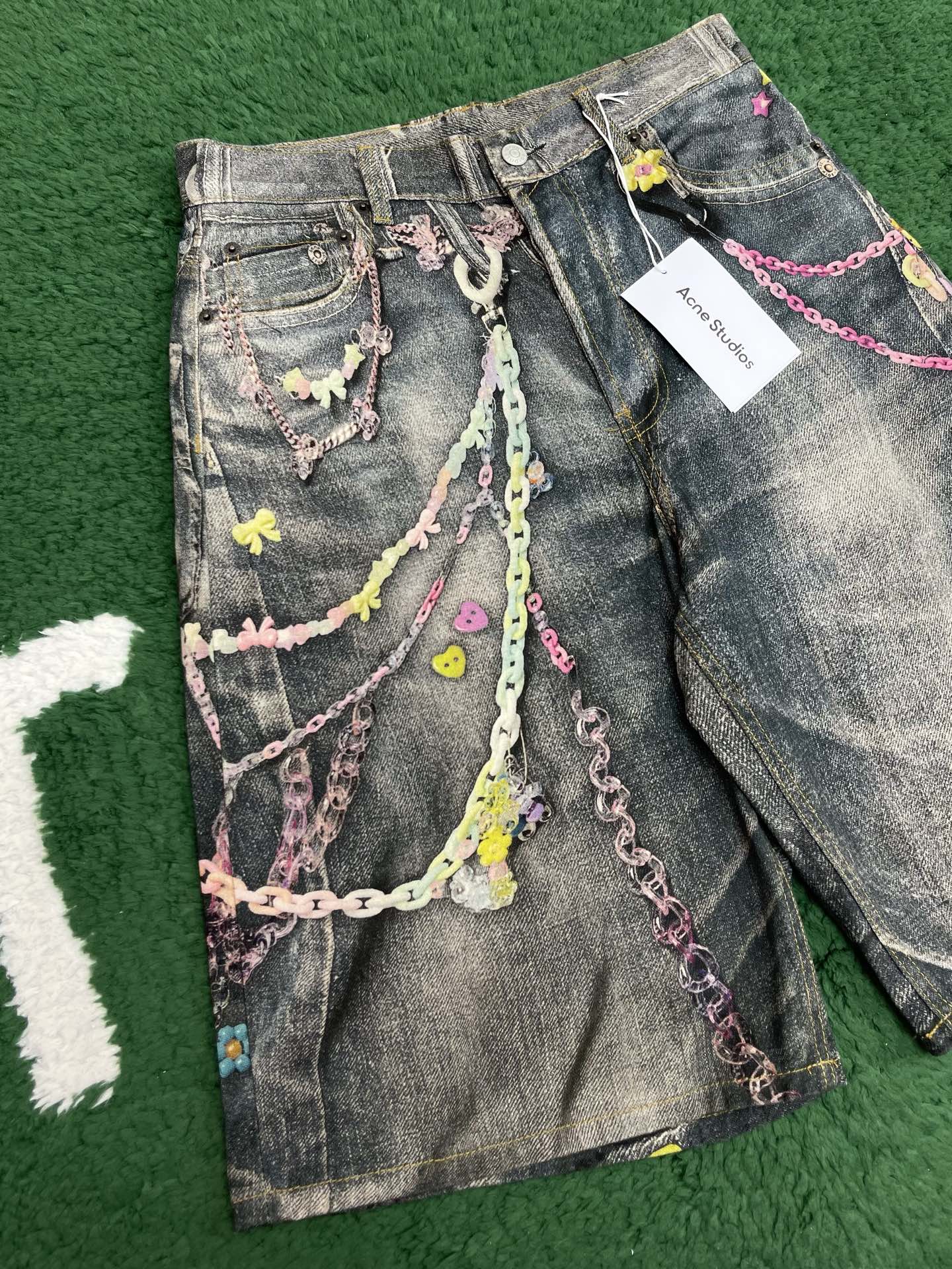 아크네 스튜디오 루즈핏 미드 블루 데님 프린팅 버뮤다 쇼츠