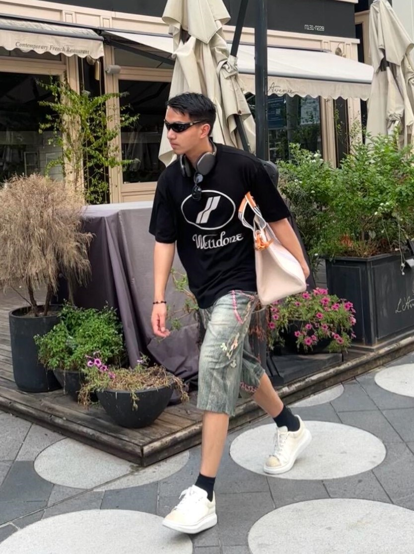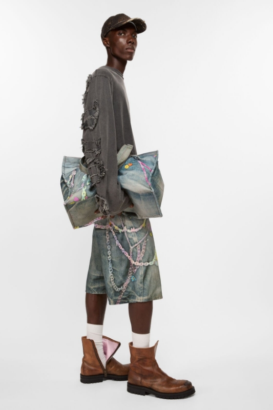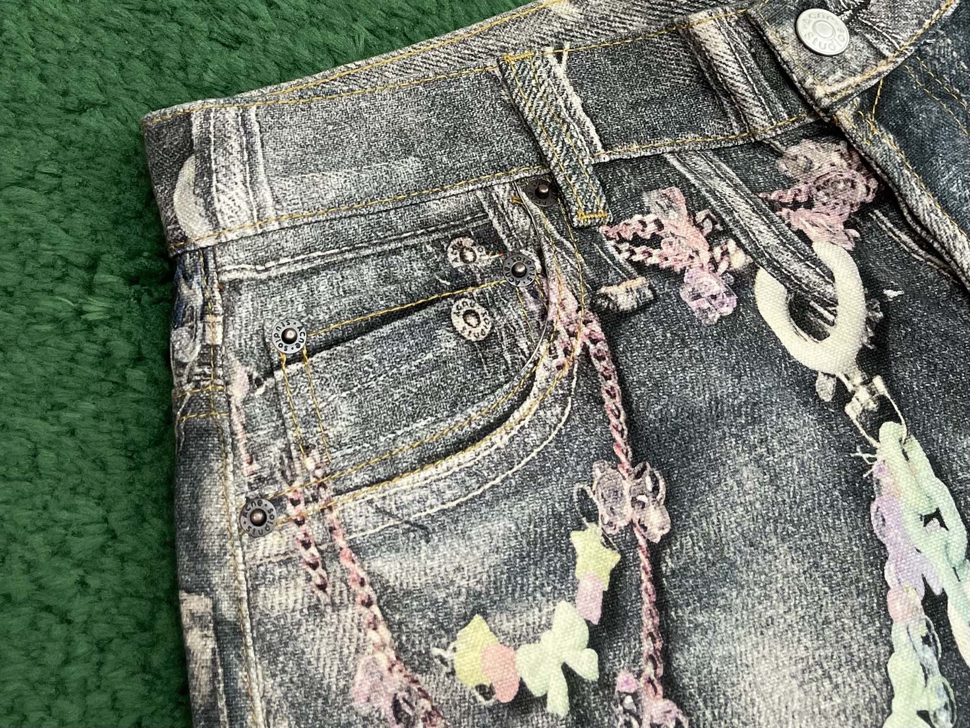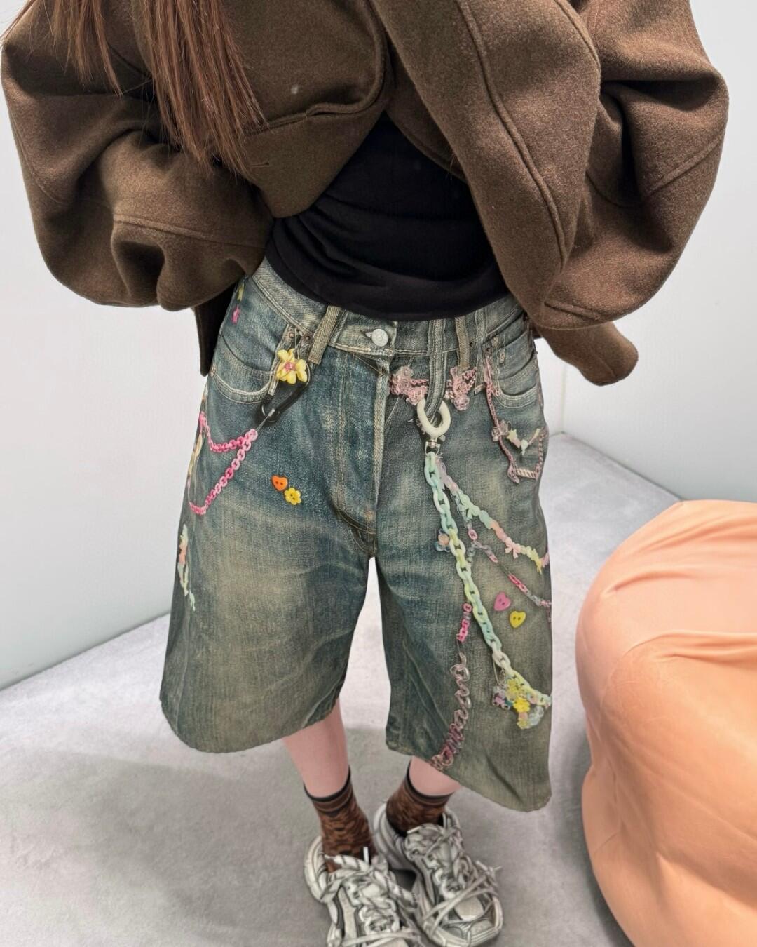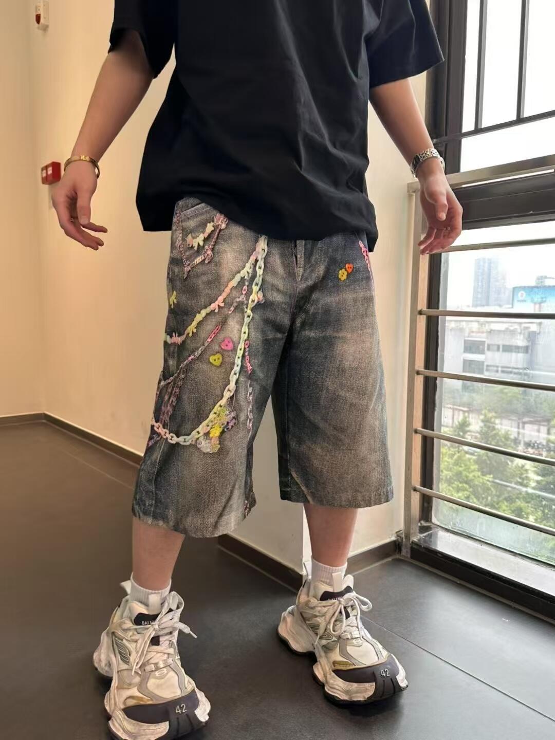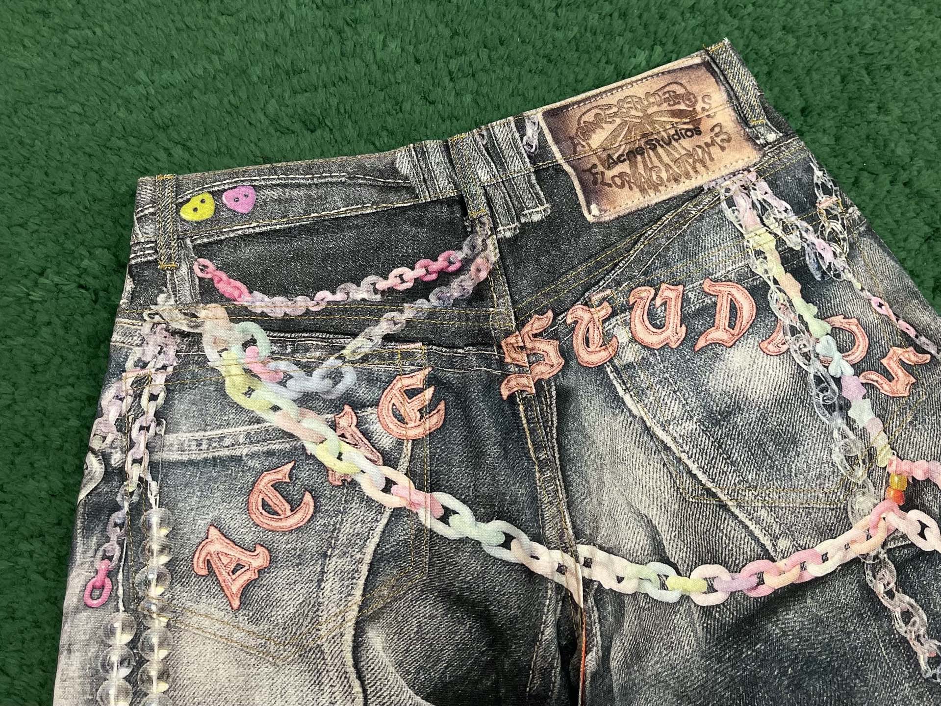 아크네 스튜디오 루즈핏 미드 블루 데님 프린팅 버뮤다 쇼츠