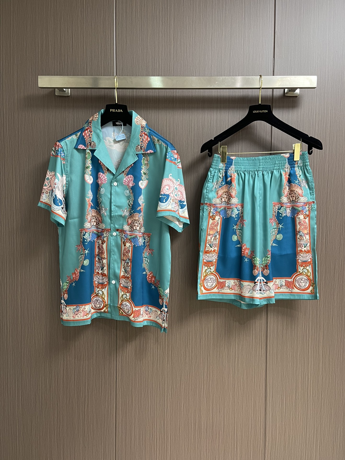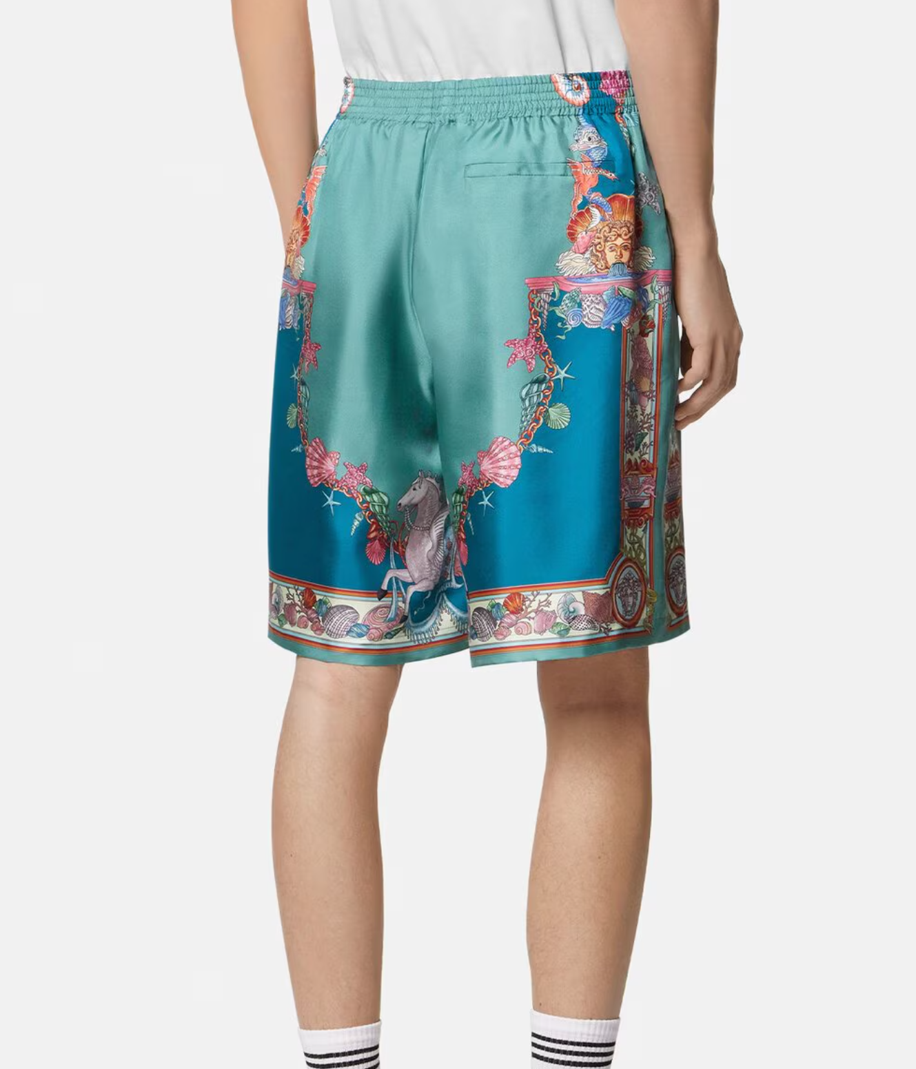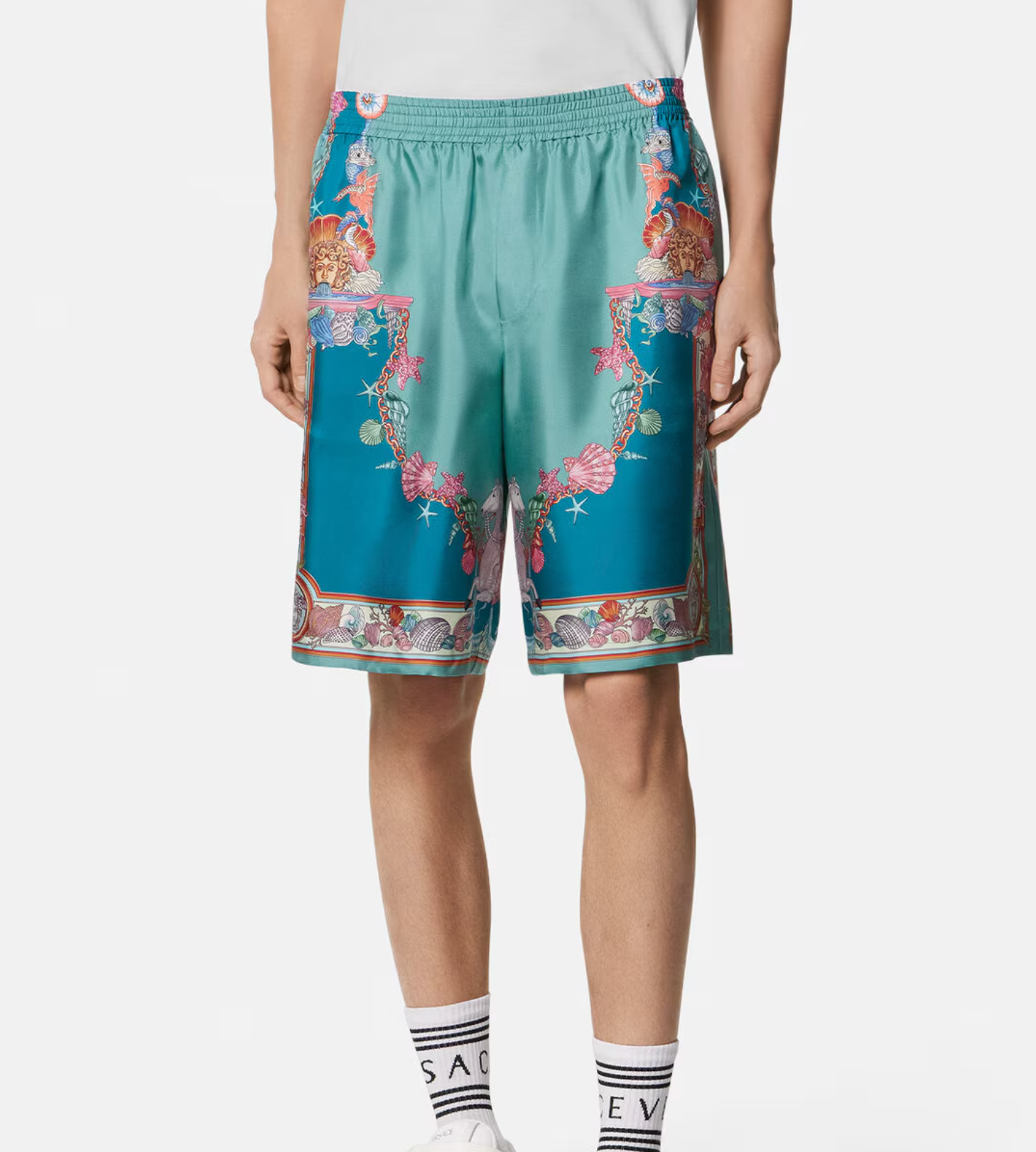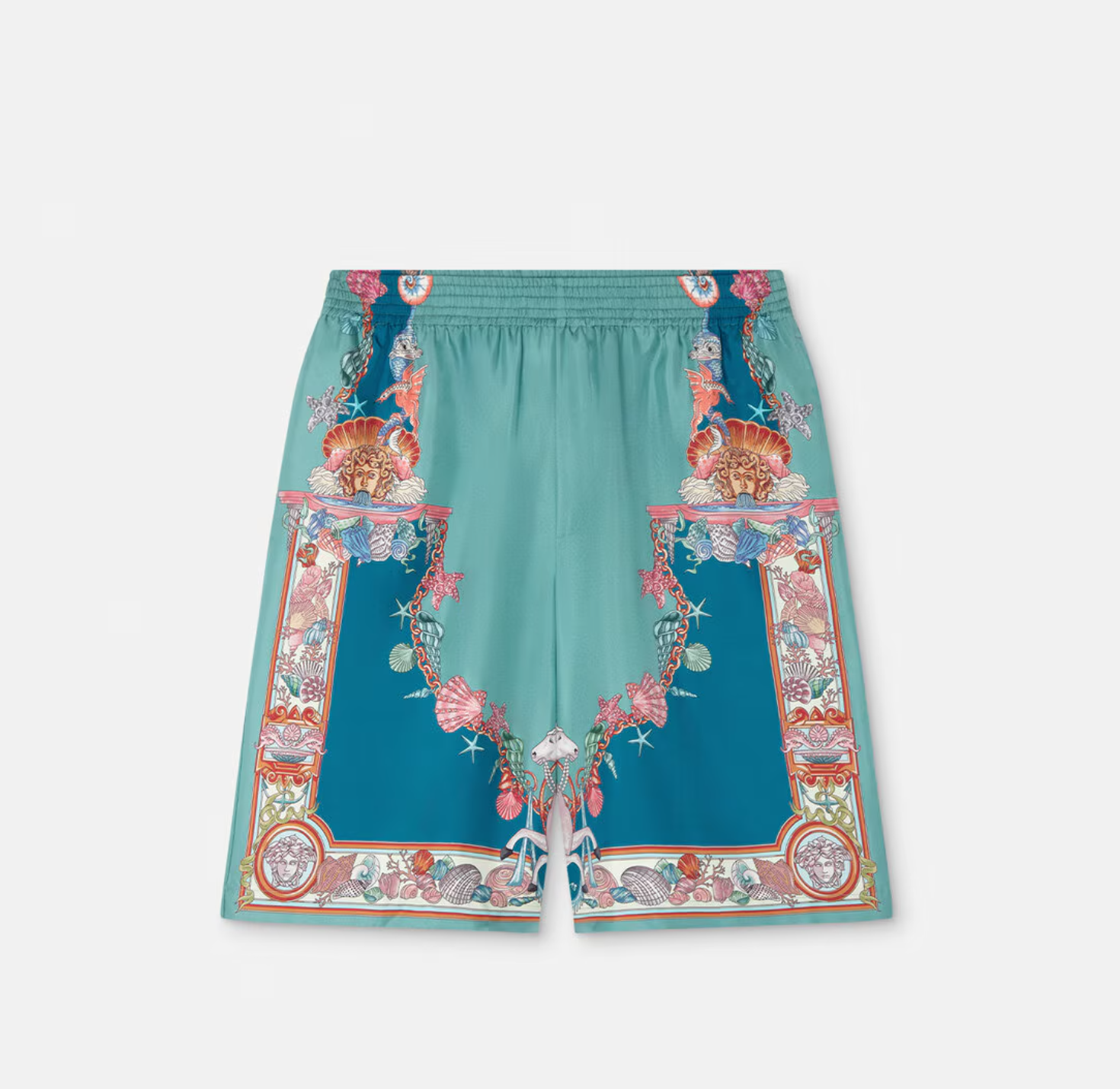 베르사체 코랄 극장 프린트 실크 쇼츠