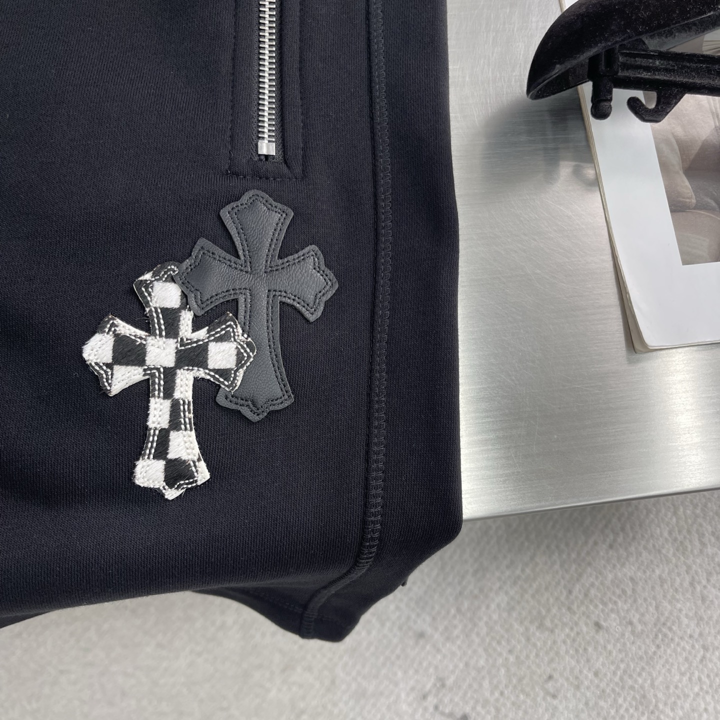 크롬하츠 레더 크로스 쇼츠 블랙