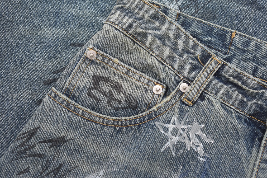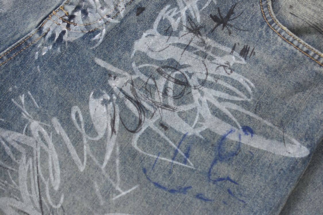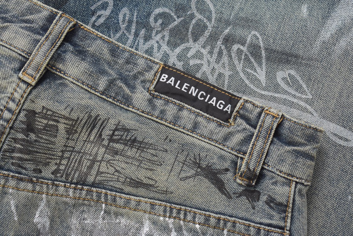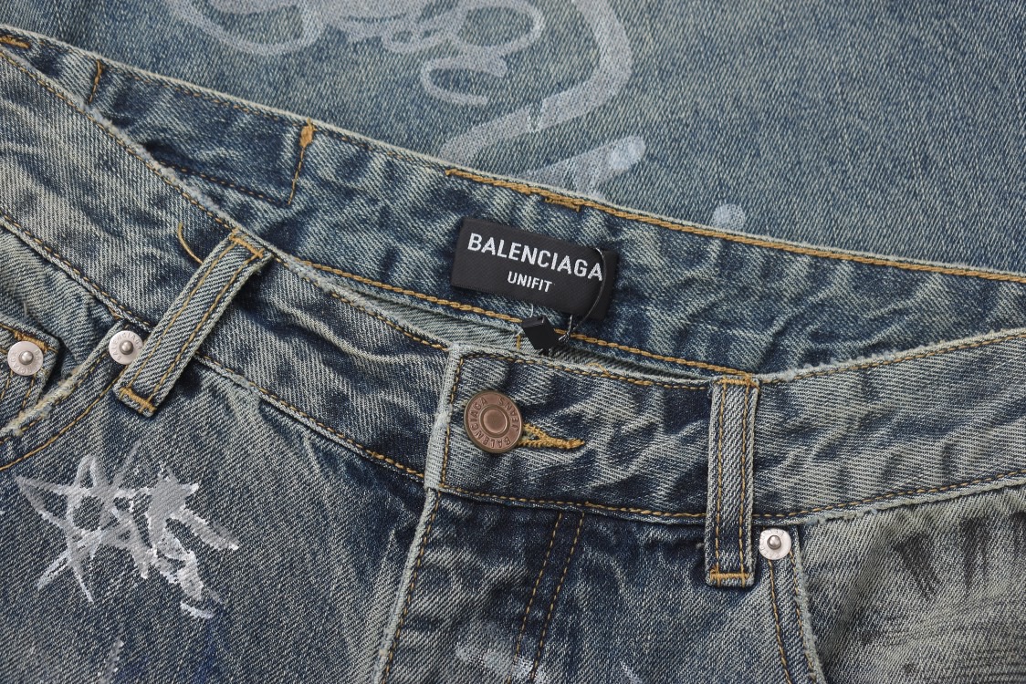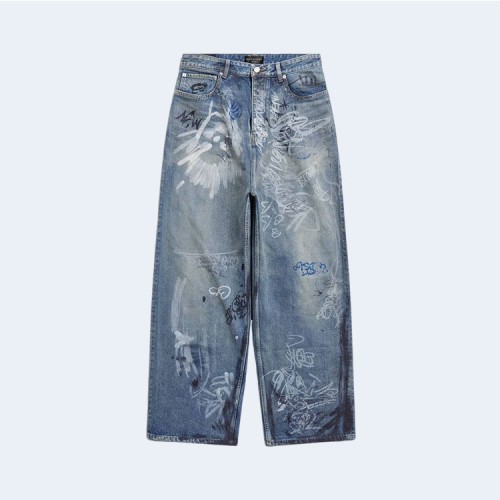 발렌시아가 그래피티 배기 팬츠 라이트 블루