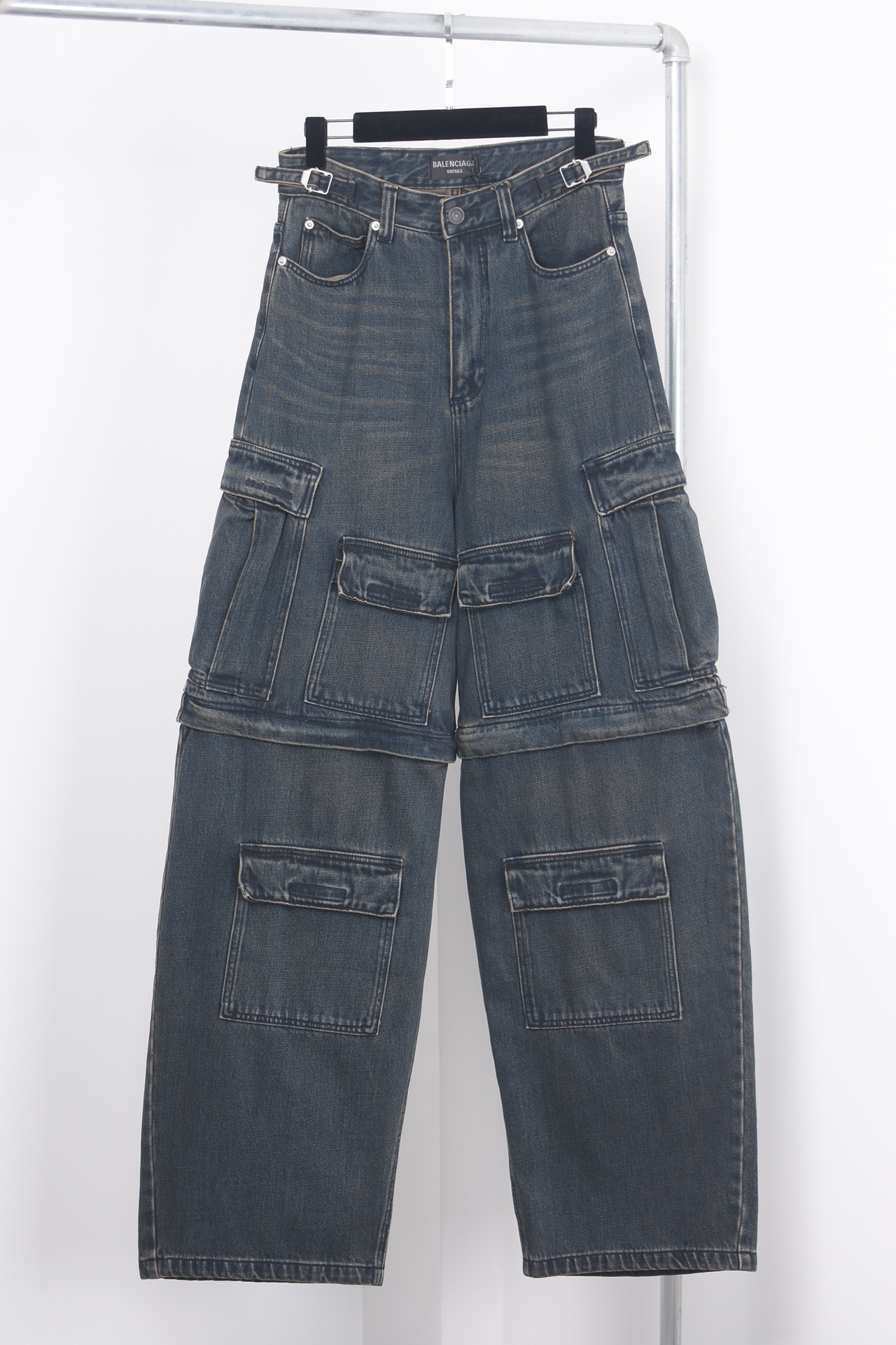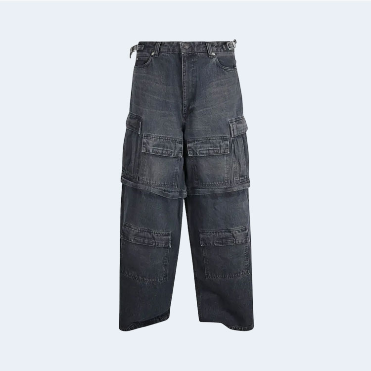 발렌시아가 와이드 레그 데님 카고 팬츠