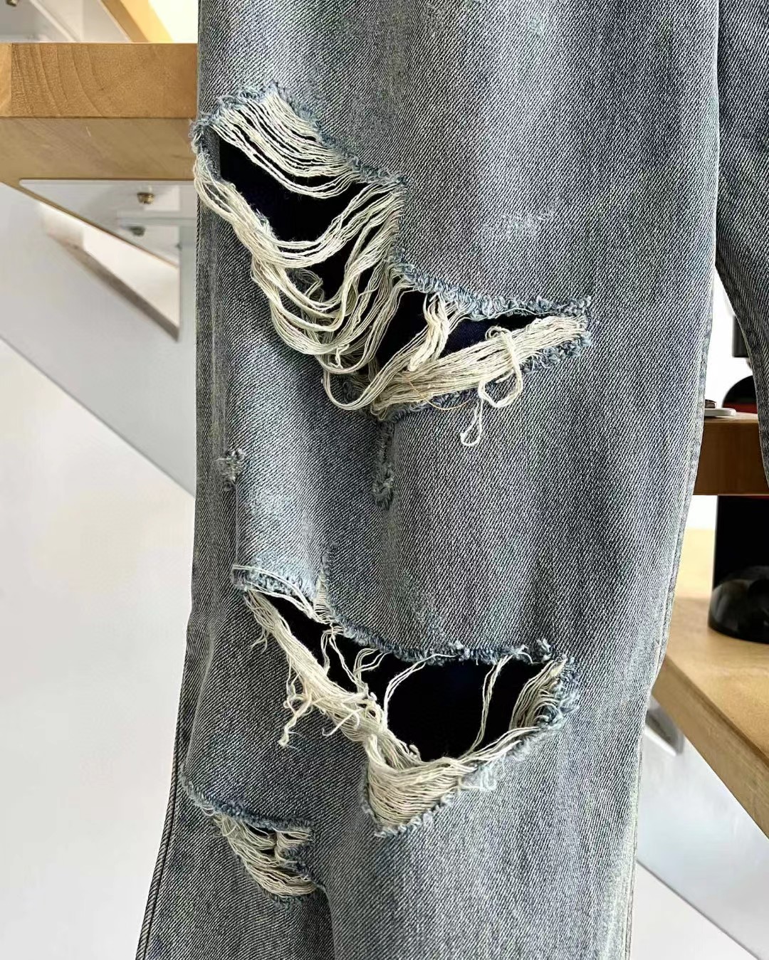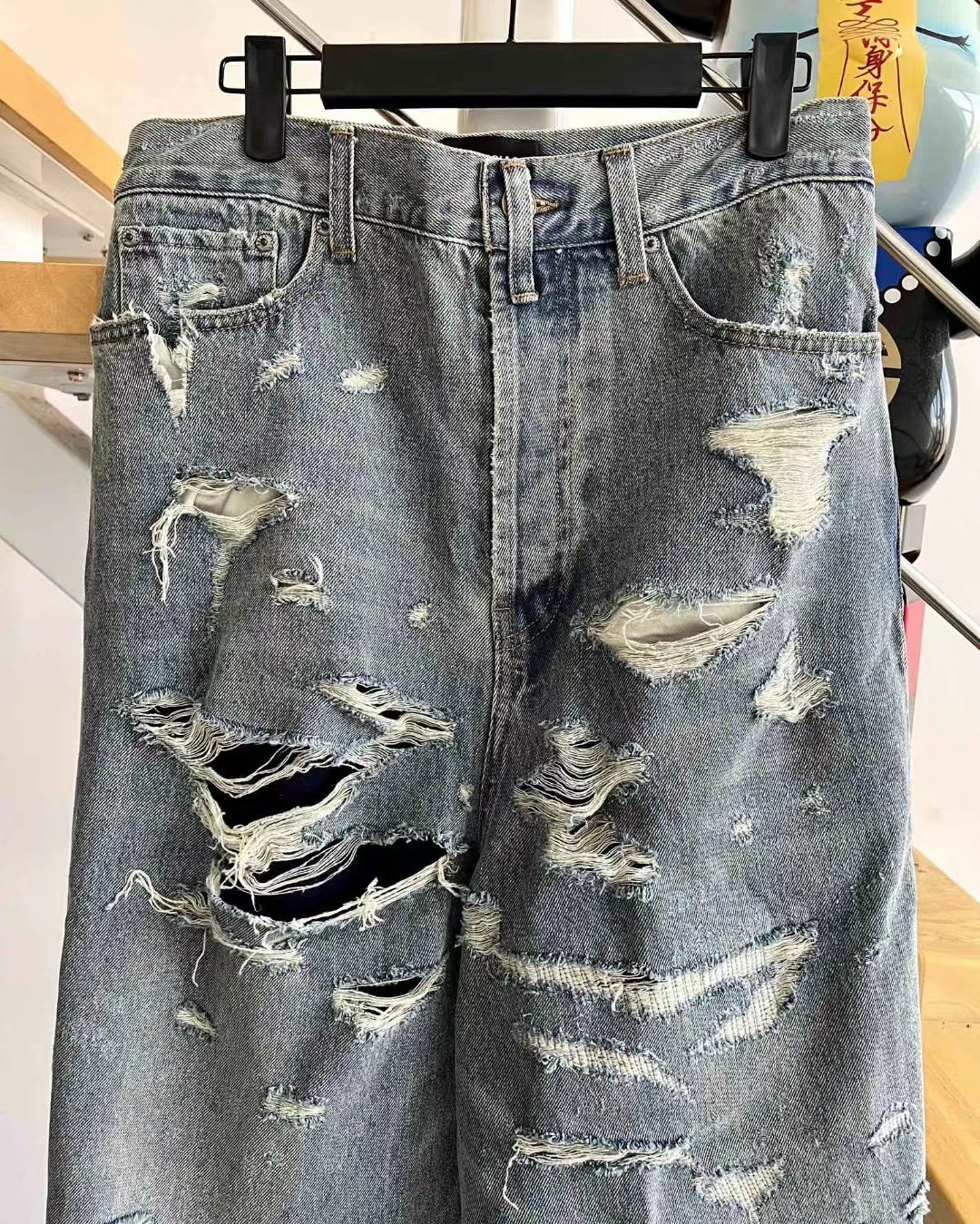 발렌시아가 디스트로이드 배기 데님 팬츠