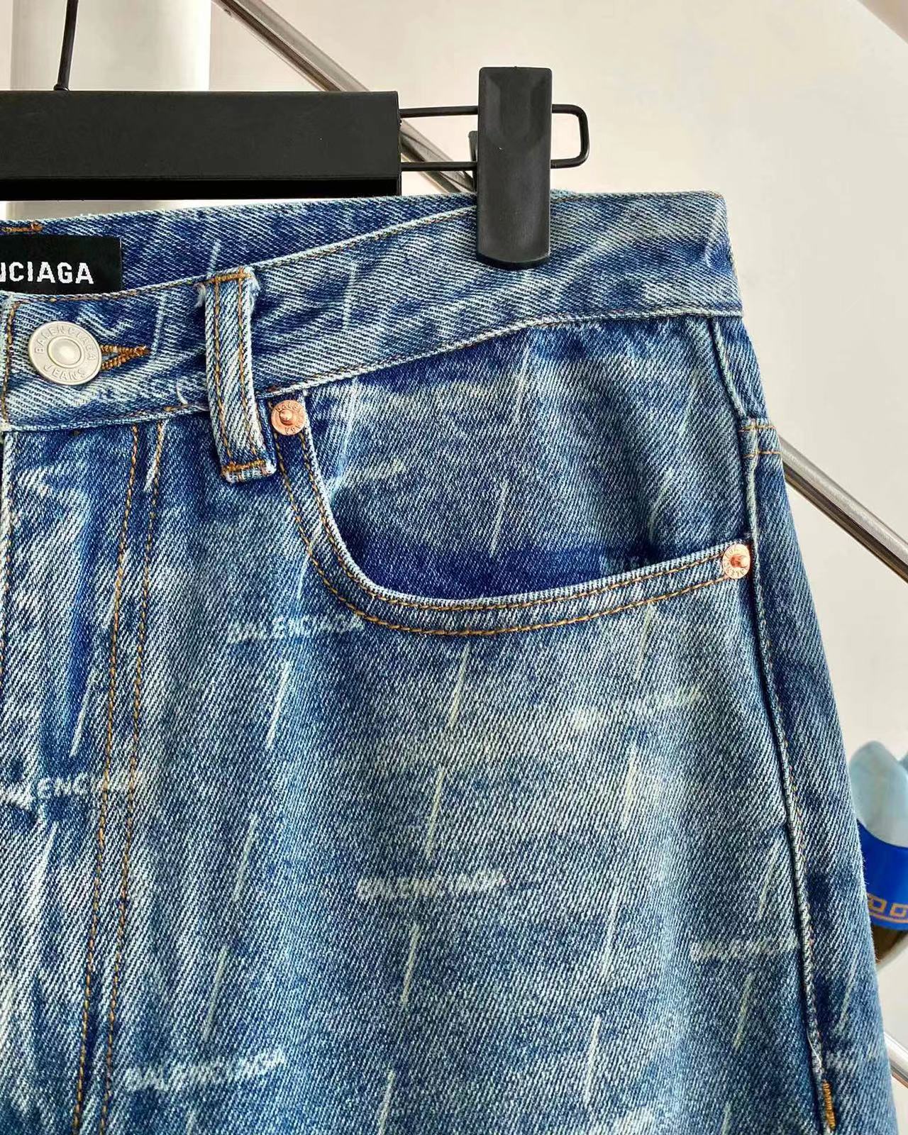 발렌시아가 올 오버 로고 스트레이트 진