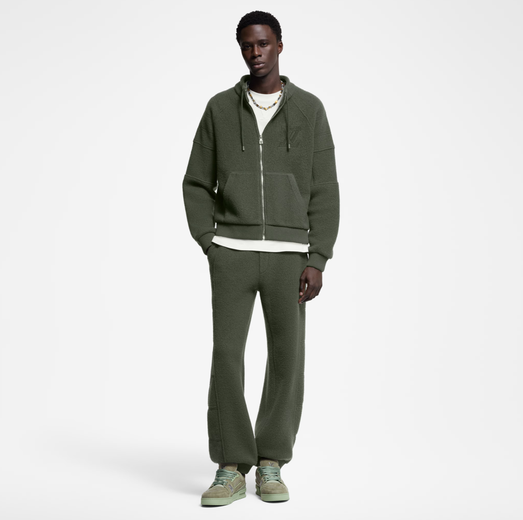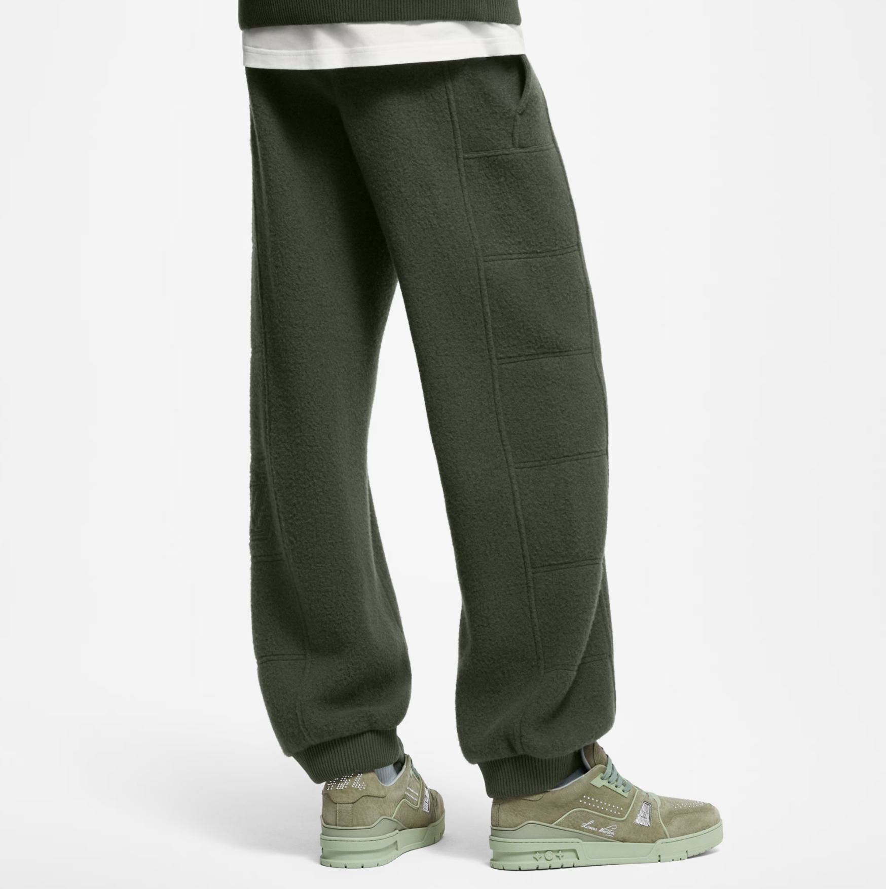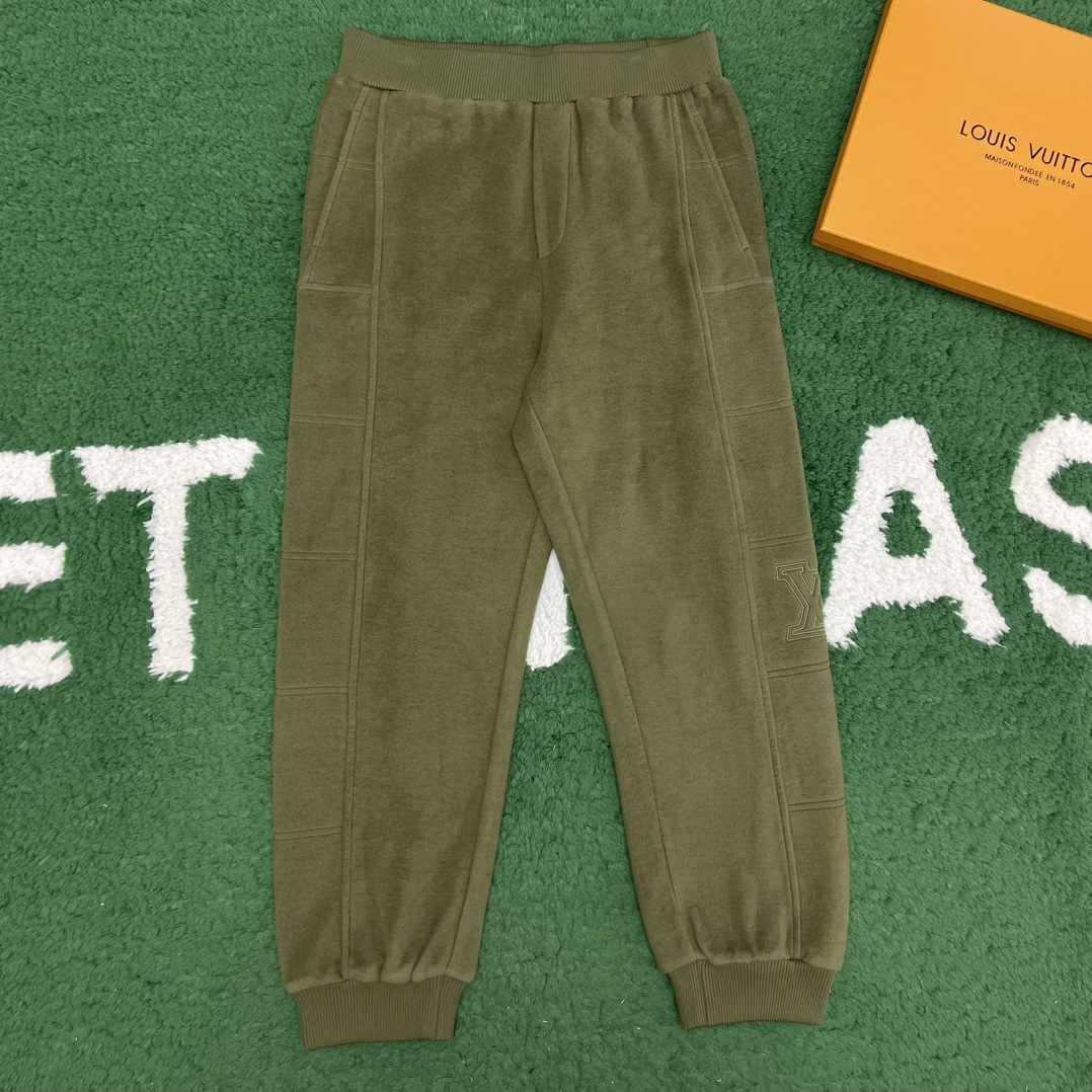 루이비통 퀼티드 텍스처드 울 팬츠 카키 1AGJPR