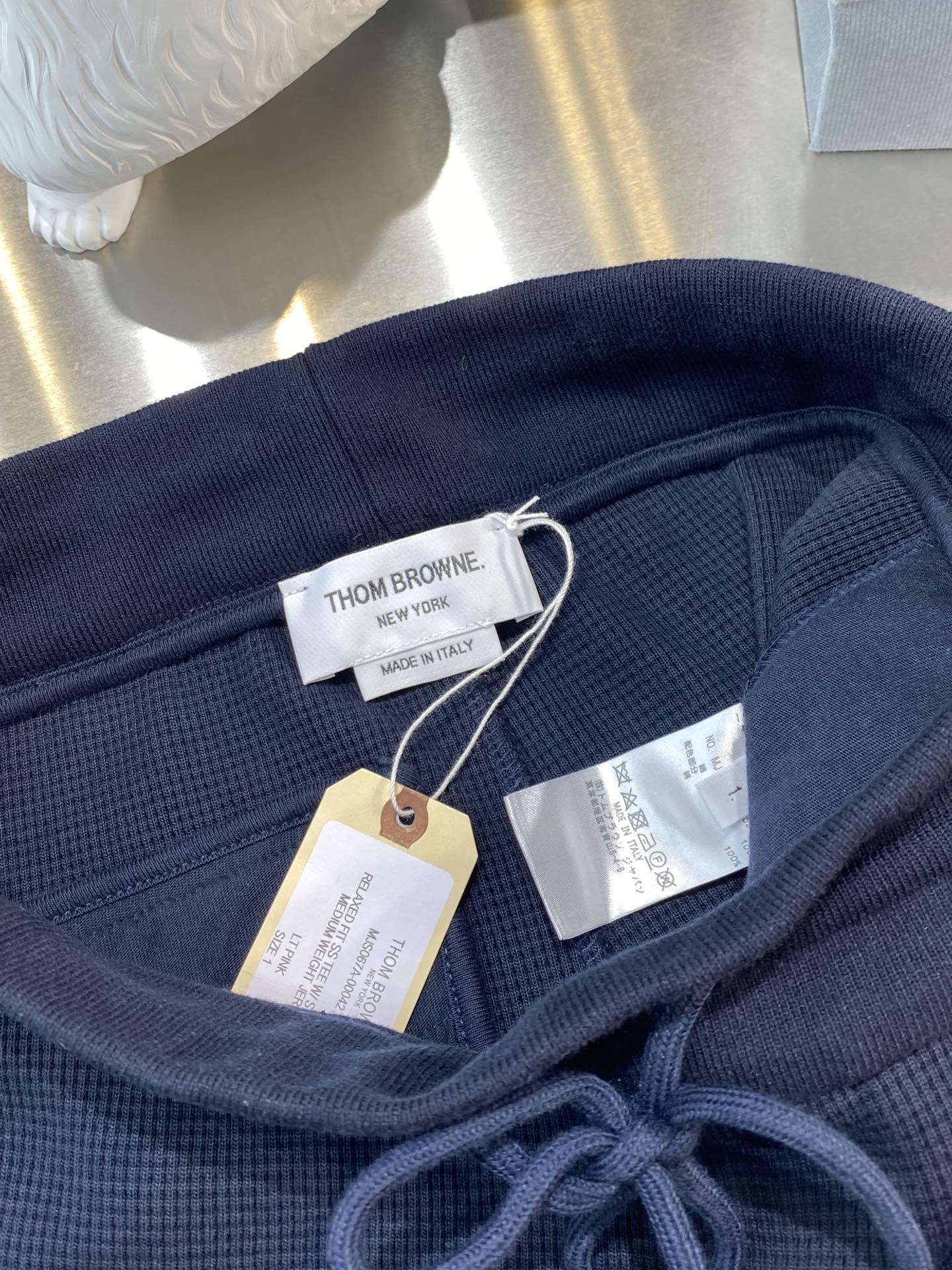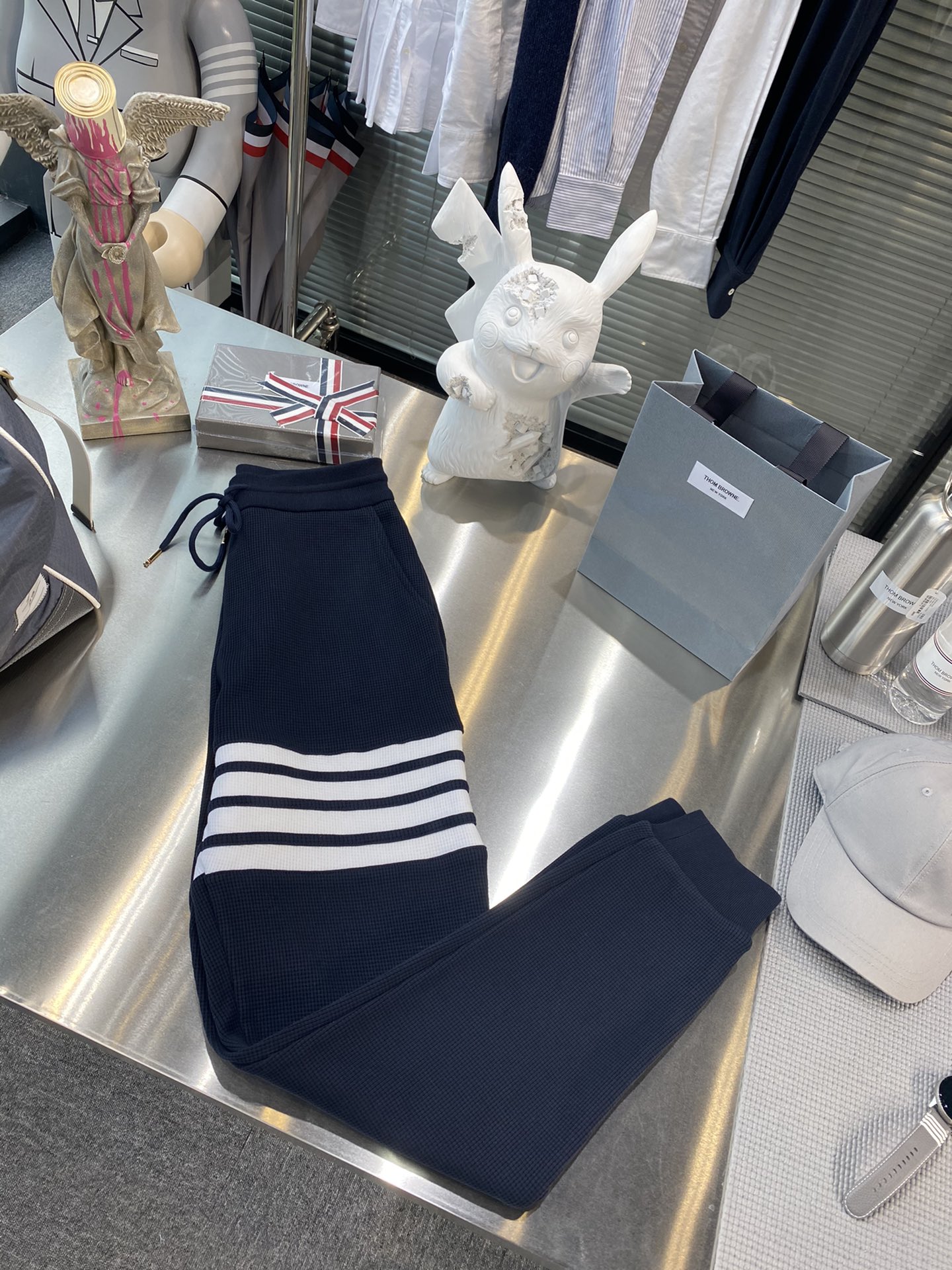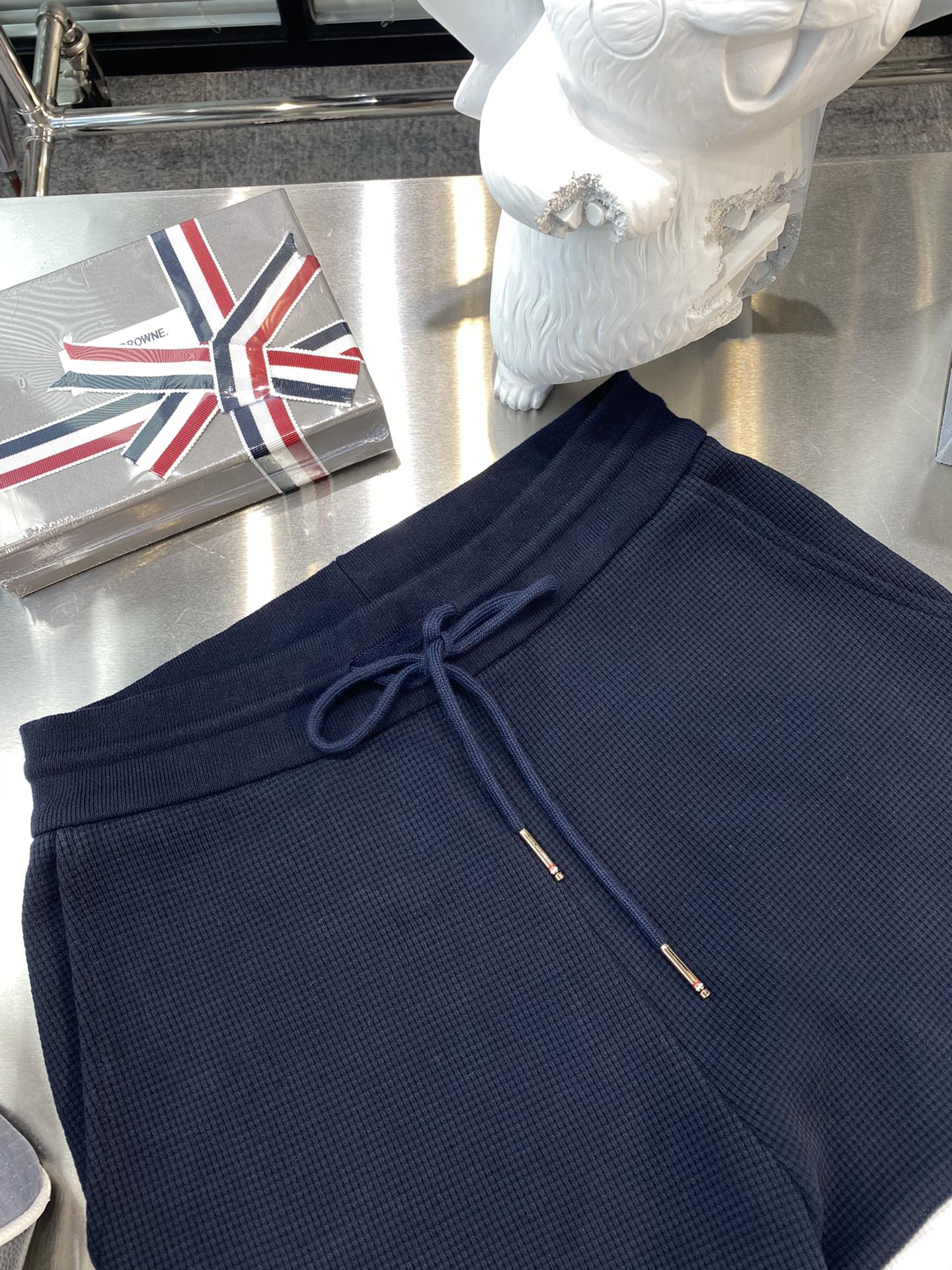 톰브라운 와플 스트라이프 스웨트팬츠 네이비