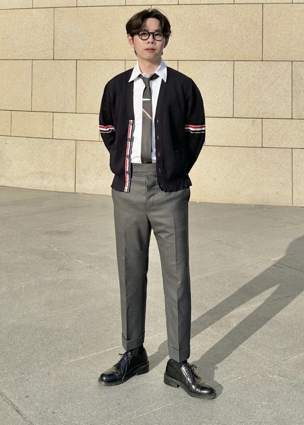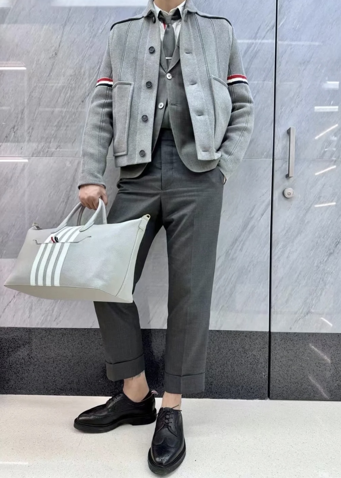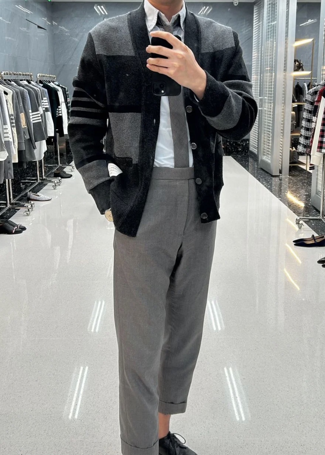 톰브라운 미디엄 그레이 슈퍼 120수 트윌 클래식 백스트랩 팬츠