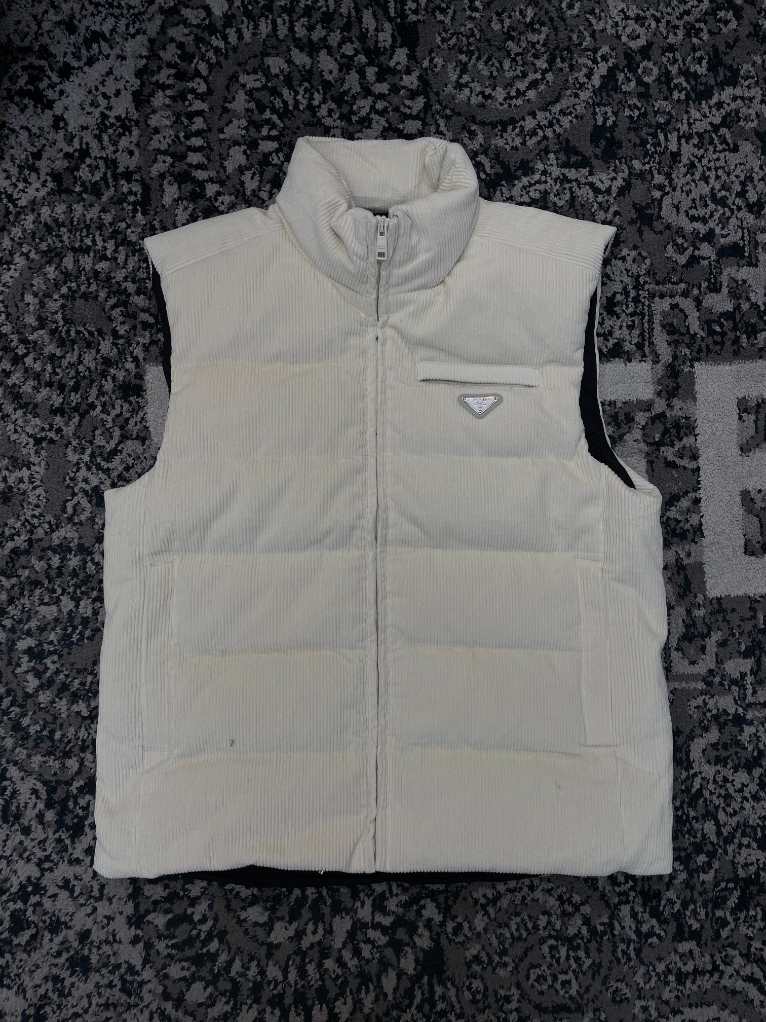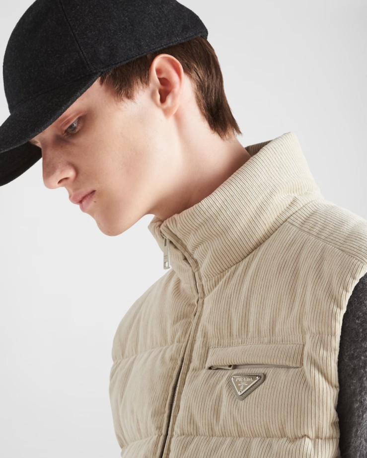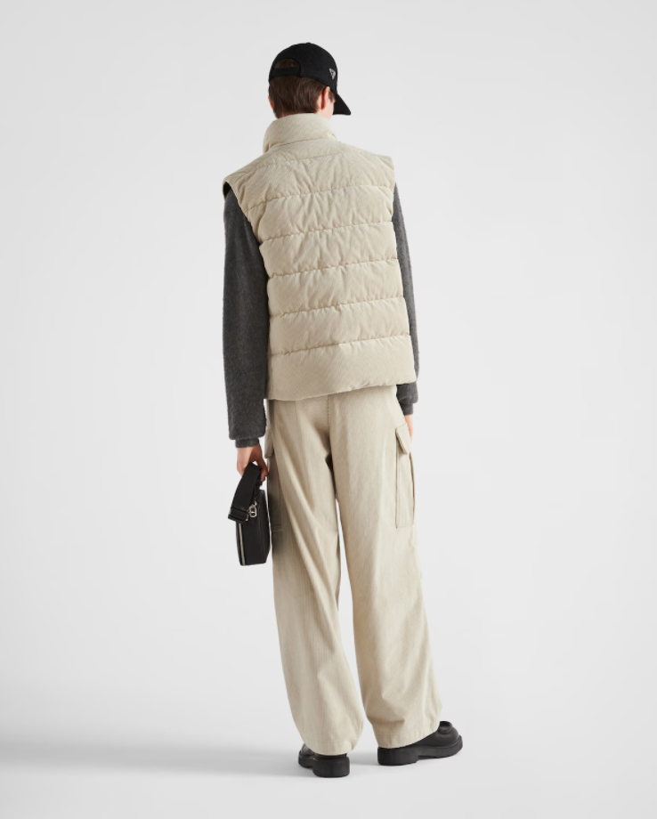 프라다 크롭 코듀로이 다운 패딩 베스트