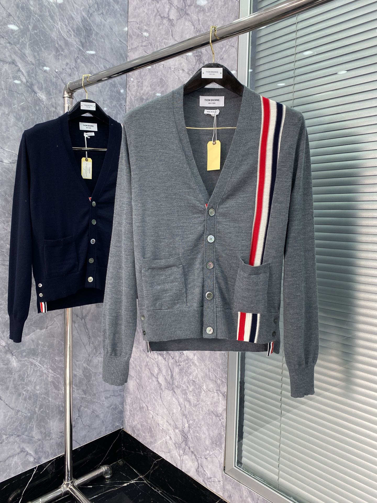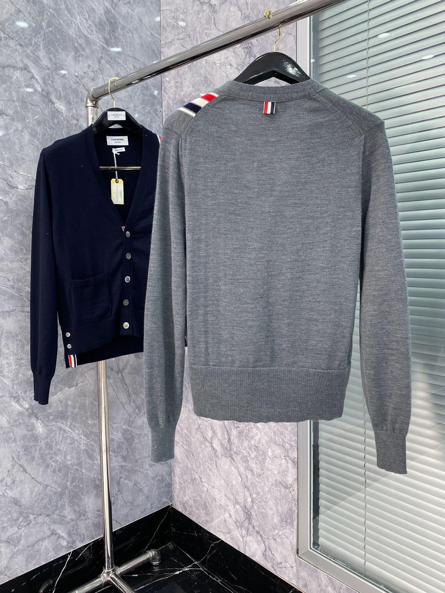 톰브라운 라이트 그레이 돌핀 브이넥 가디건