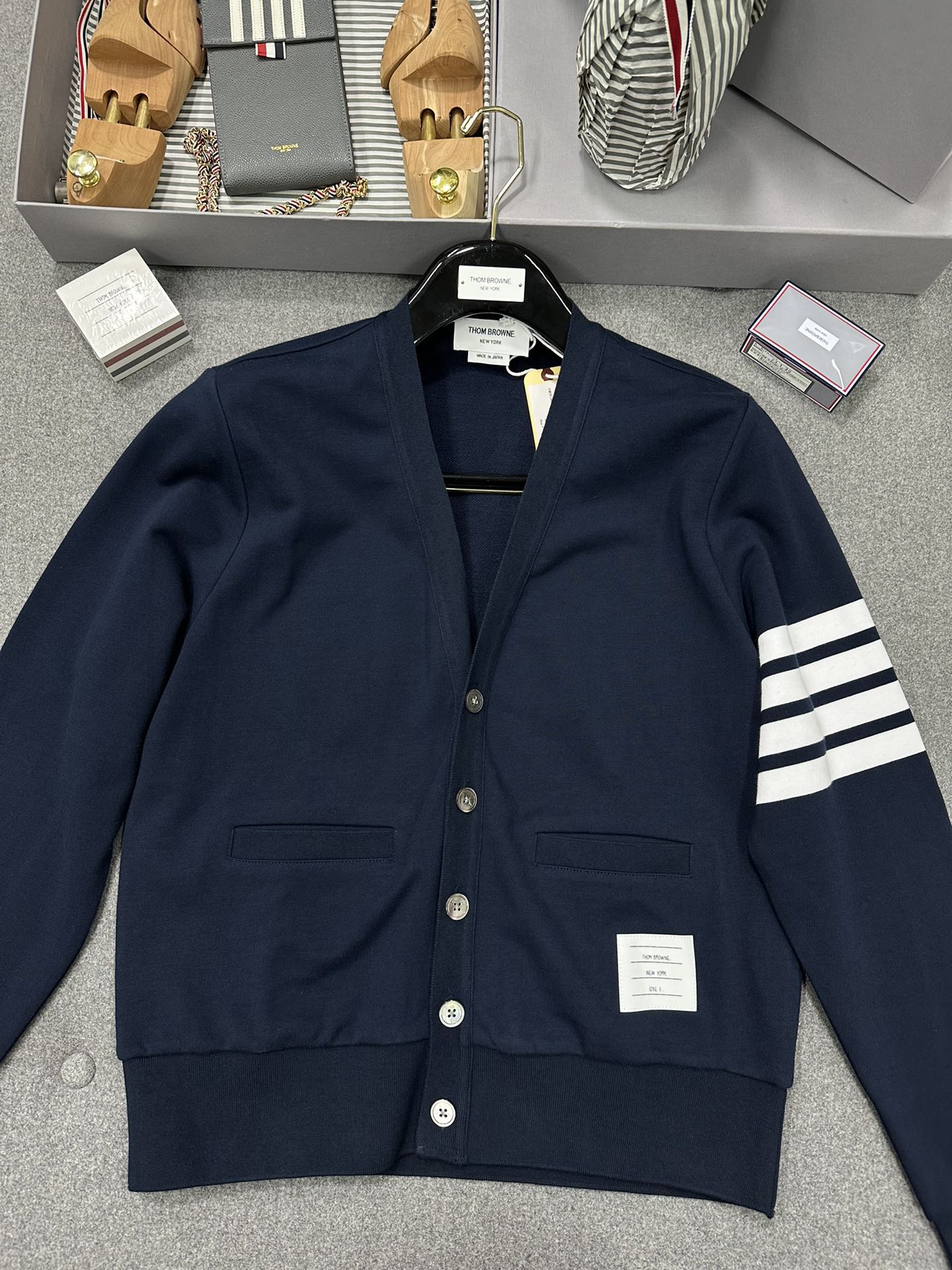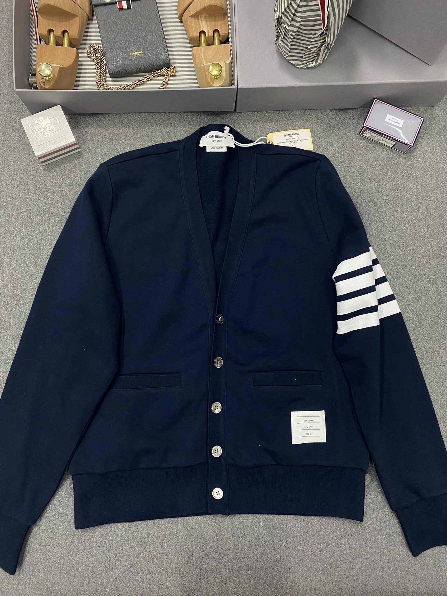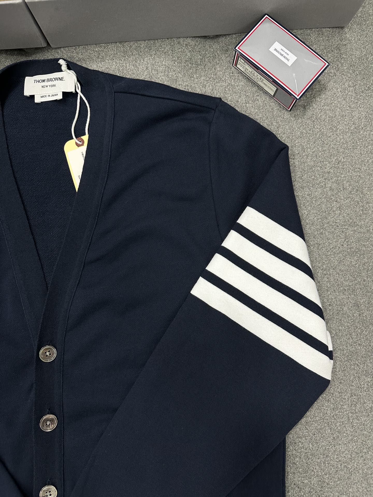 톰브라운 밀라노 브이넥 카디건 미디엄 그레이