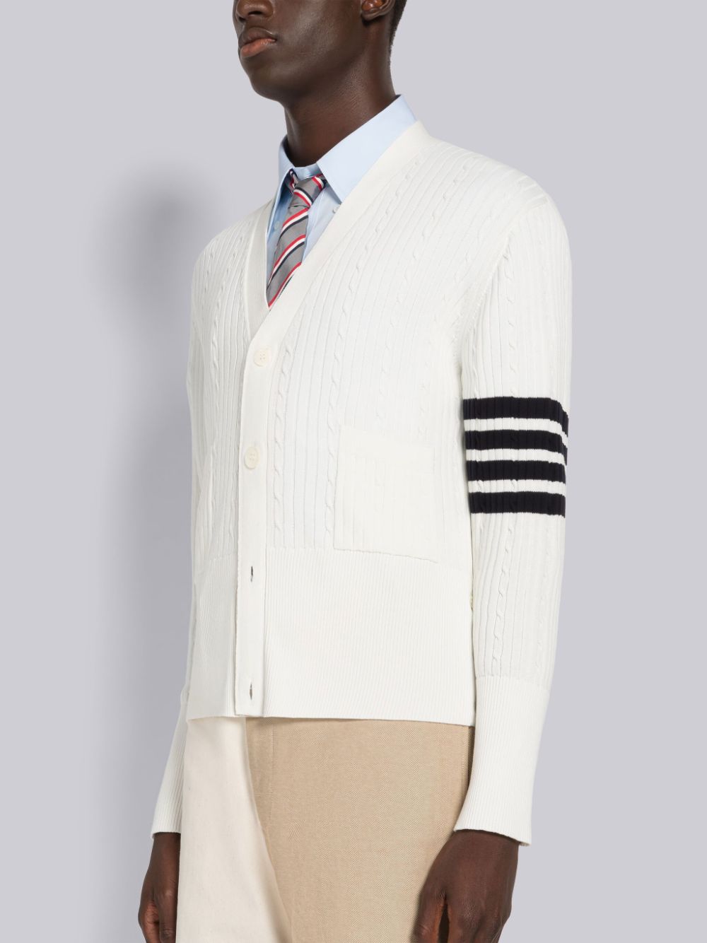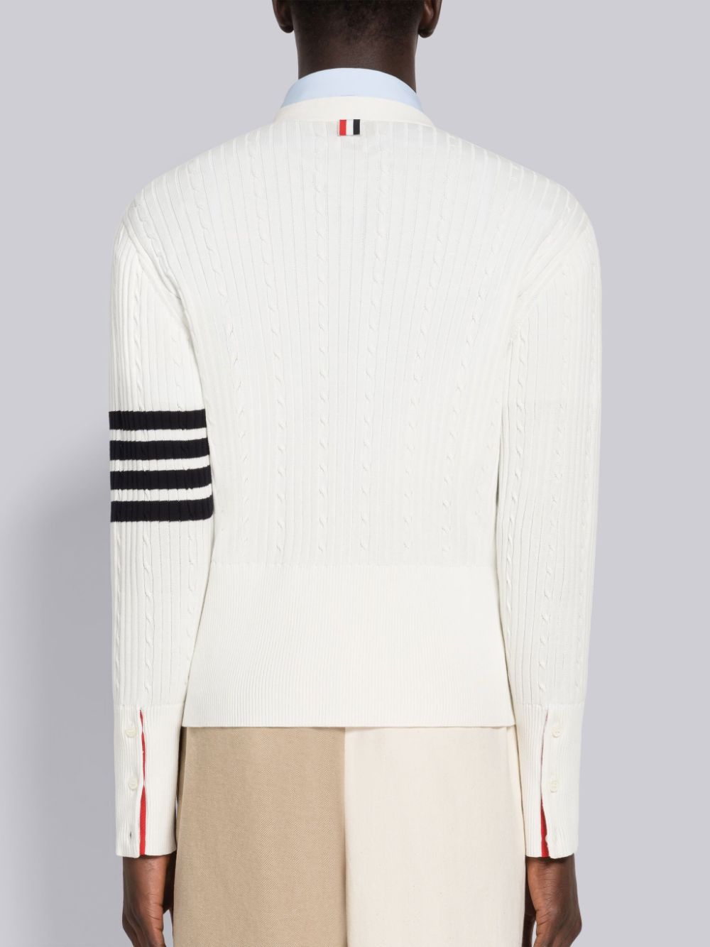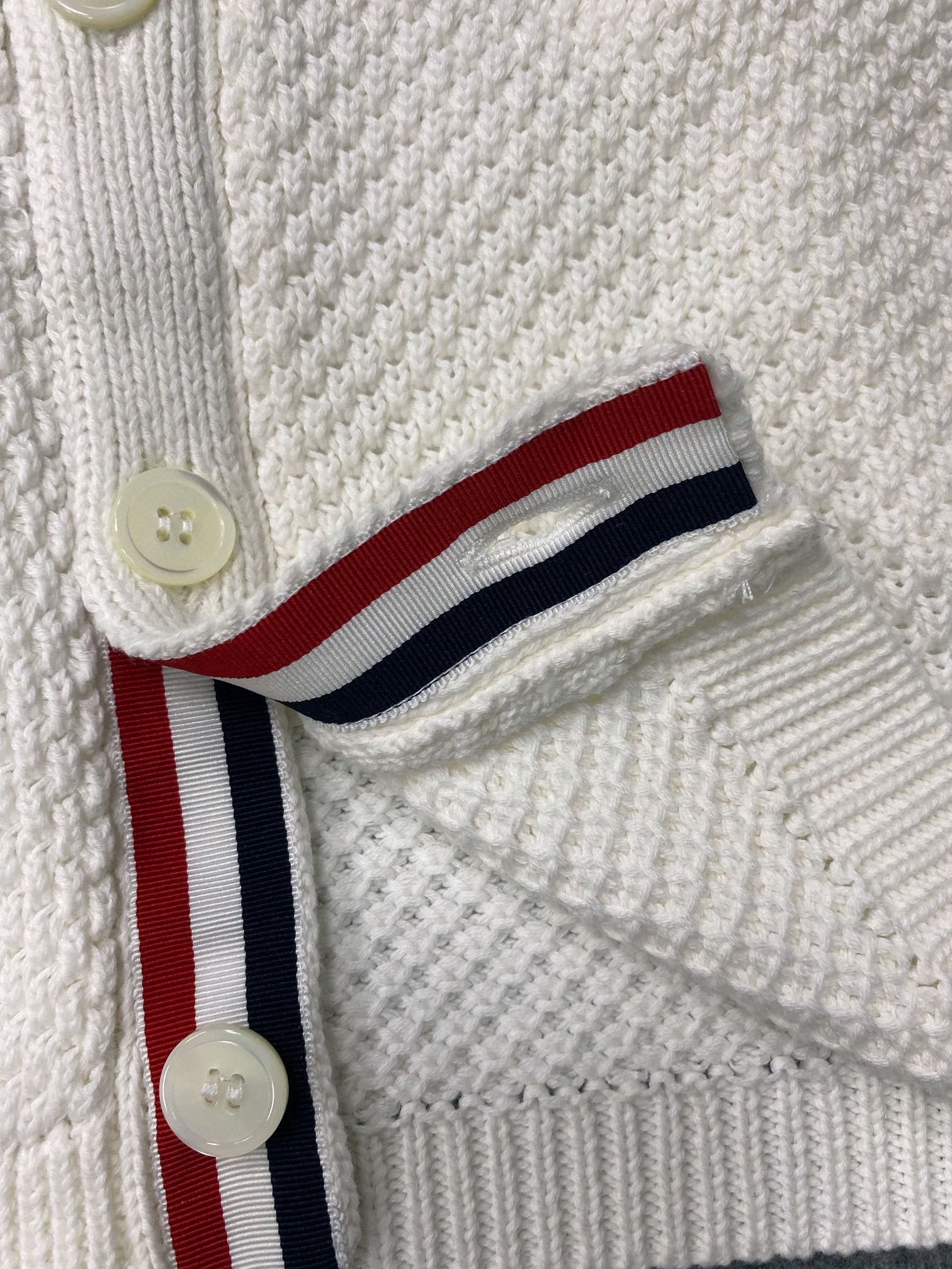 톰브라운 베이비 케이블 립 코튼 브이넥 카디건