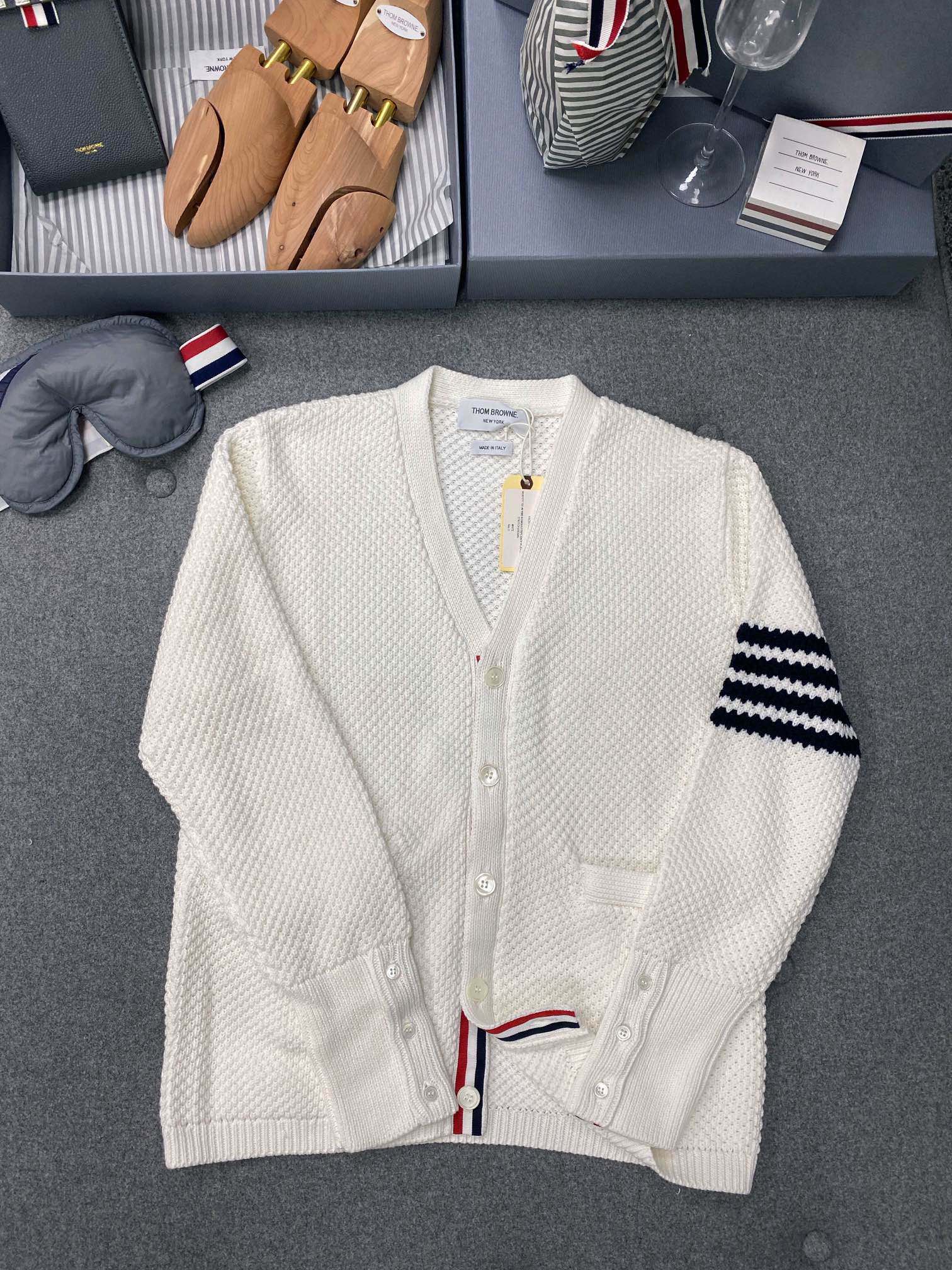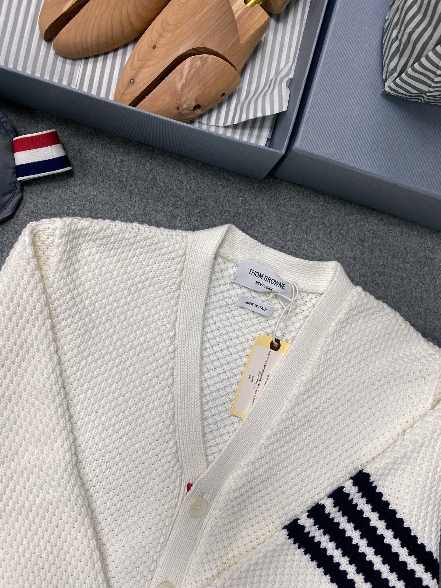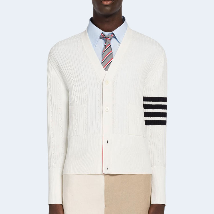 톰브라운 베이비 케이블 립 코튼 브이넥 카디건