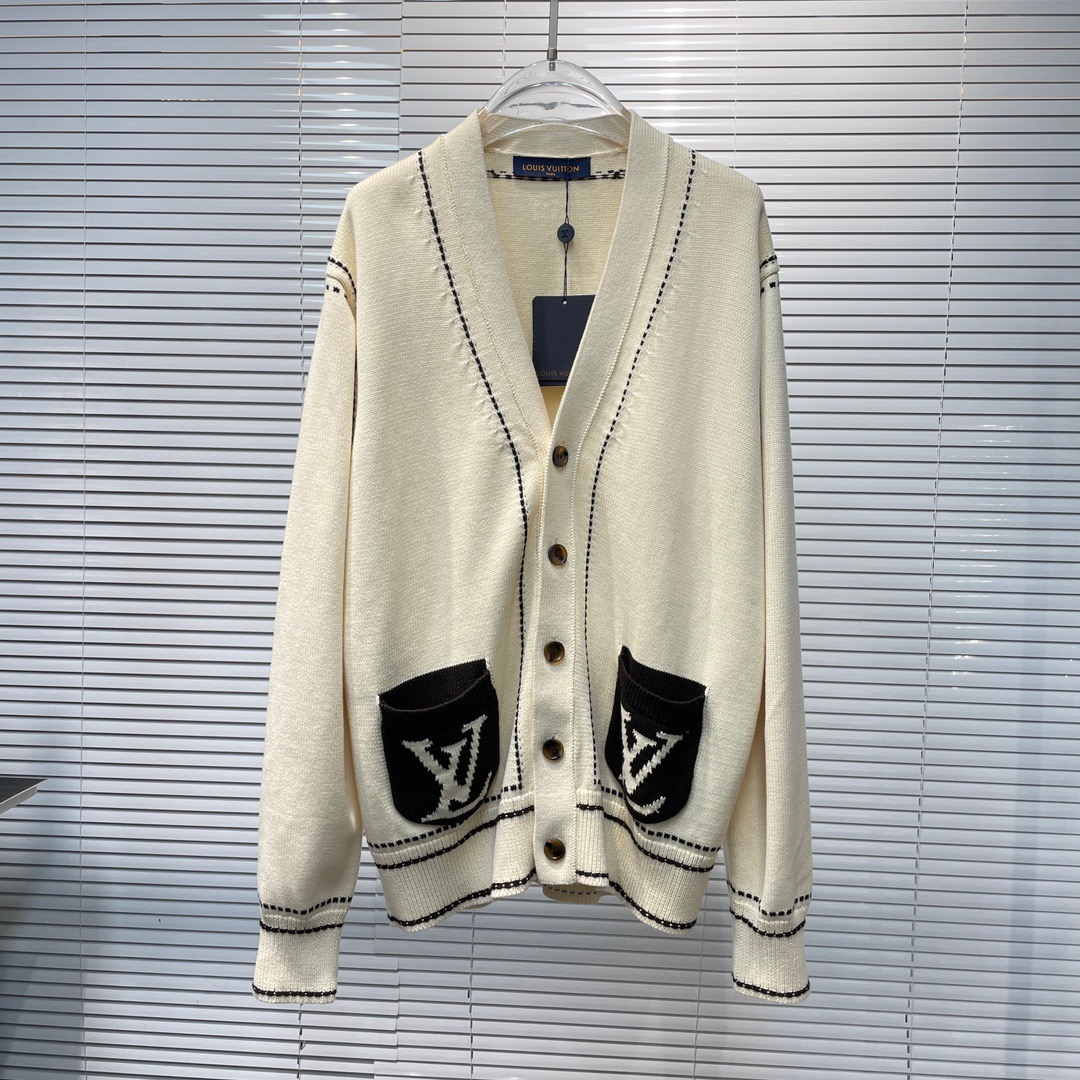 루이비통 케이블 패턴 브이넥 메리노 울 베스트 1AFIVD
