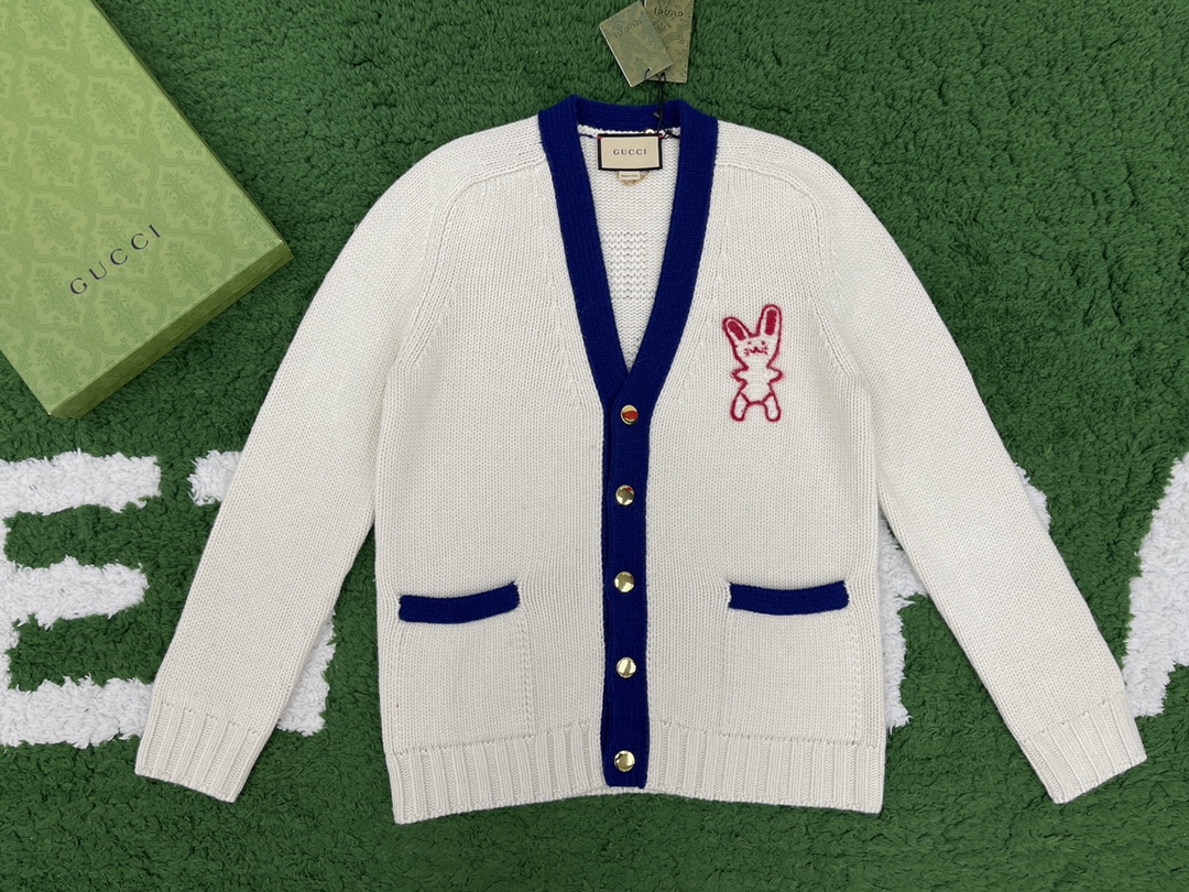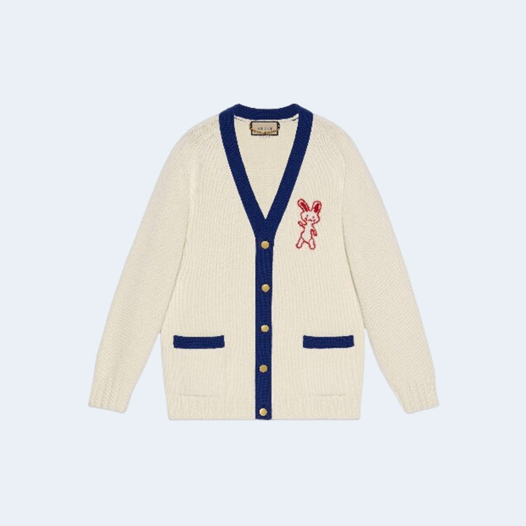 구찌 레빗 엠브로이드 브이넥 가디건