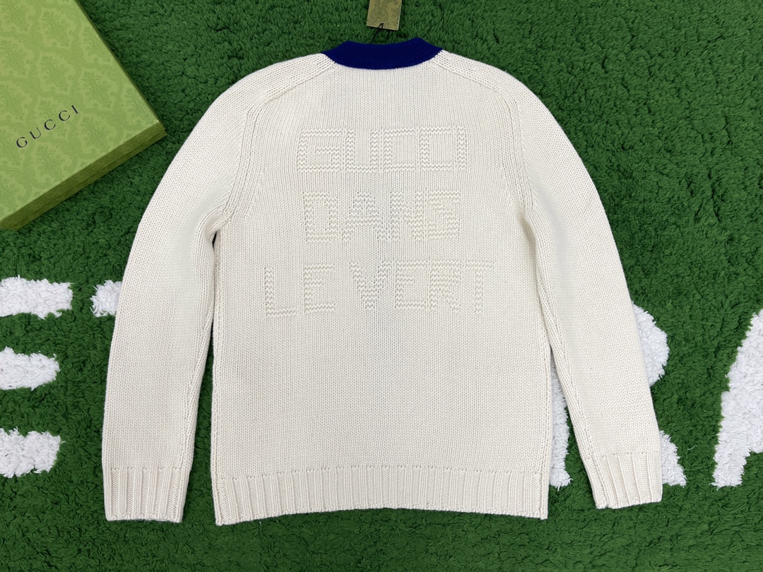 구찌 패치 디테일 코튼 울 가디건