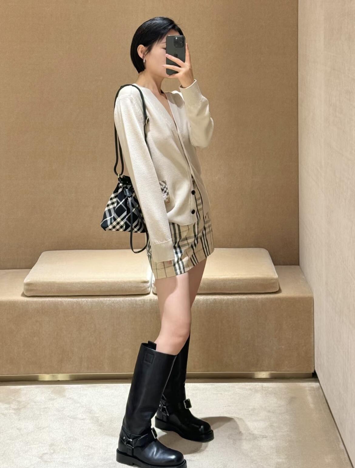 버버리 체크 라벨 울 가디건 2color (BEIGE) (BLACK)
