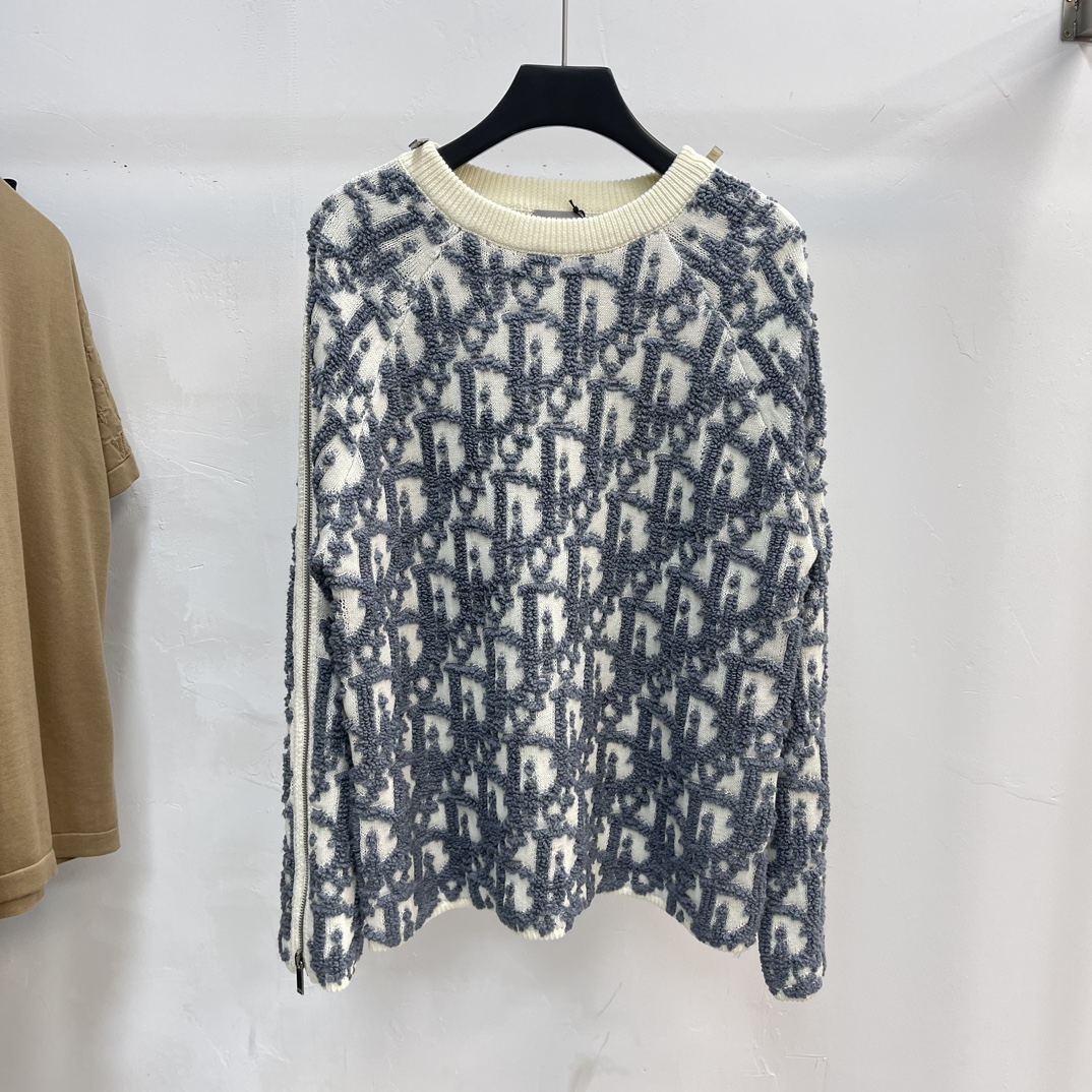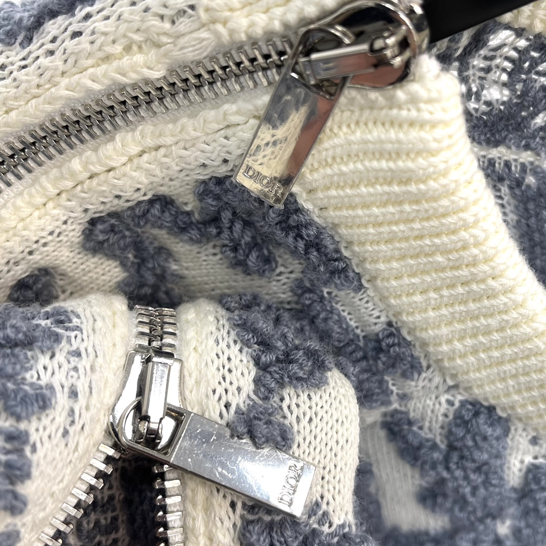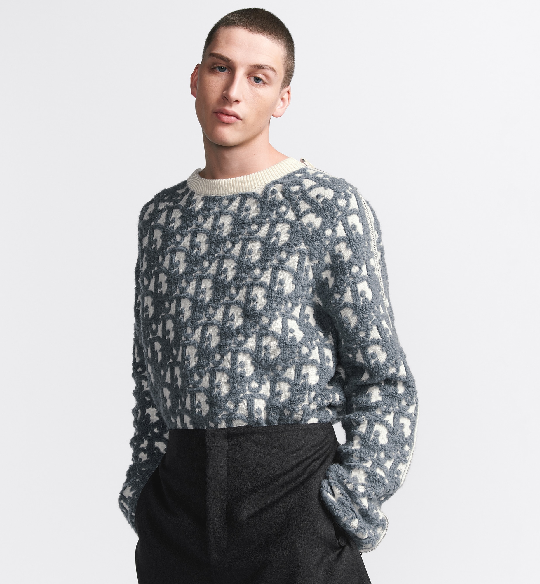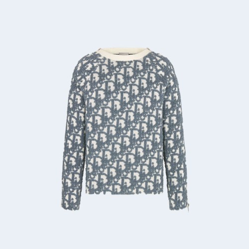 디올 오블리크 울 코튼 자카드 스웨터 블루