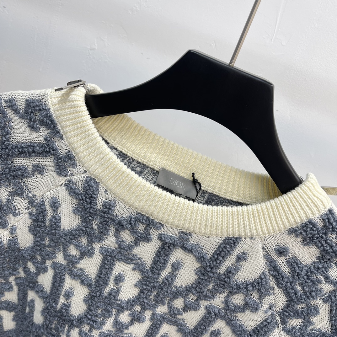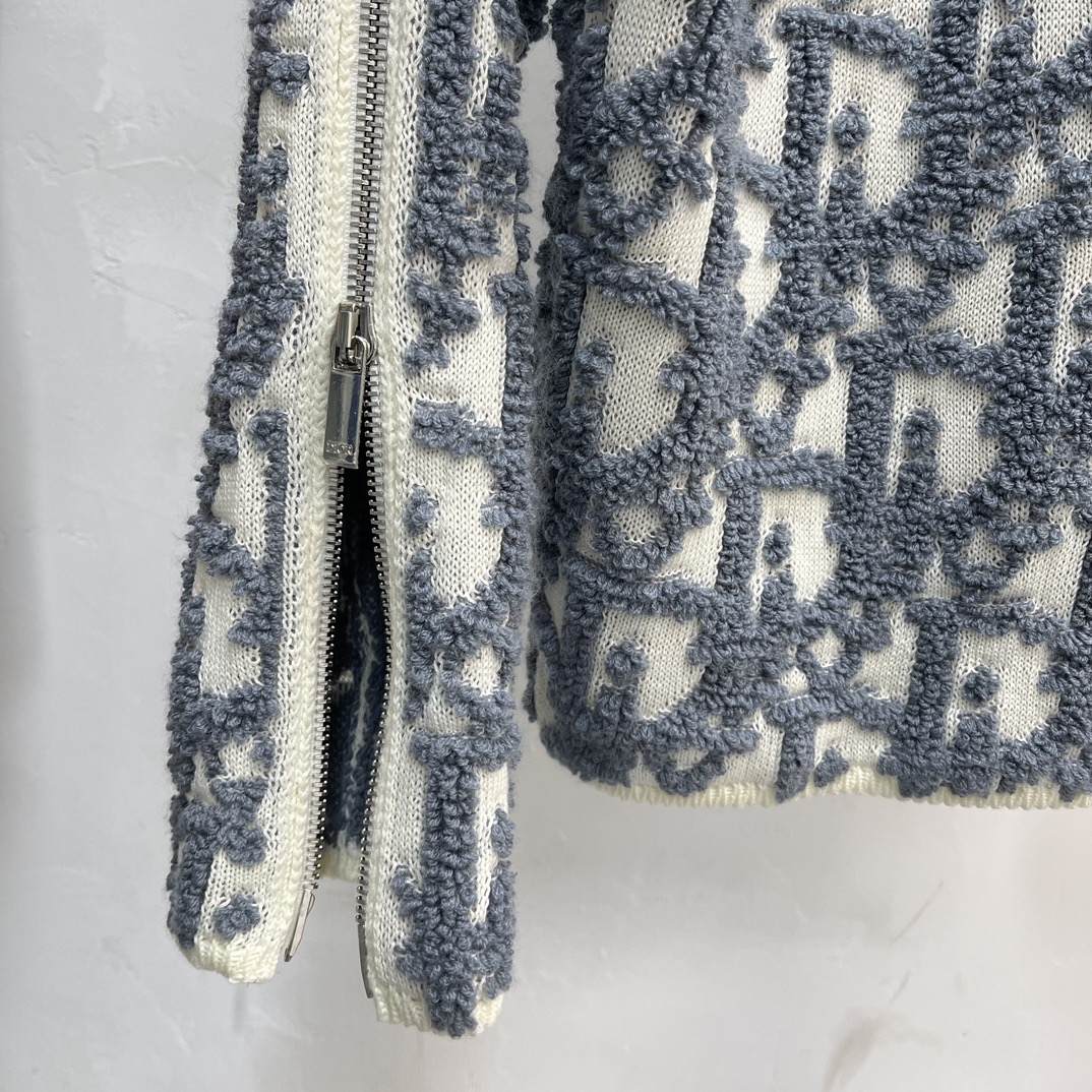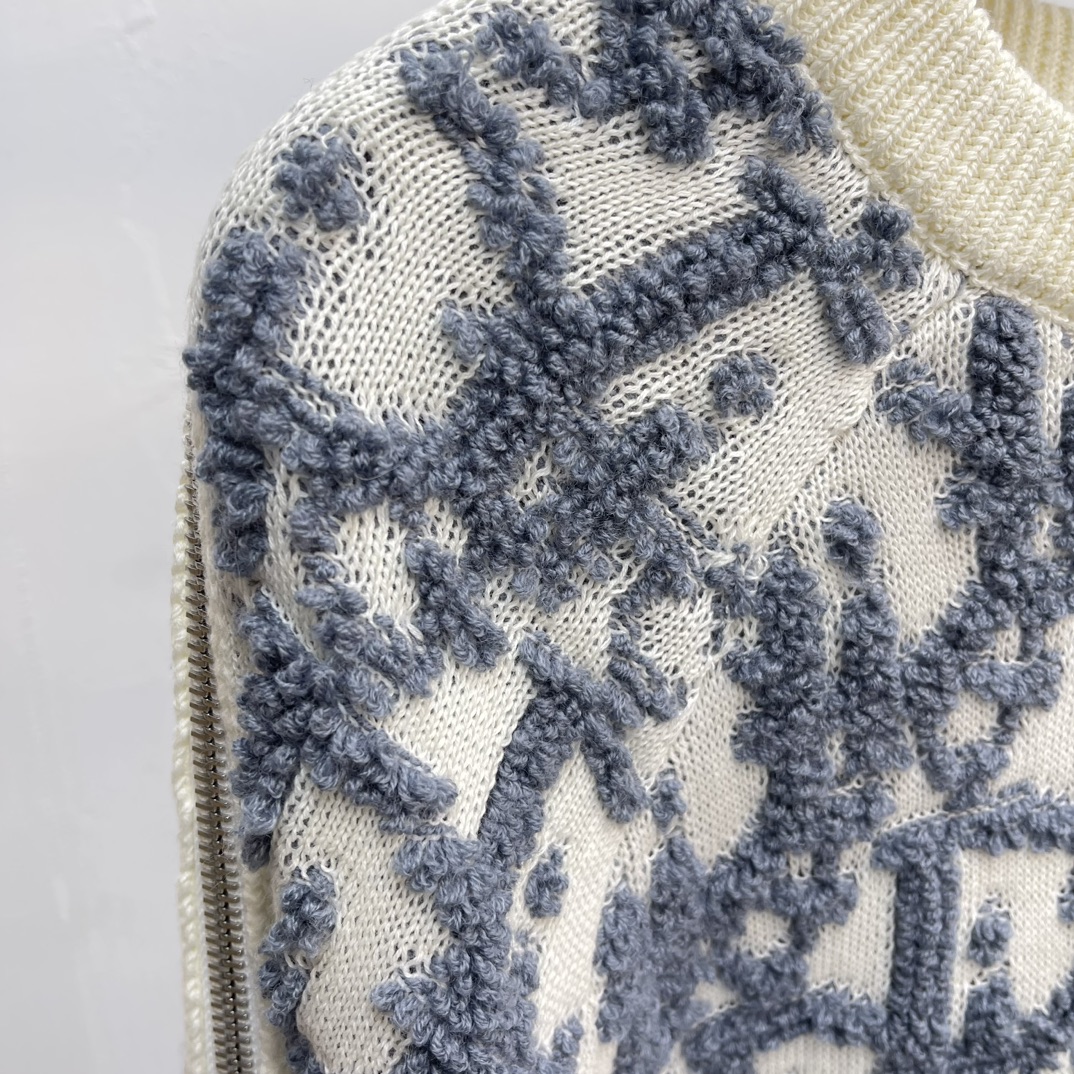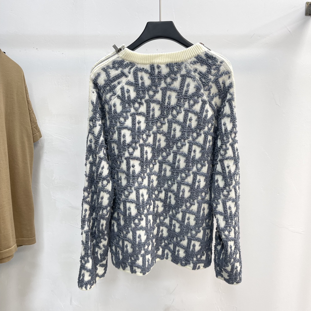 디올 오블리크 울 코튼 자카드 스웨터 블루