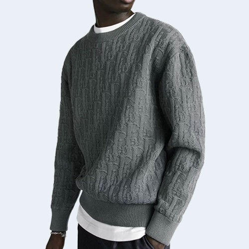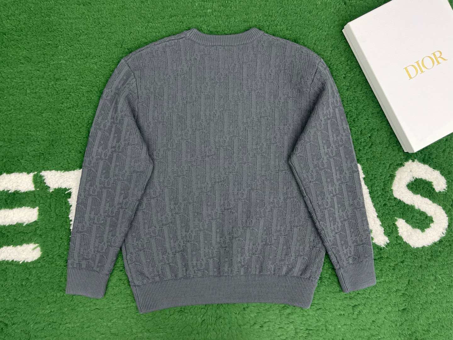 디올 오블리크 코튼 블렌드 자카드 스웨터 그레이