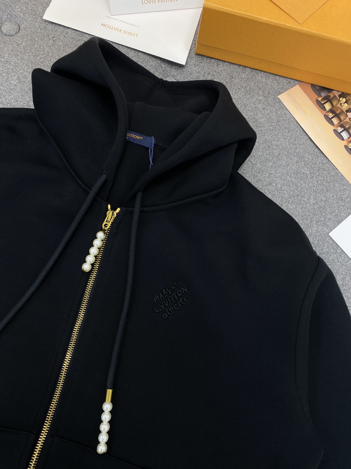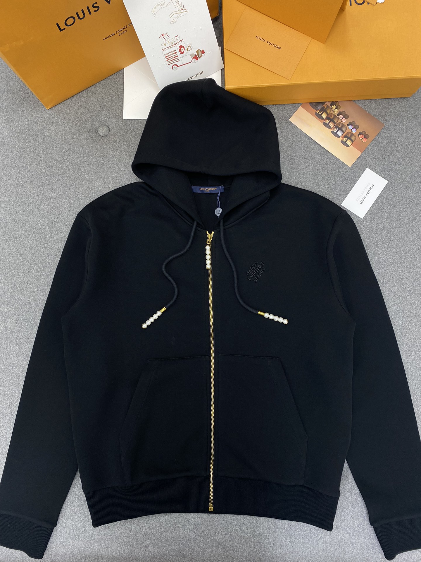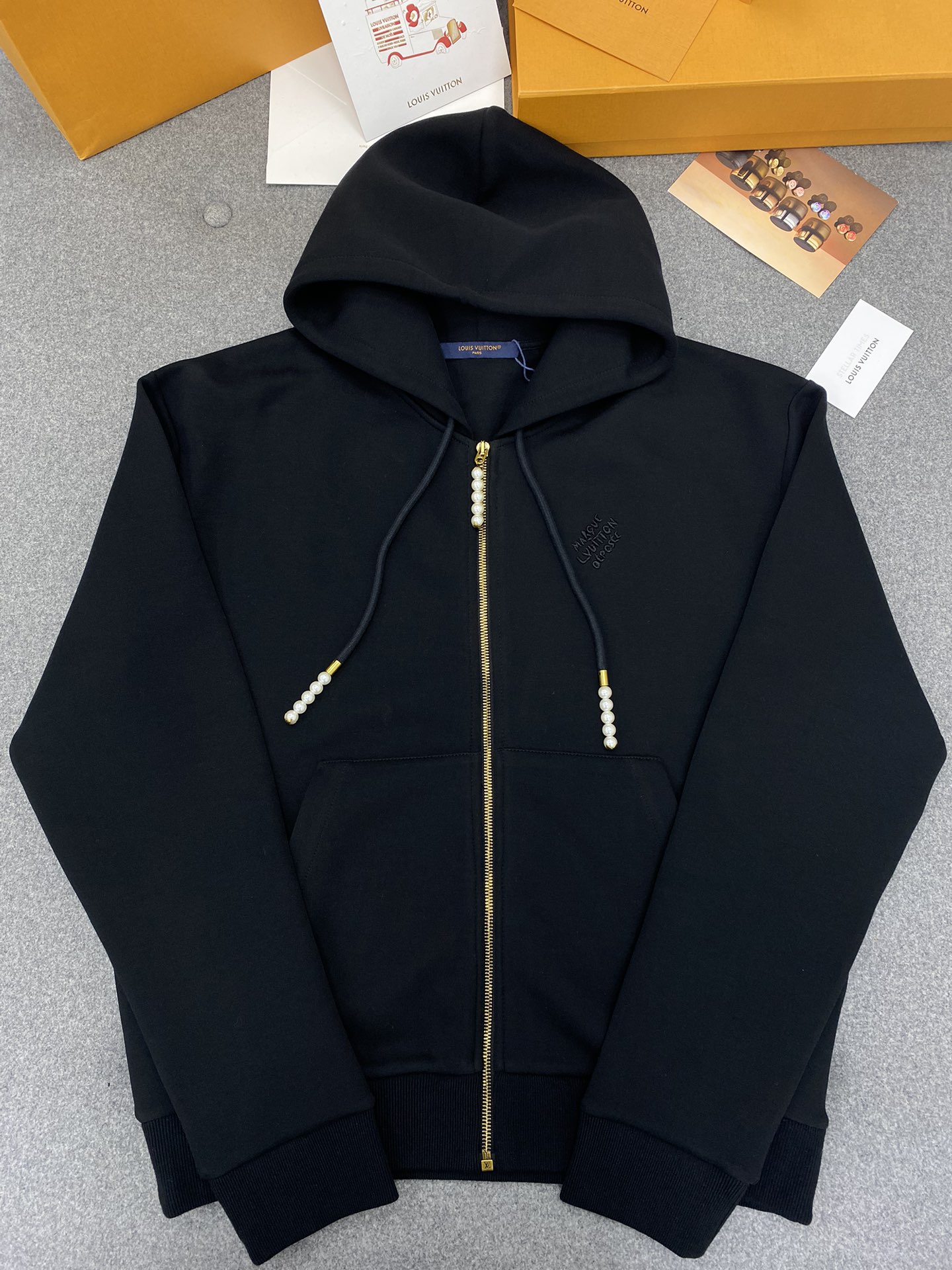 루이비통 엠브로이더드 저지 집업 스루 후디