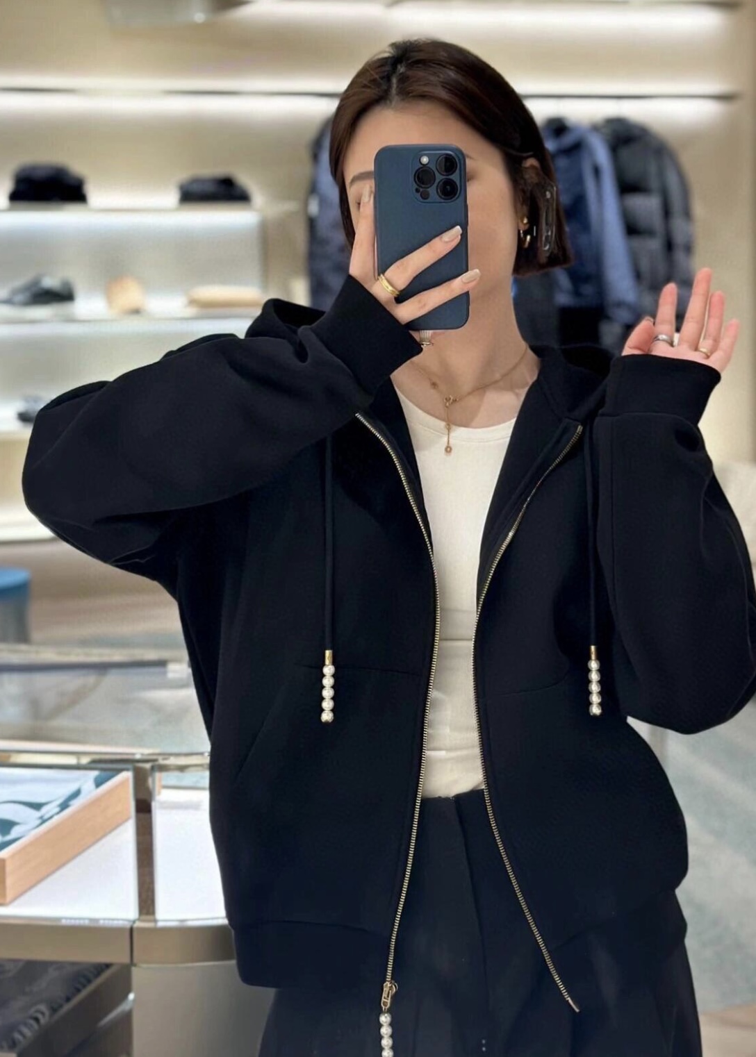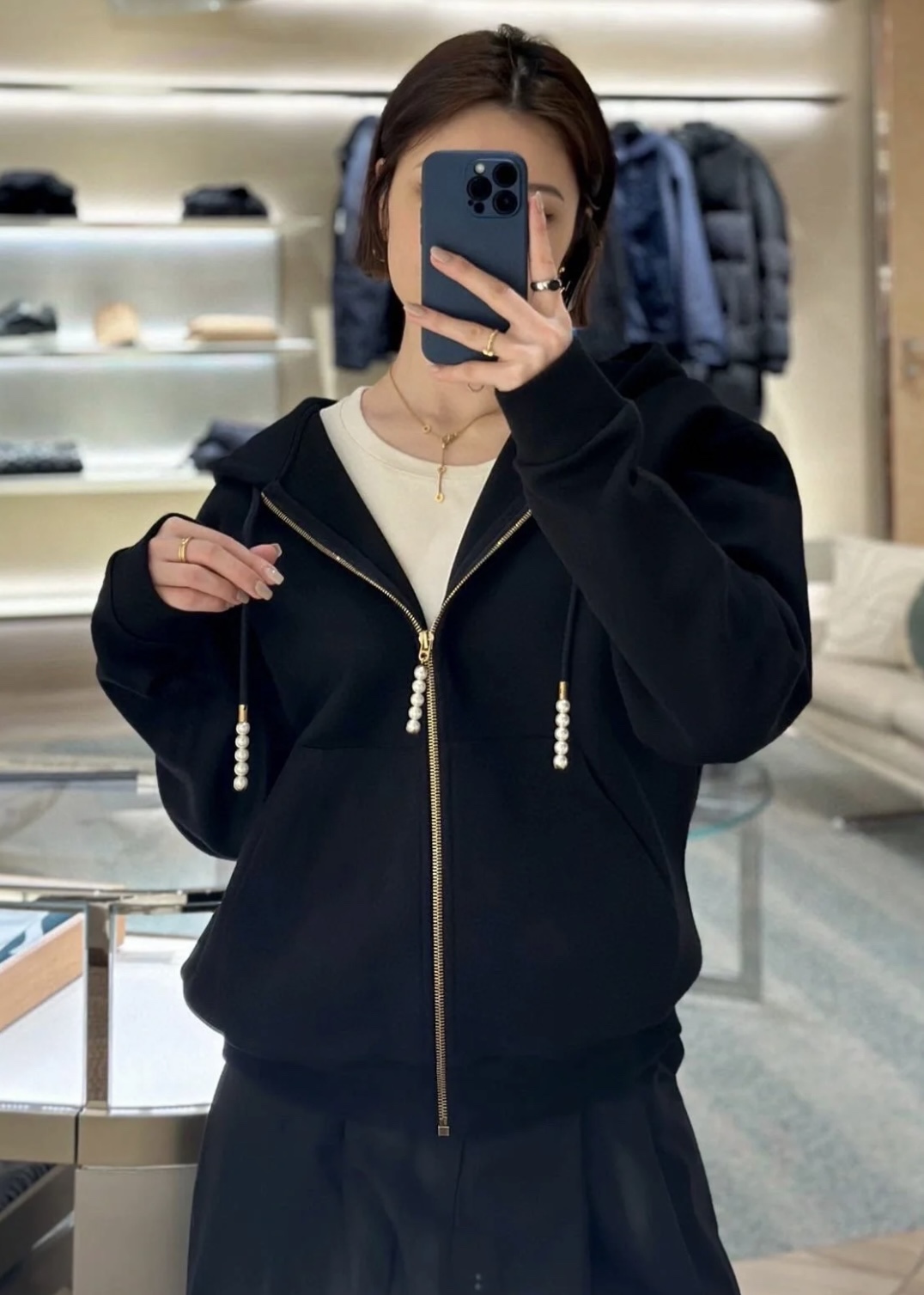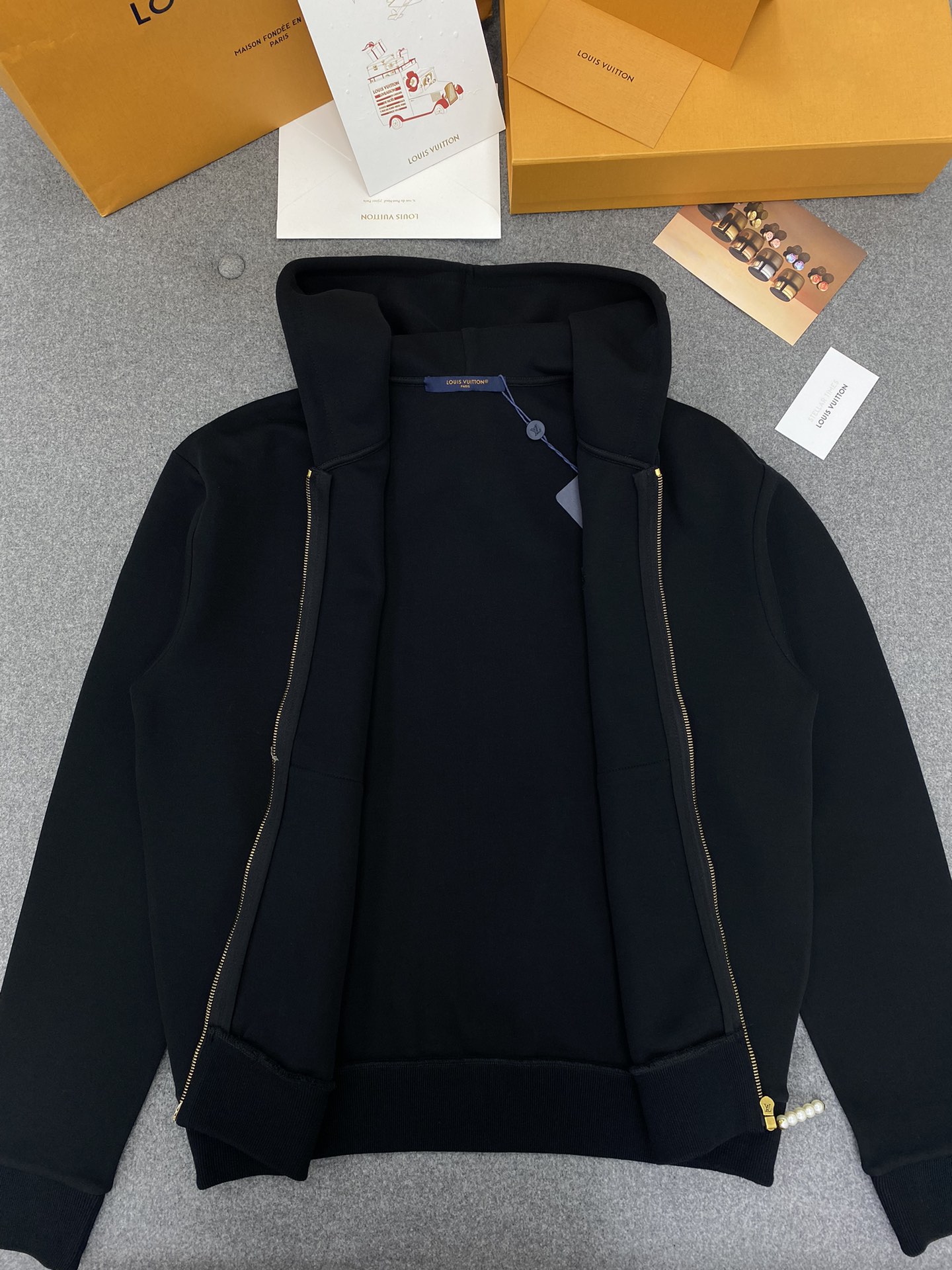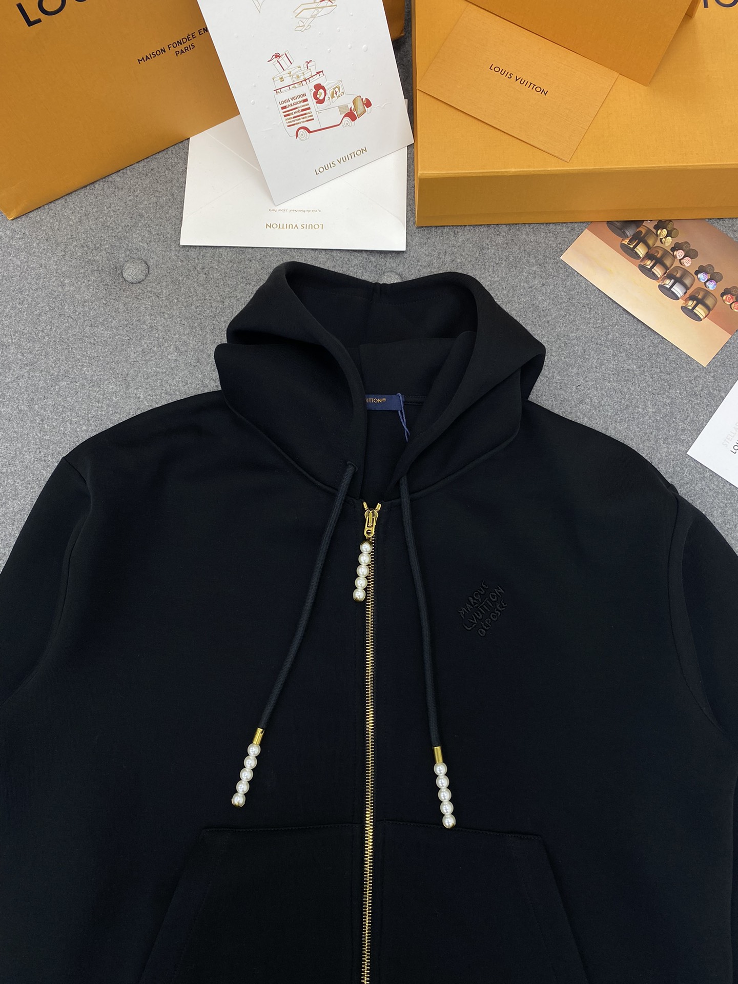 루이비통 엠브로이더드 저지 집업 스루 후디