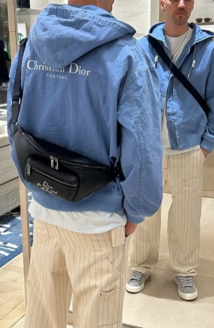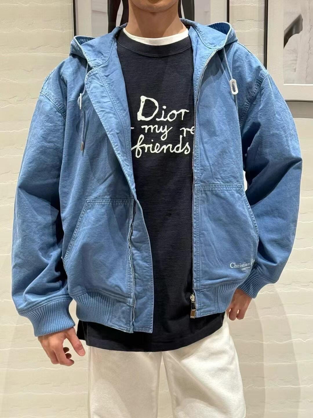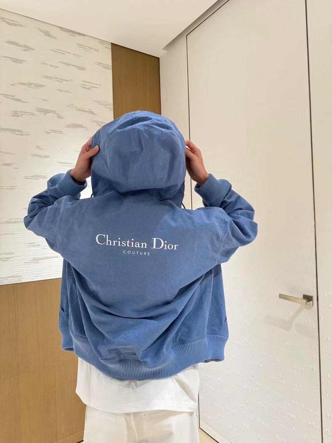 디올 꾸뛰르 후드 스웨트셔츠 블루 코튼 데님