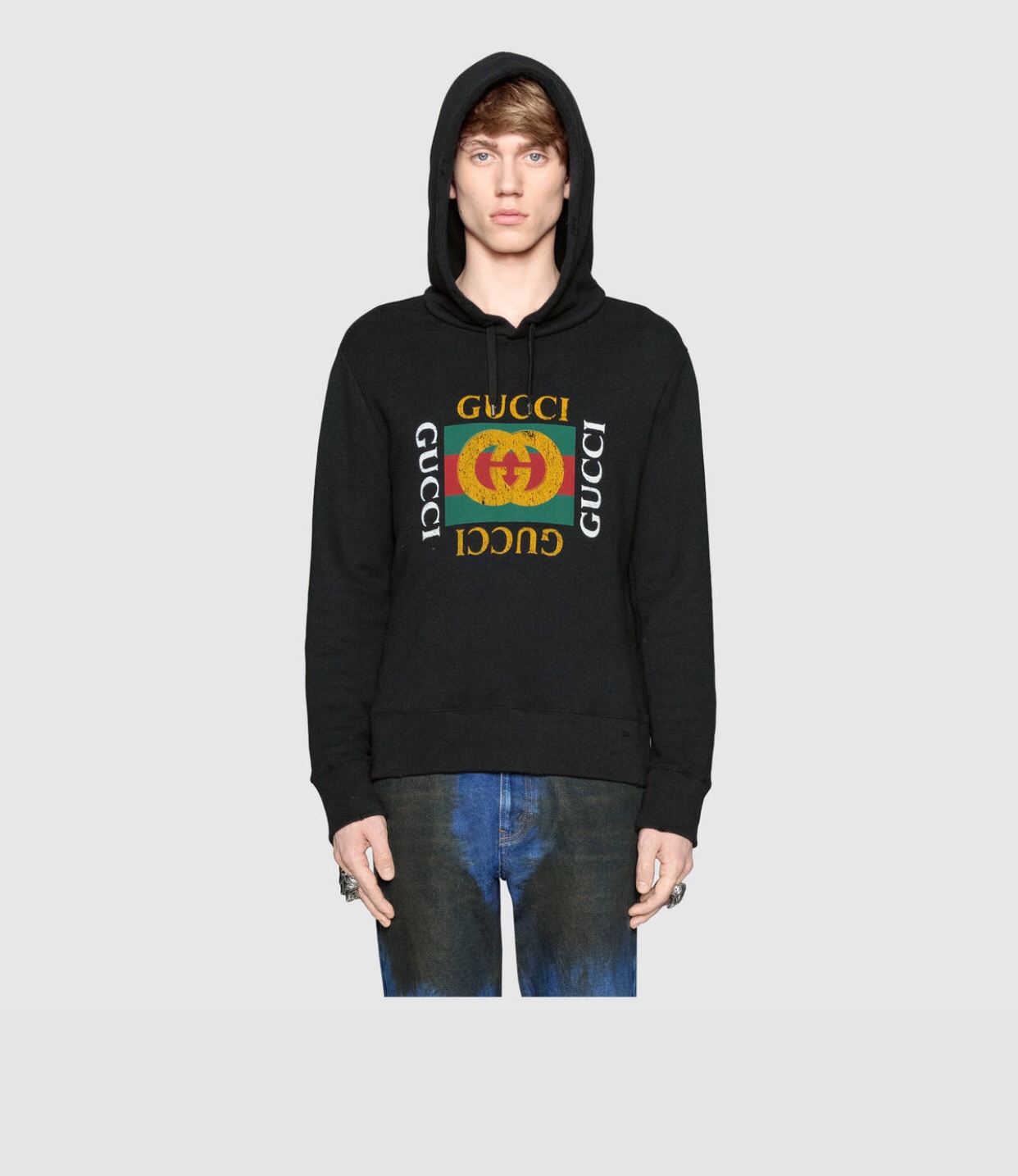 구찌 로고 프린트 오버사이즈 후디 블랙
