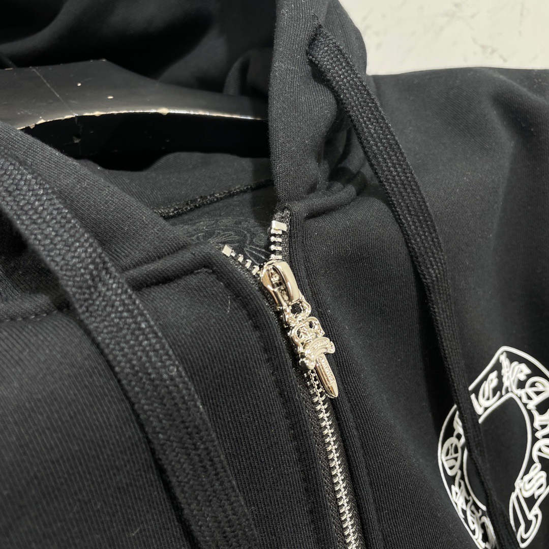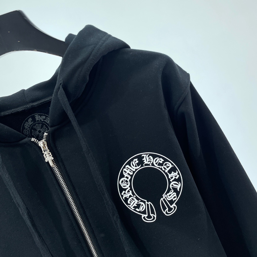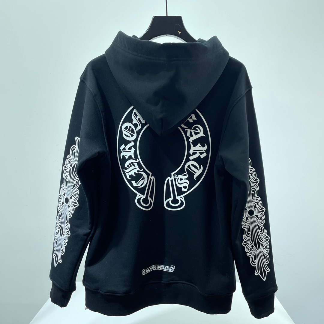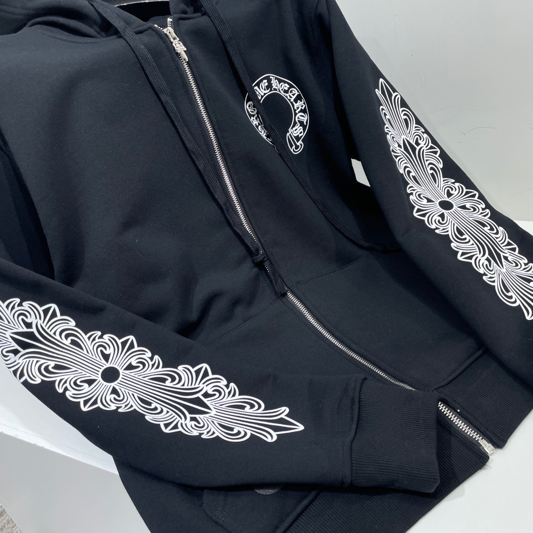 크롬하츠 말발굽 플로랄 플리스 집업 후드 블랙