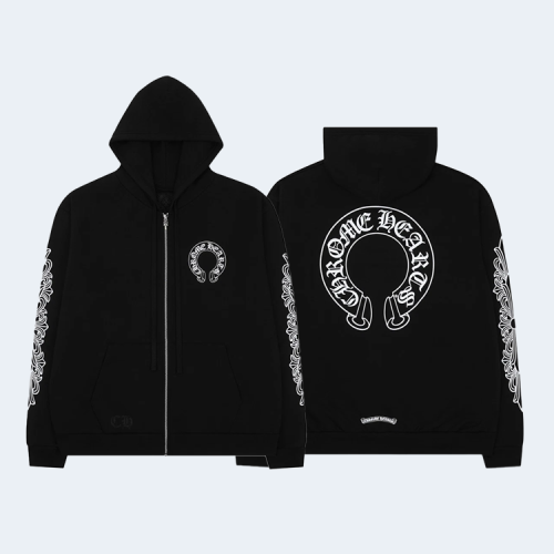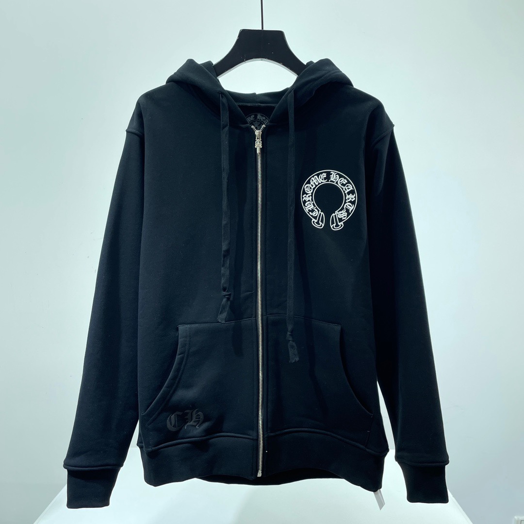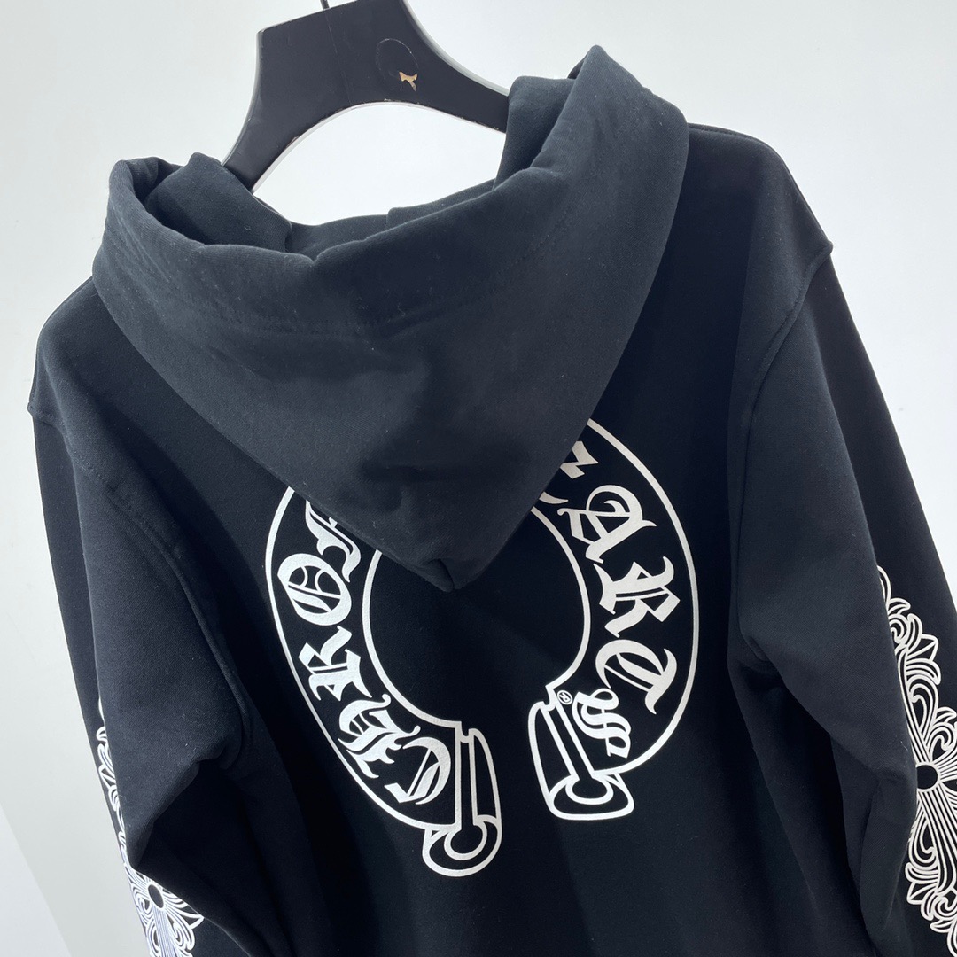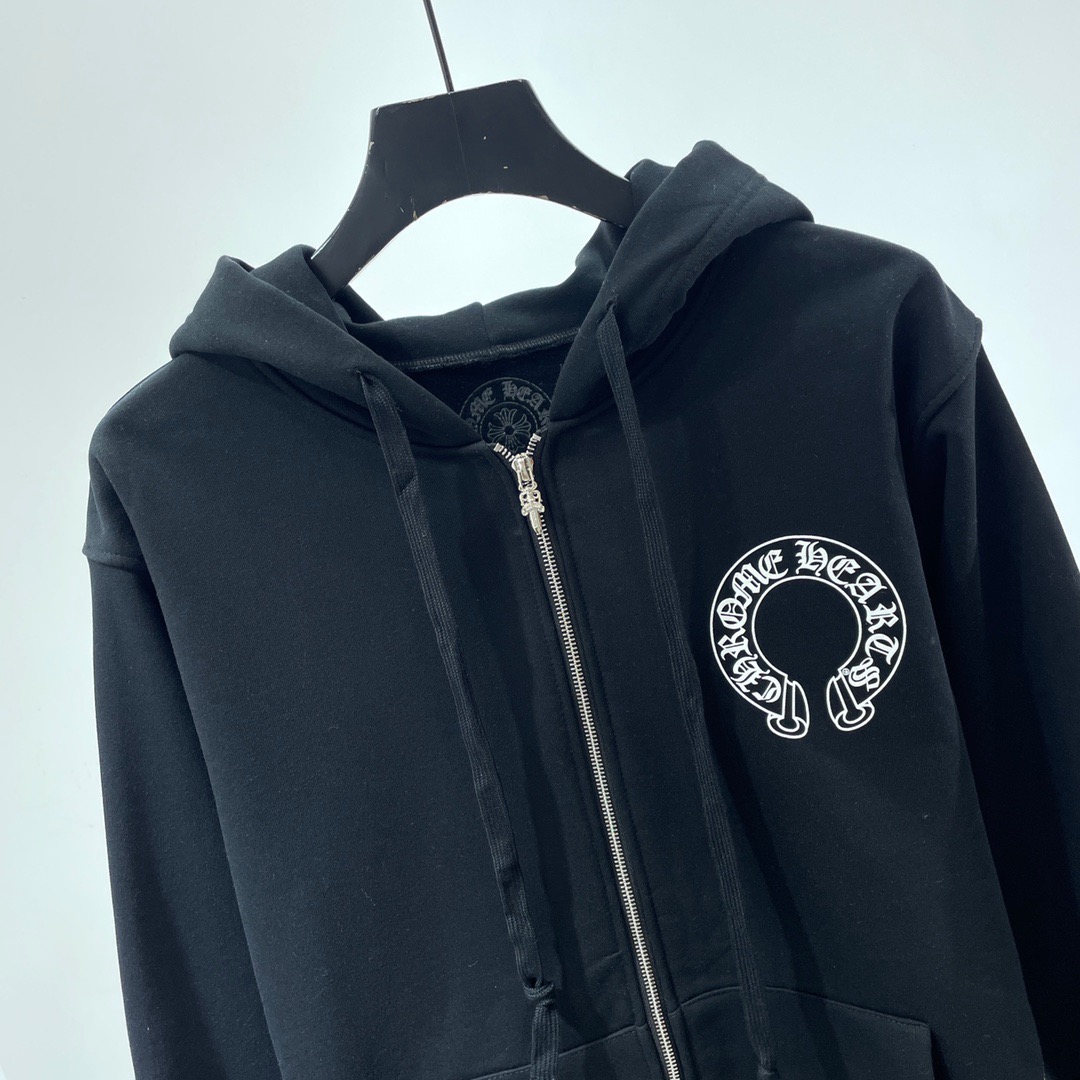 크롬하츠 말발굽 플로랄 플리스 집업 후드 블랙