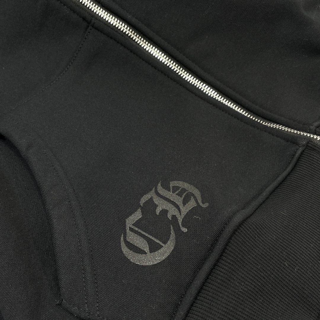 크롬하츠 블랙 토널 모노그램 스크롬 말굽 로고 집업 후디