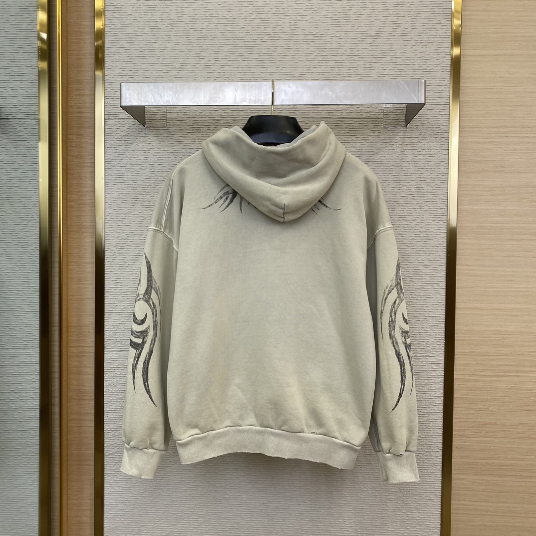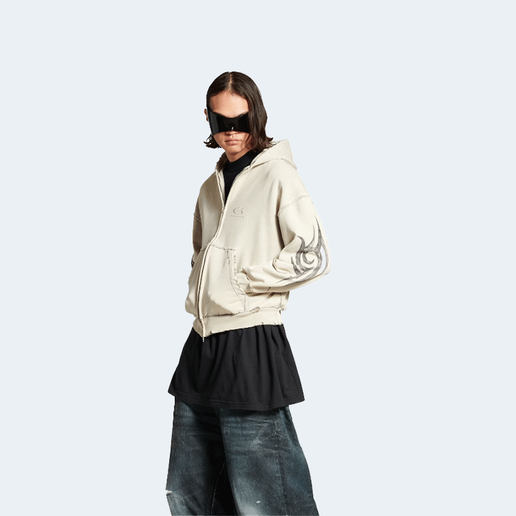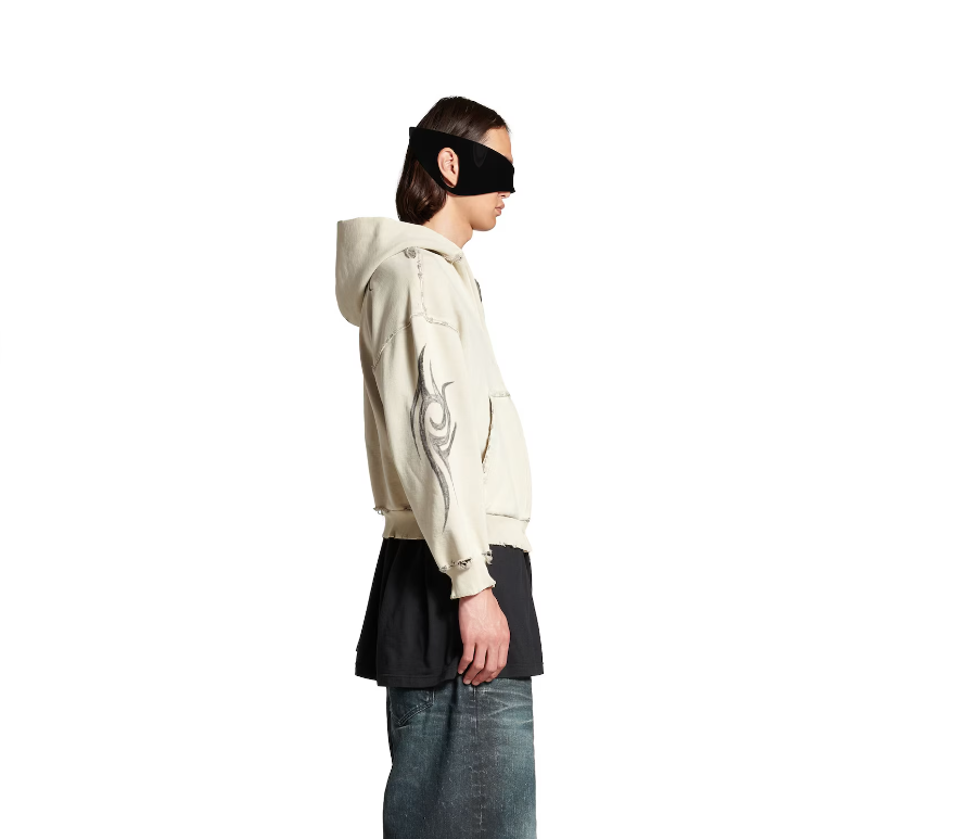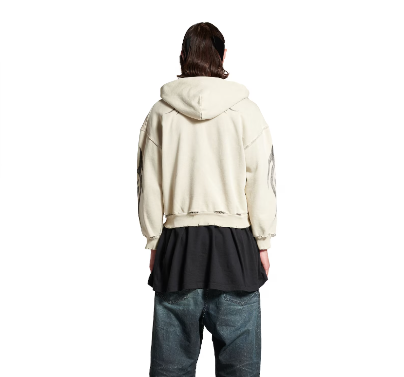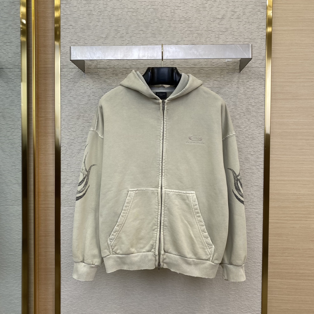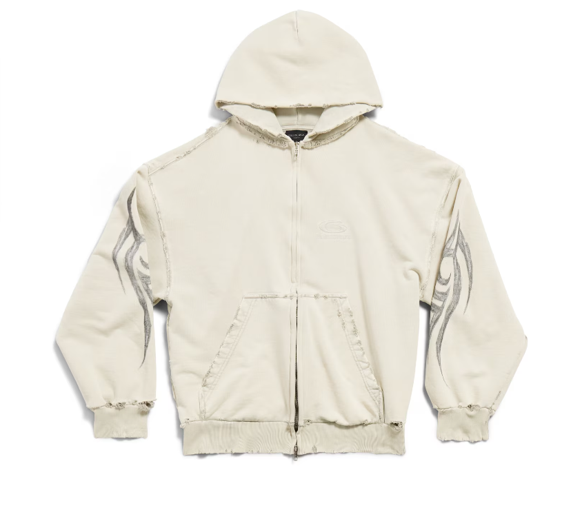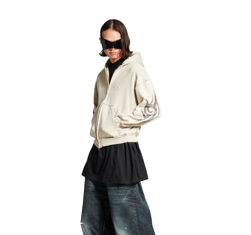 발렌시아가 남성 Y2k 레귤러 핏 집업 후디 라이트 베이지