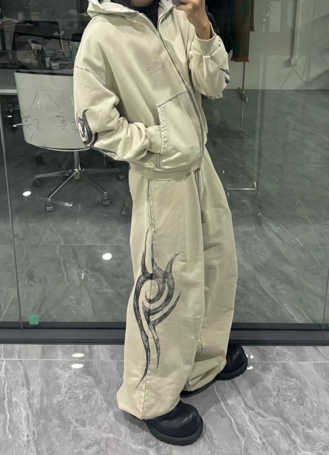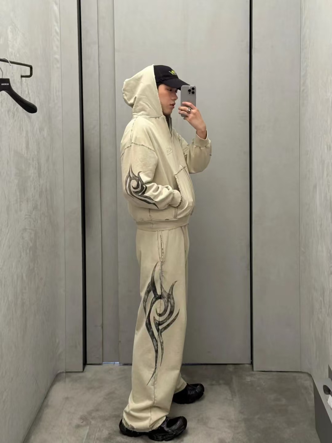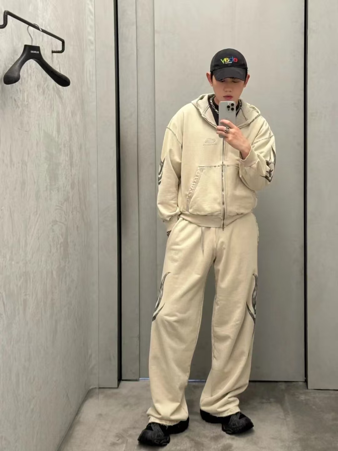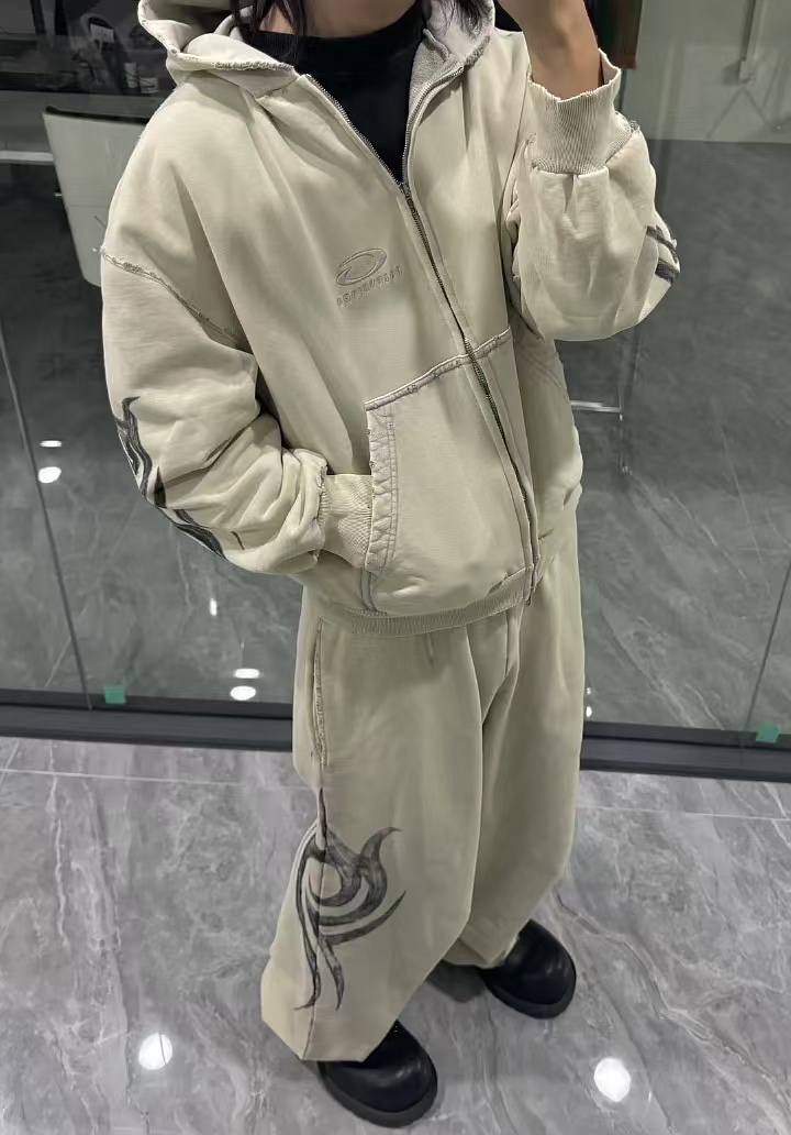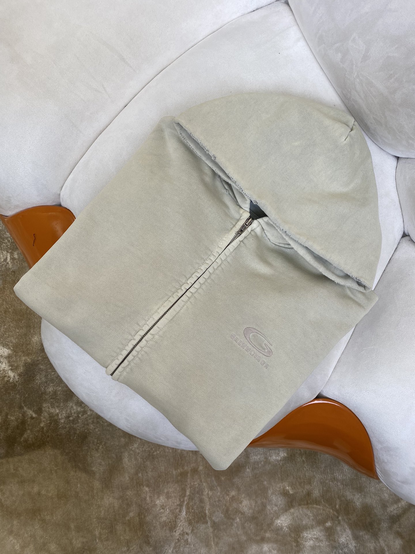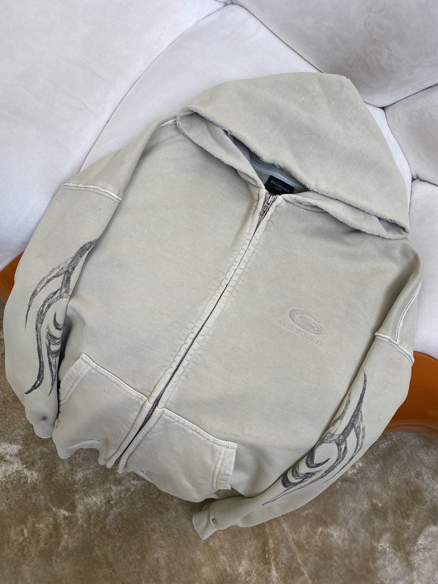 발렌시아가 남성 Y2k 레귤러 핏 집업 후디 라이트 베이지