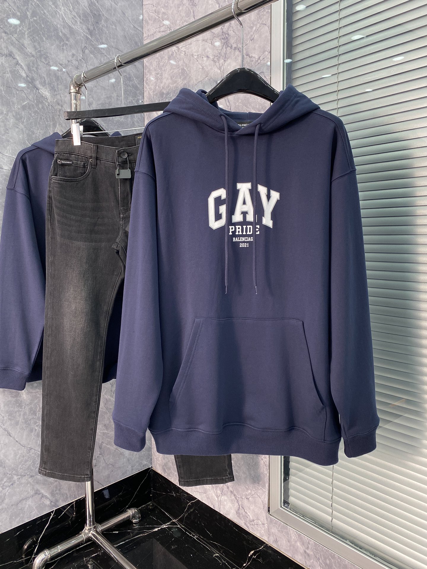 발렌시아가 핸드 드로우 BB 로고 후드탑