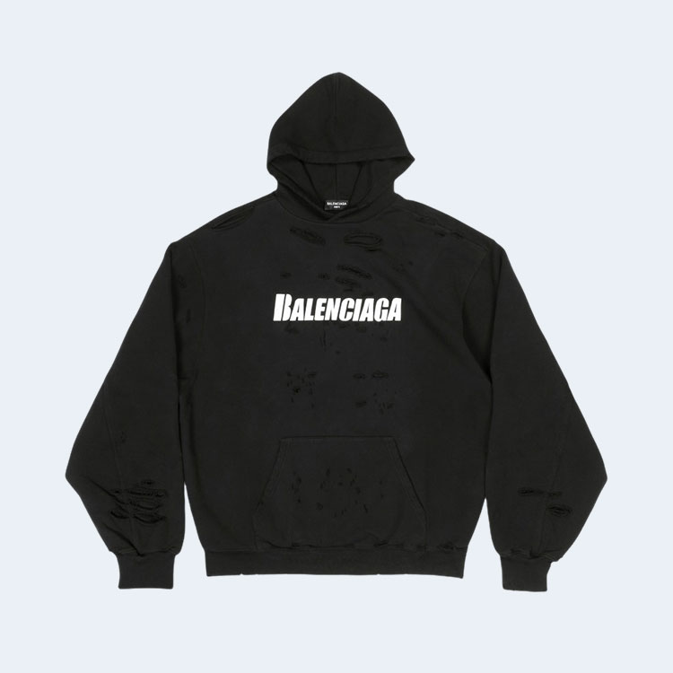 발렌시아가 오버사이즈 테이프 로고 후디 블루