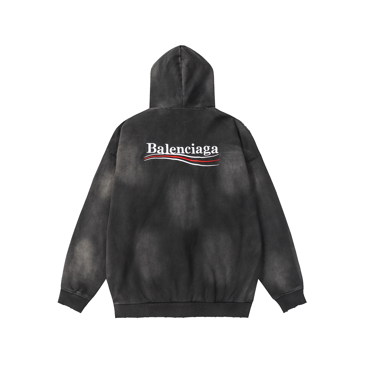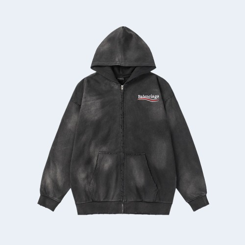 발렌시아가 헤비 듀티 워싱 후디 집업 블랙