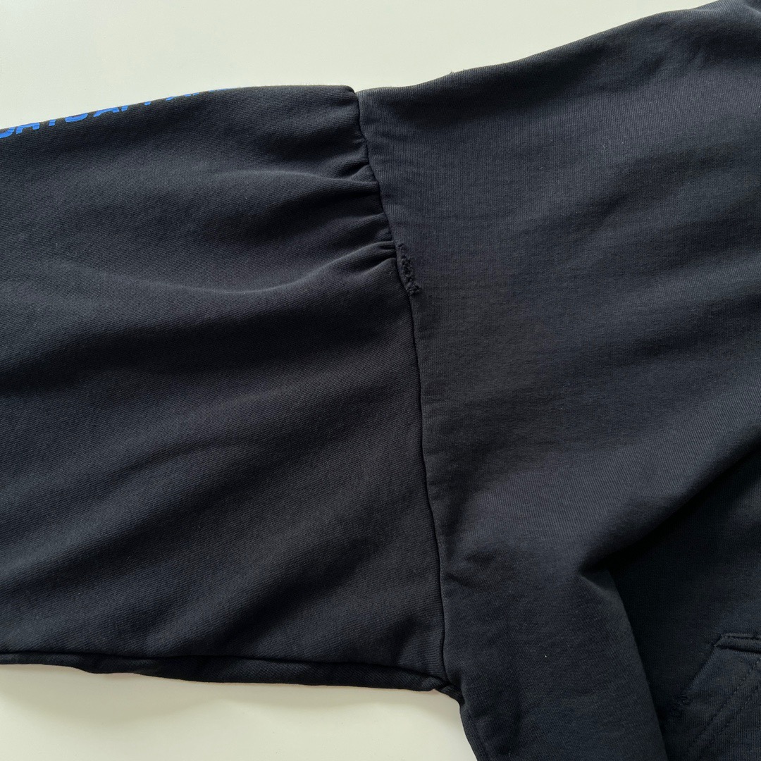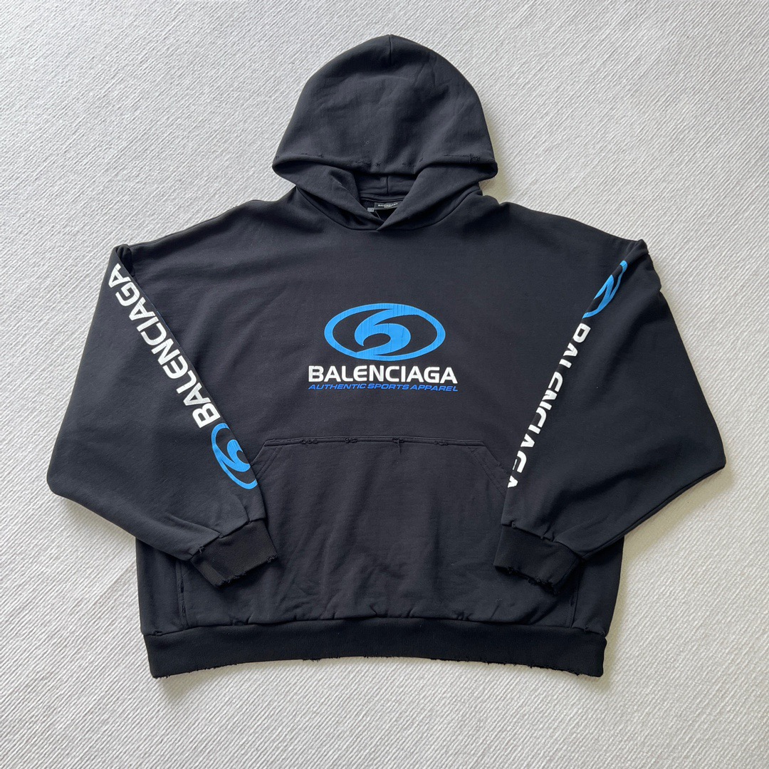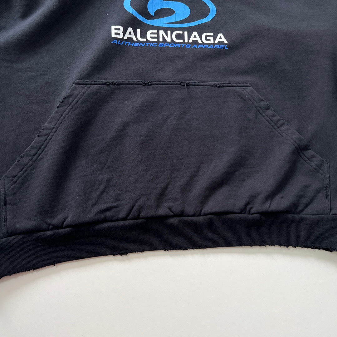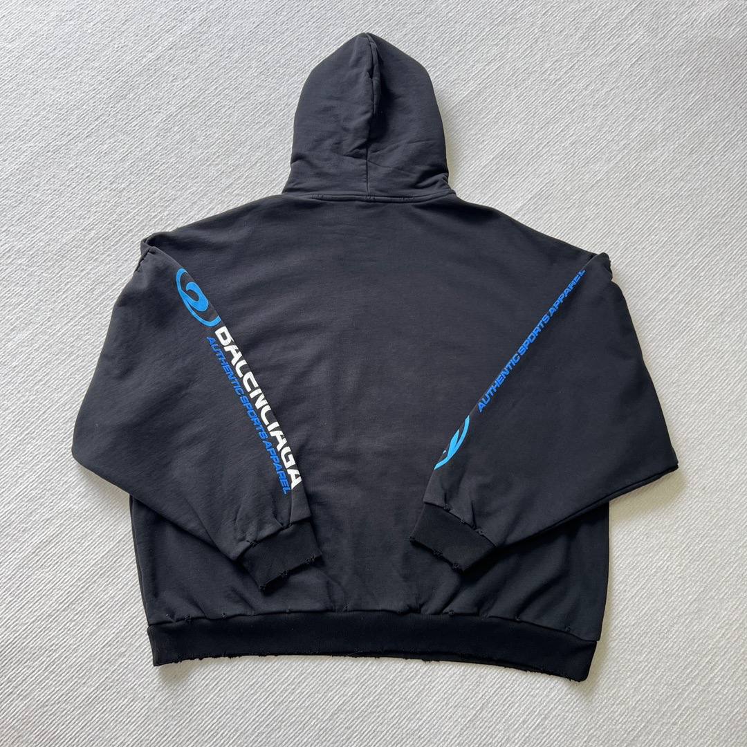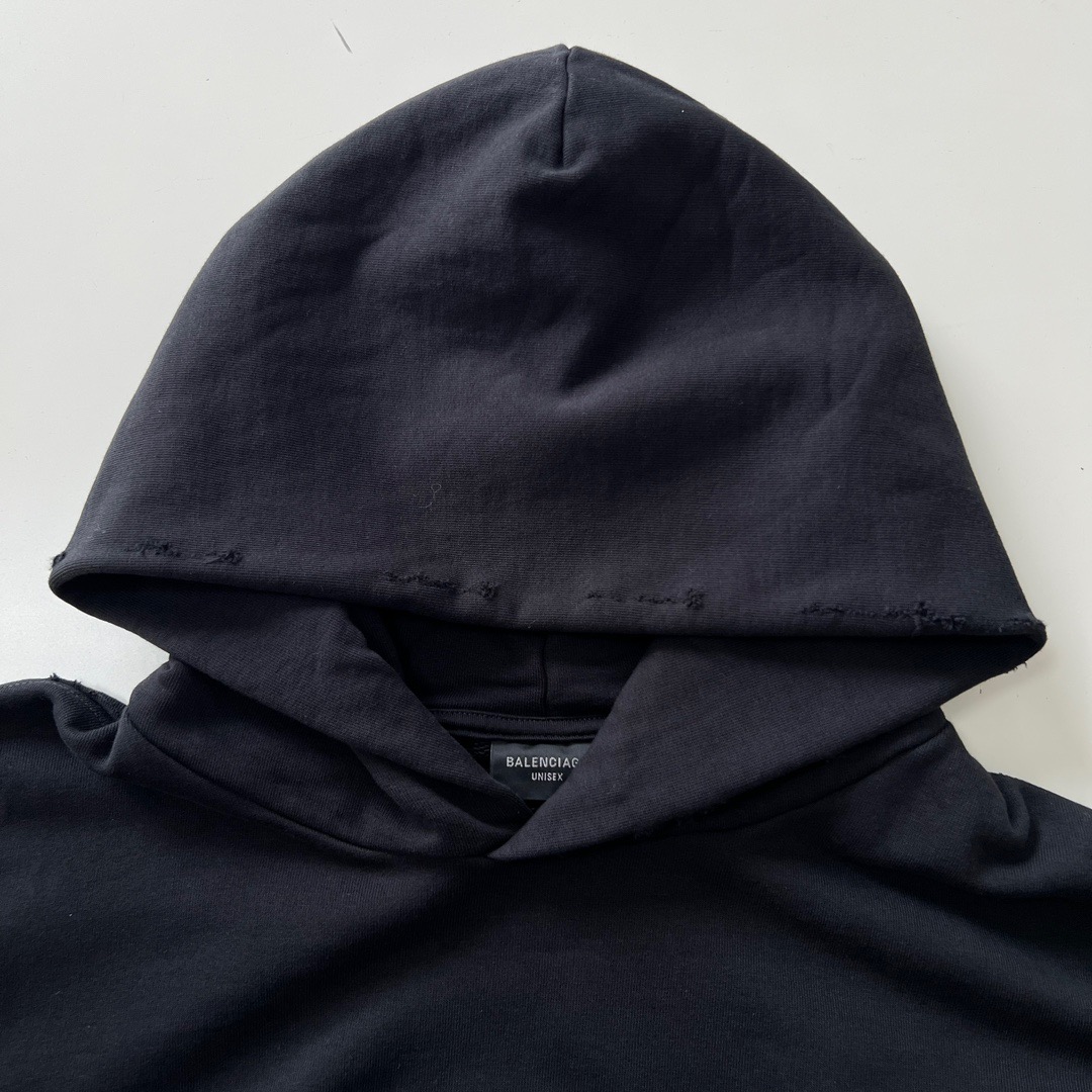 발렌시아가 오버사이즈 디스트레스드 코튼 저지 후디 블랙