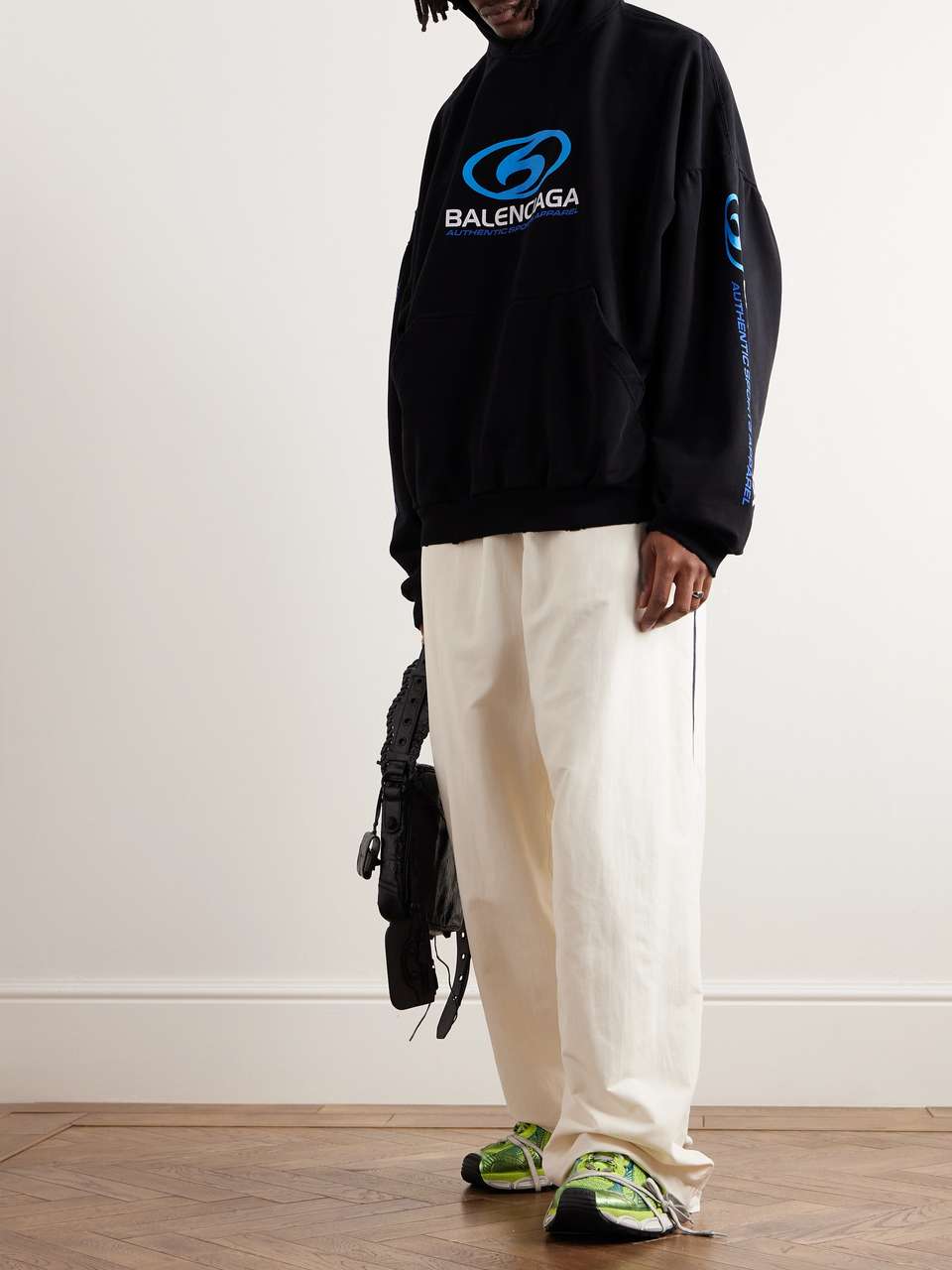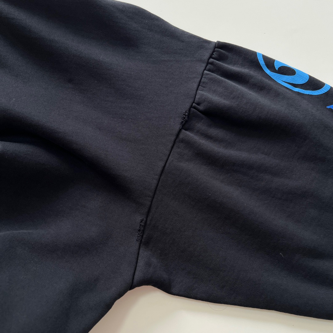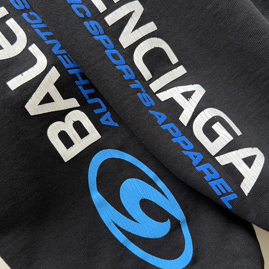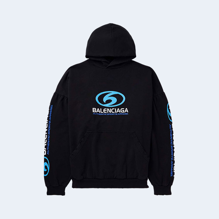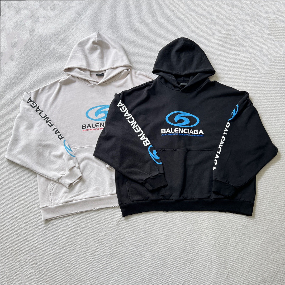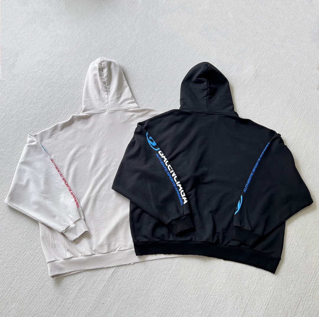 발렌시아가 오버사이즈 디스트레스드 코튼 저지 후디 블랙