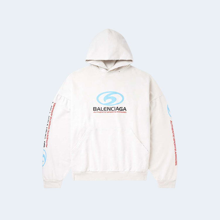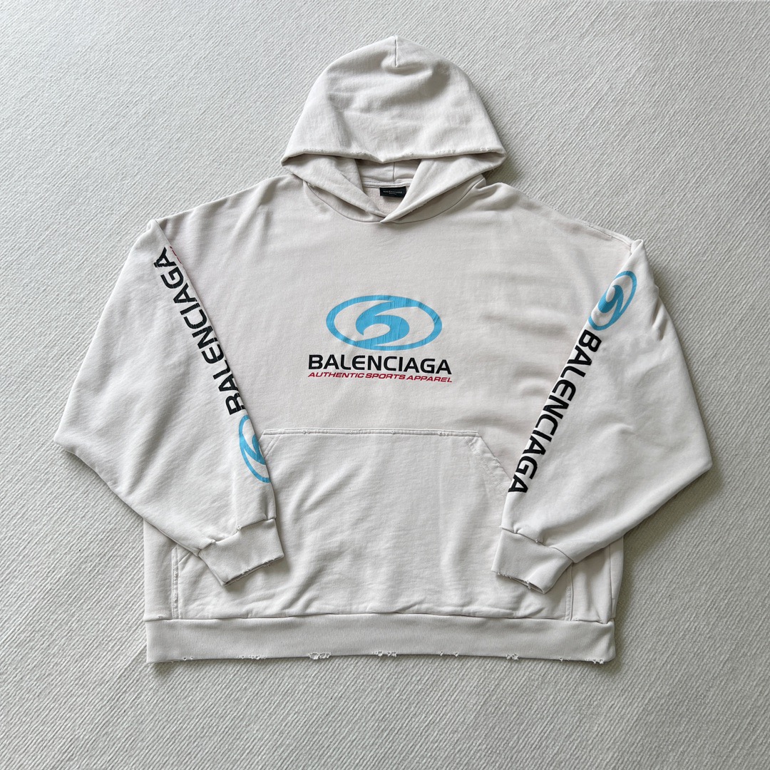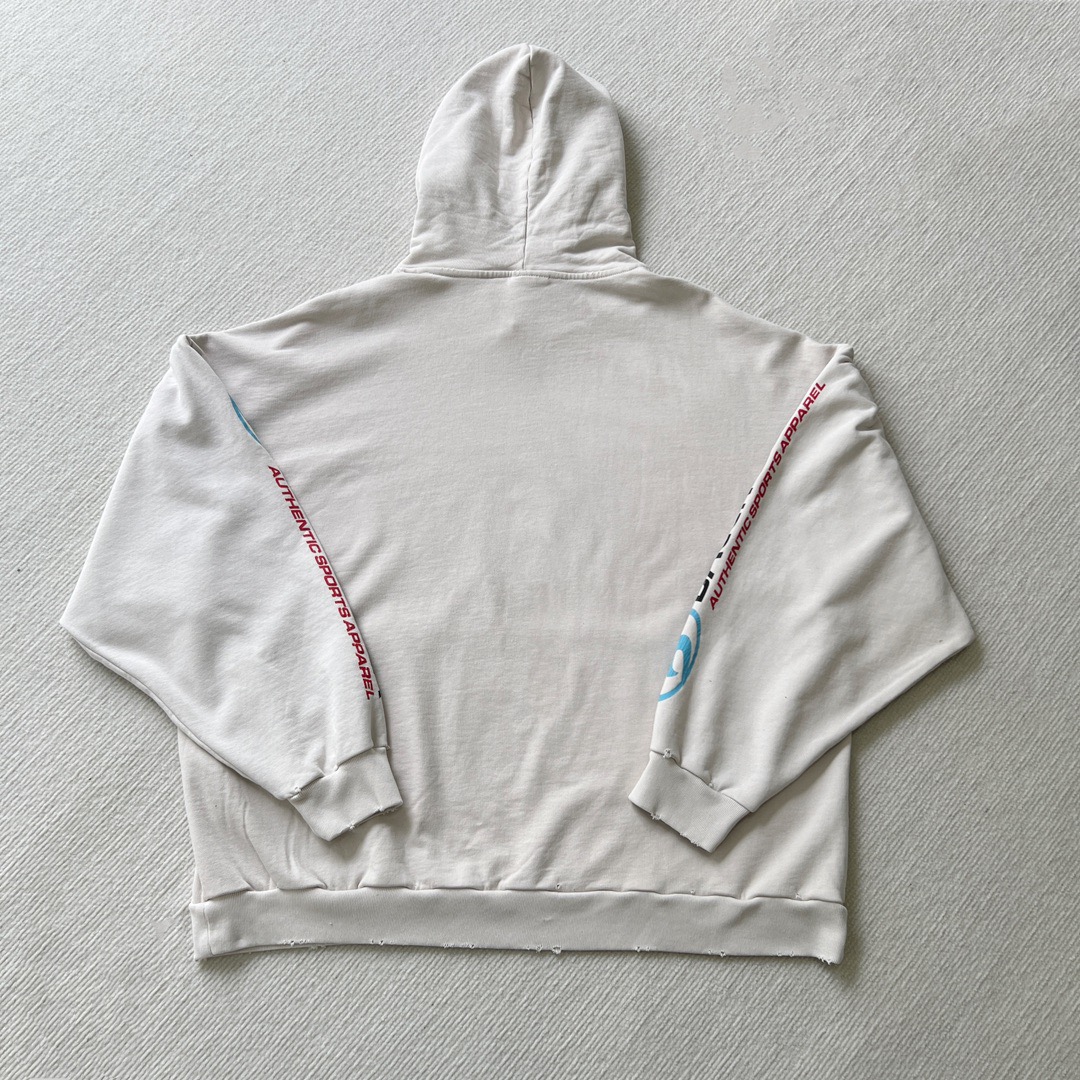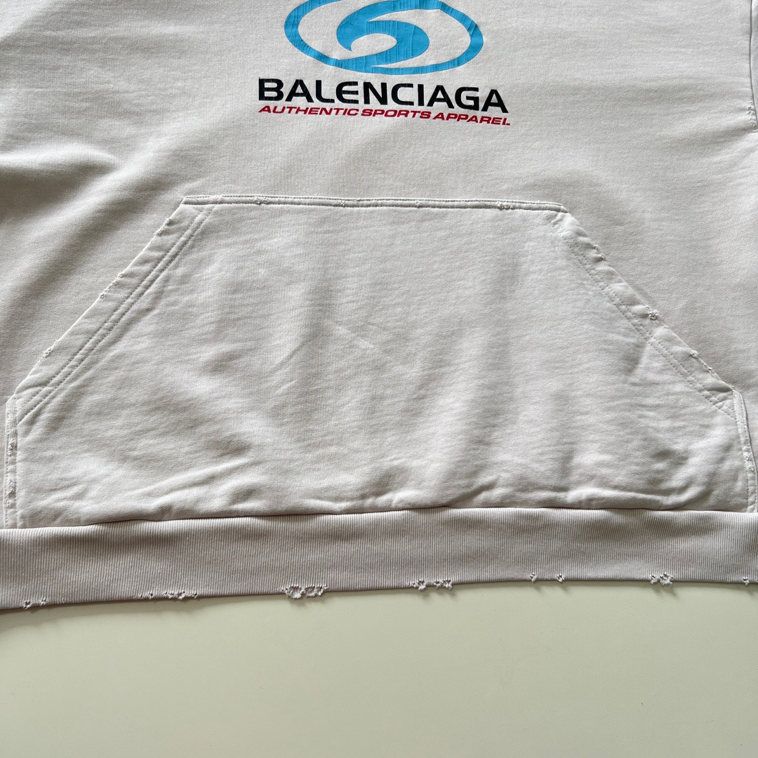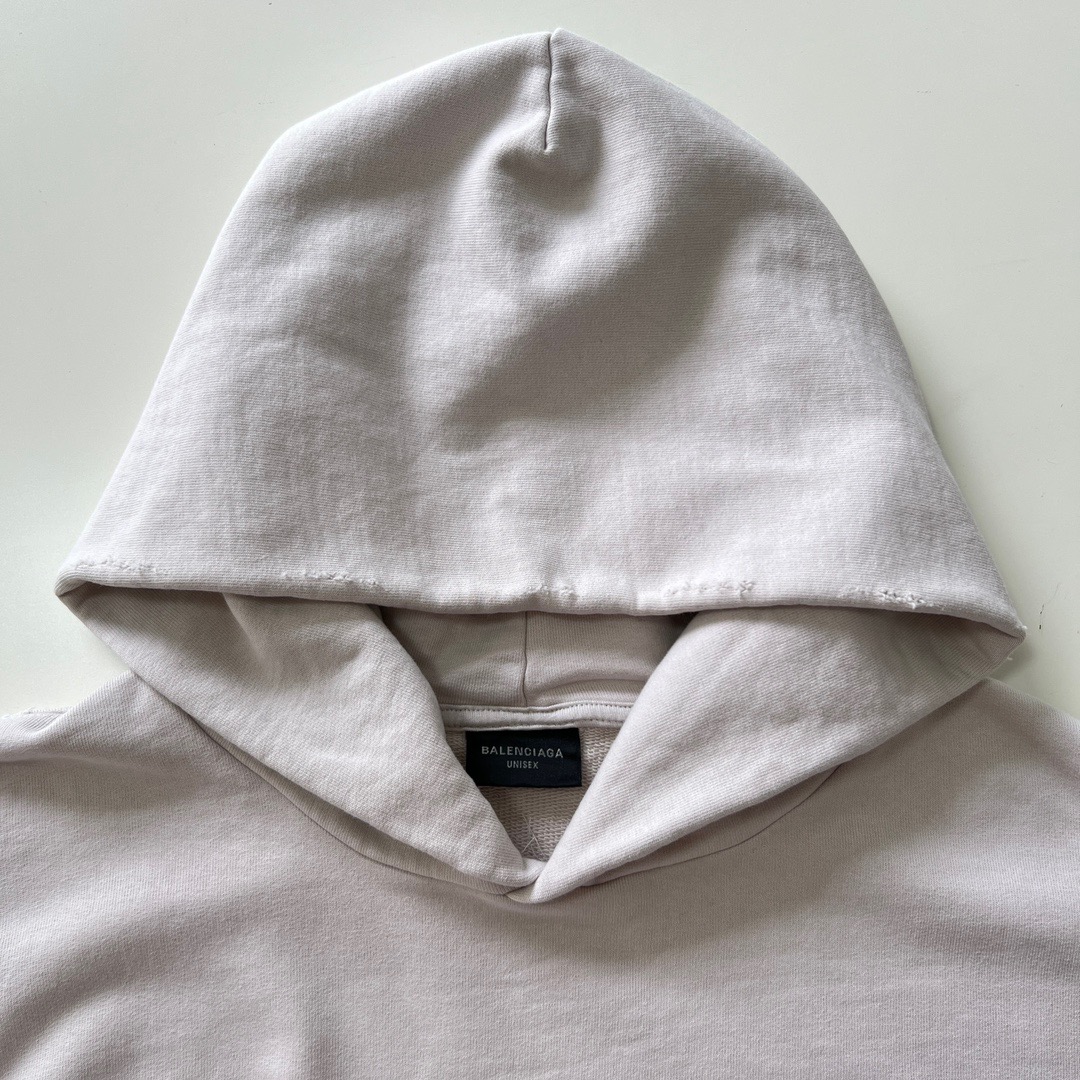 발렌시아가 오버사이즈 디스트레스드 코튼 저지 후디 화이트