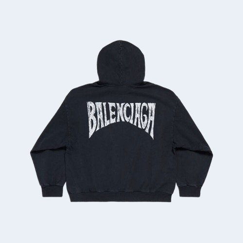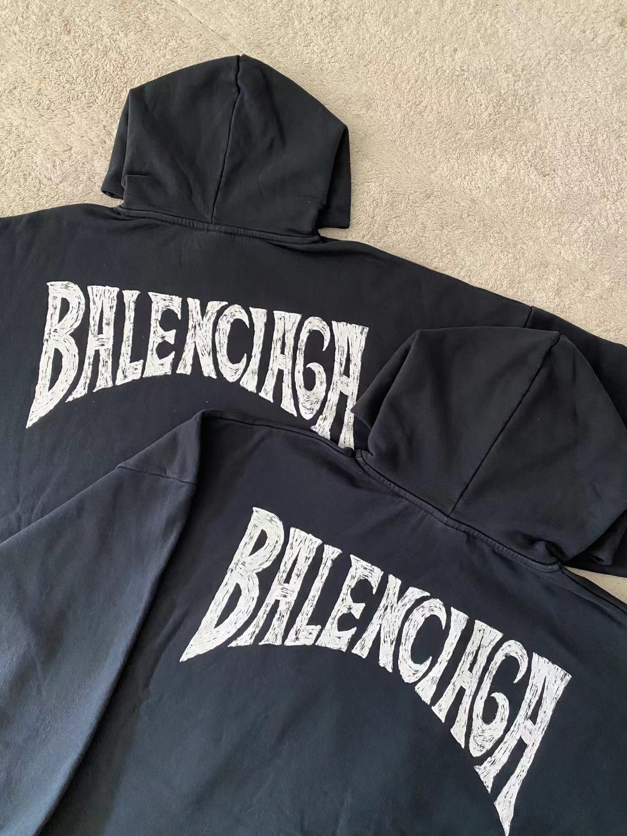 발렌시아가 핸드-드로운 백 로고 미디엄 핏 후디